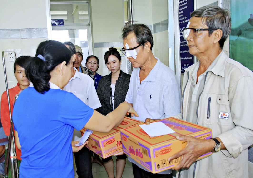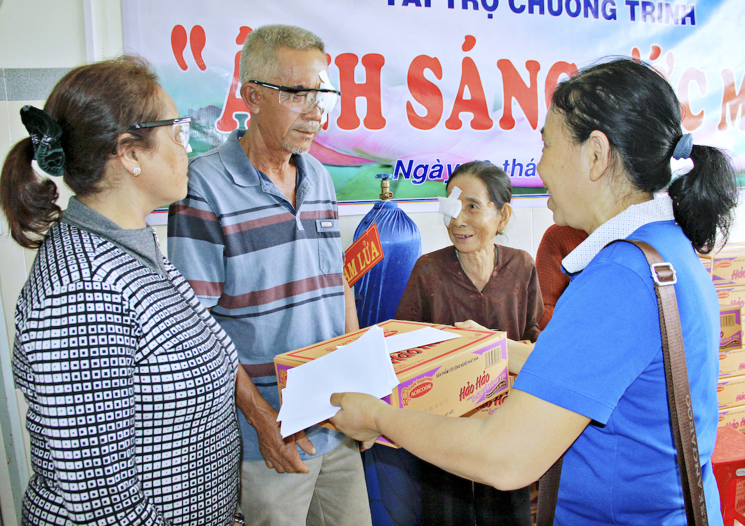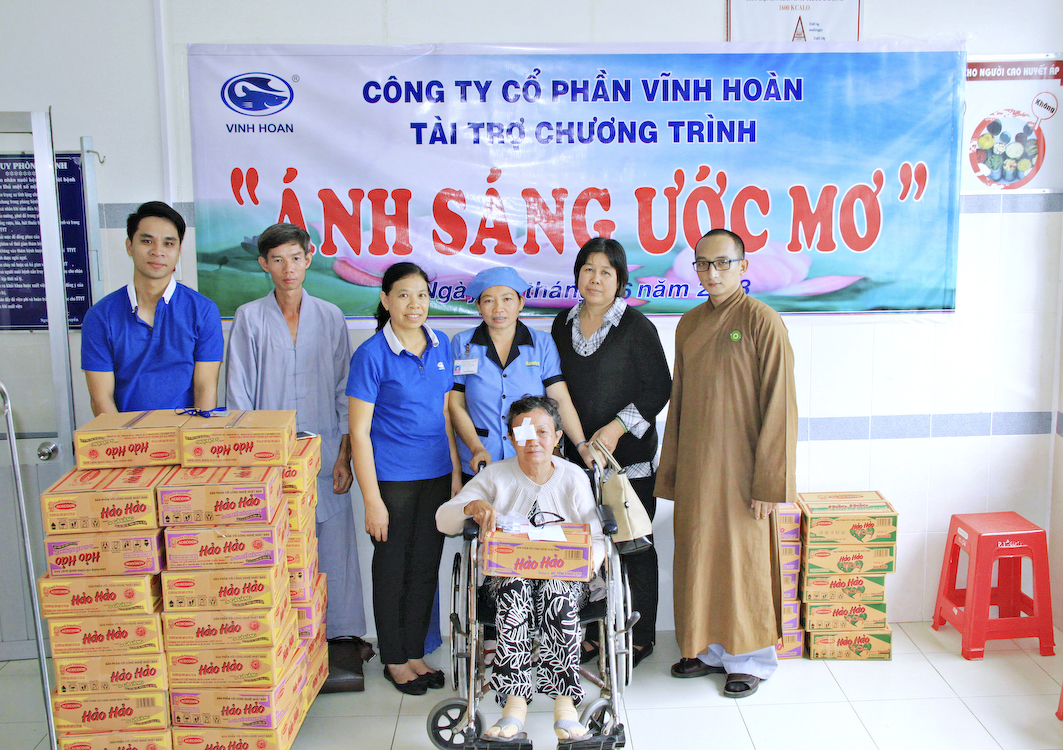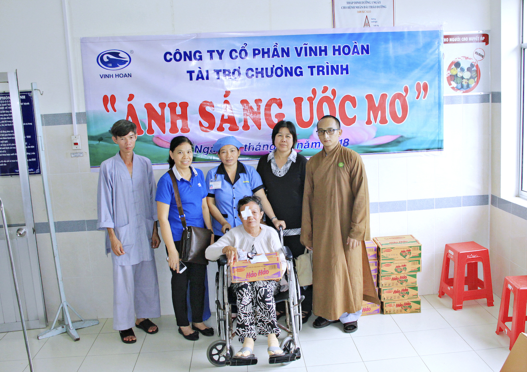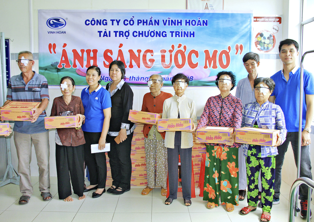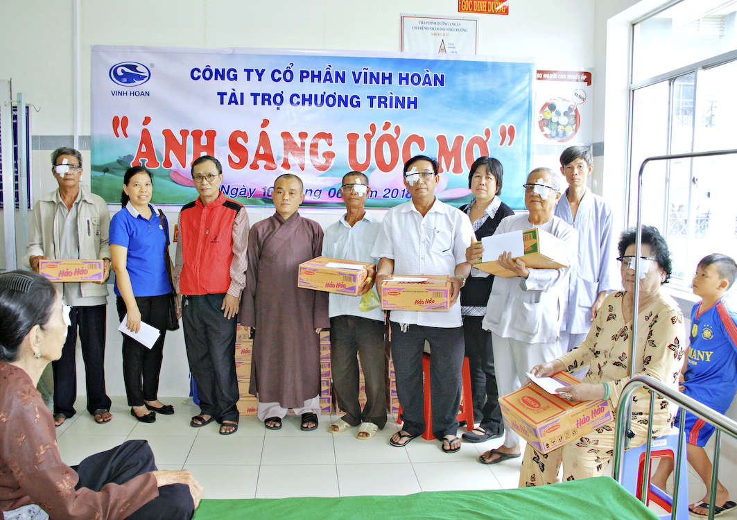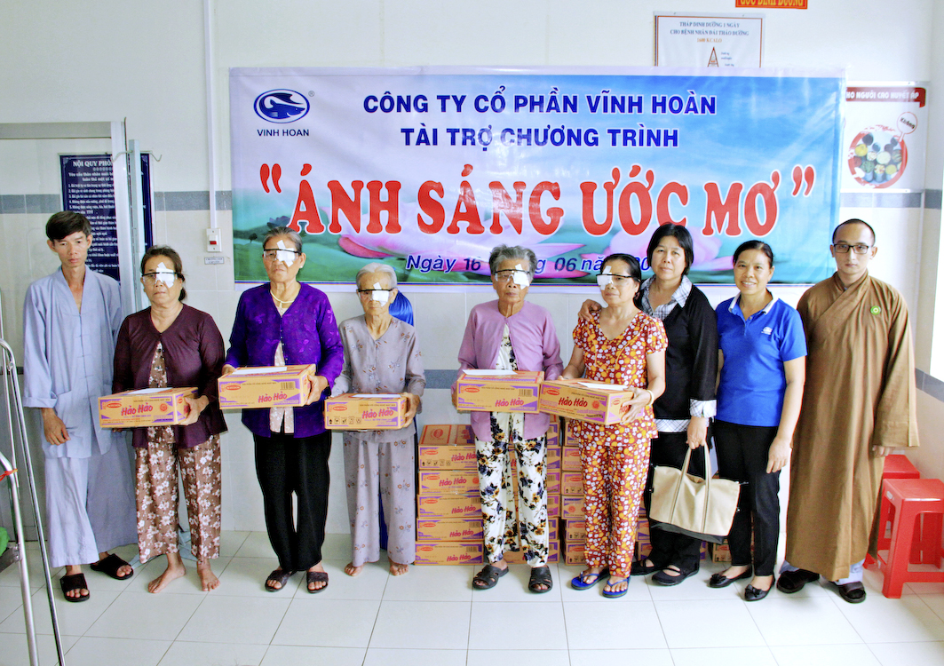 Ngoài việc tài trợ chi phí phẫu thuật mắt, Cty Vĩnh Hoàn còn tặng cho mỗi bệnh nhân một thùng mì và bao phong bì tiền mặt 100.000đ (một trăm nghìn đồng). Đồng hành với chương trình, Tiệm mắt kính Duy Cường – Tp. Tân An tỉnh Long An gởi tặng bà con một kính che bụi sau phẫu thuật. Tại đây, 91 bệnh nhân đều được các y bác sĩ và nhân viên bệnh viện tận tình chăm sóc.