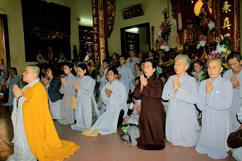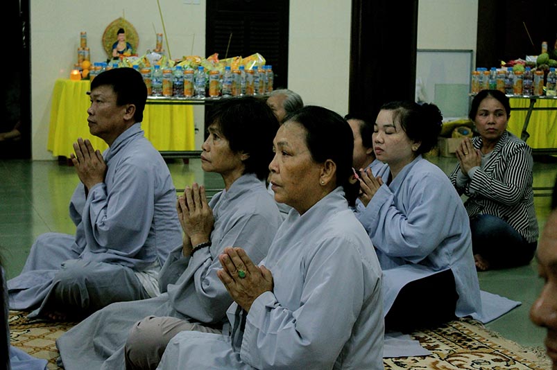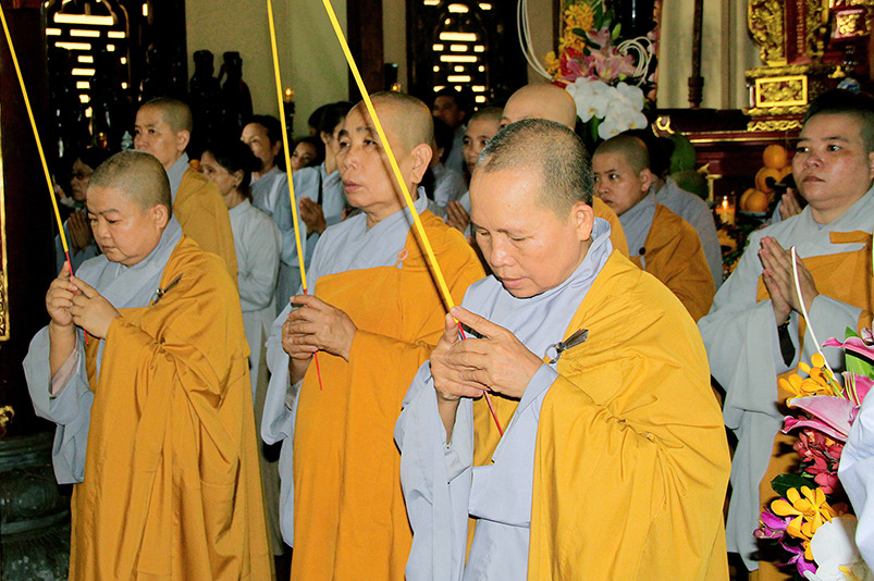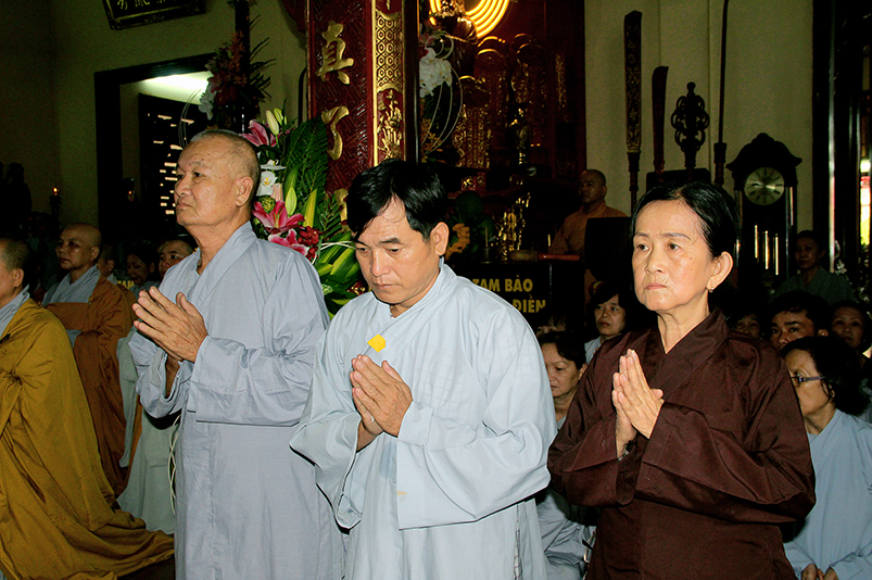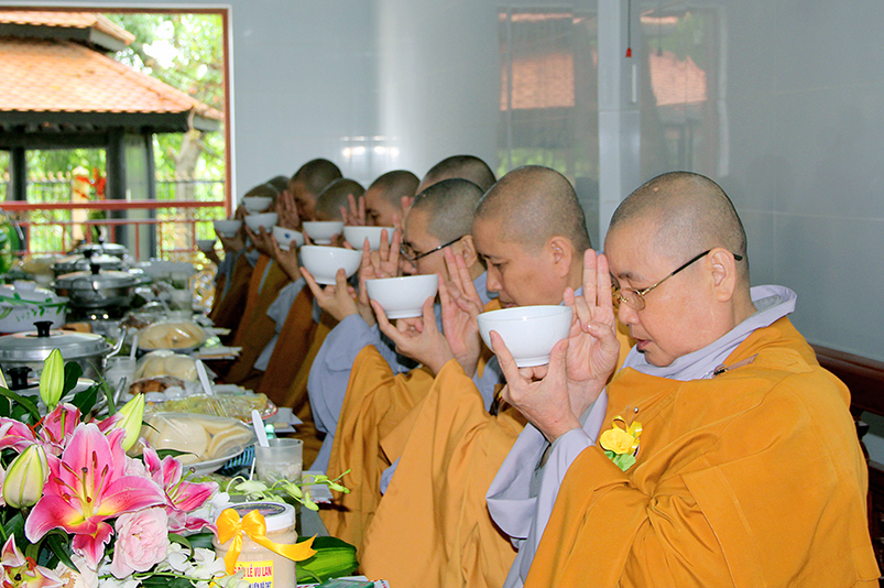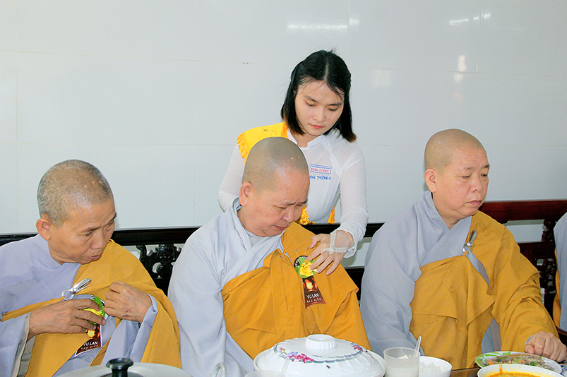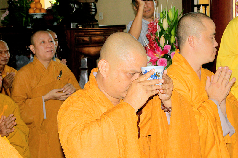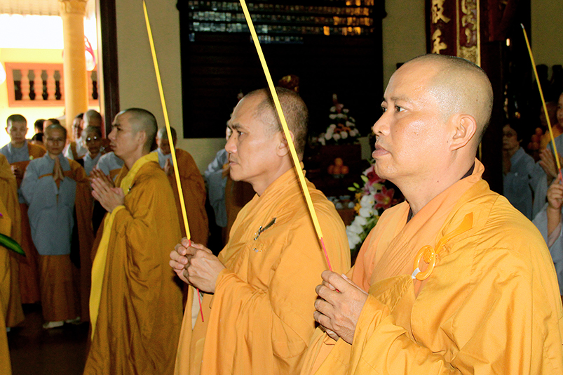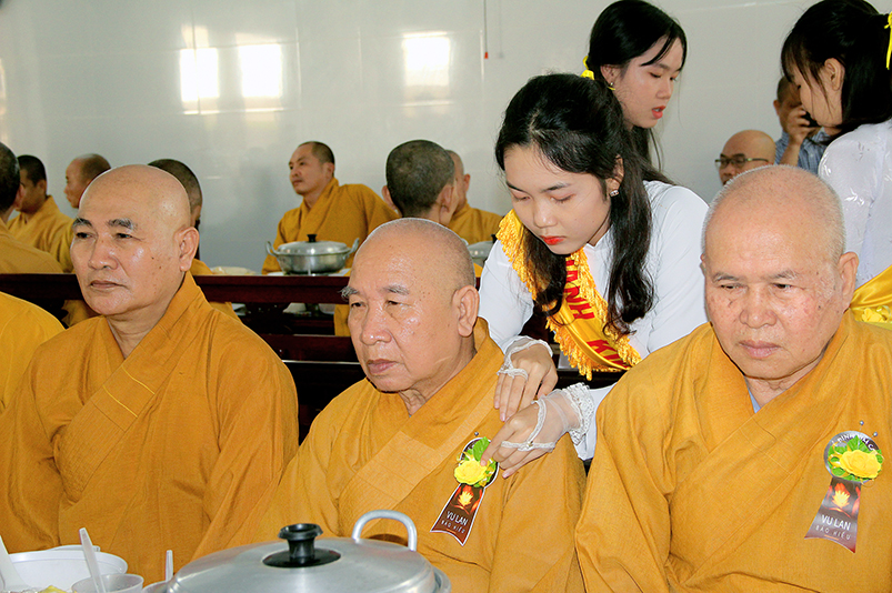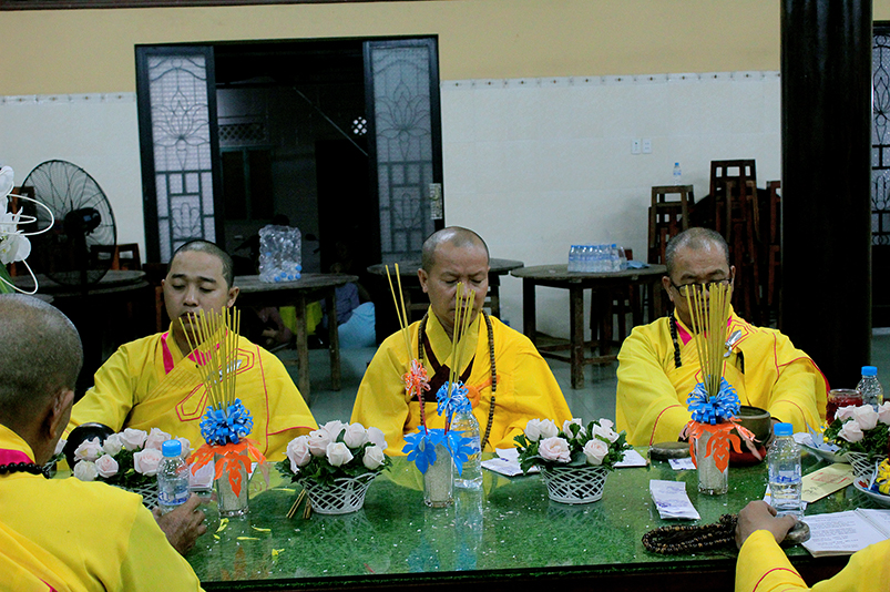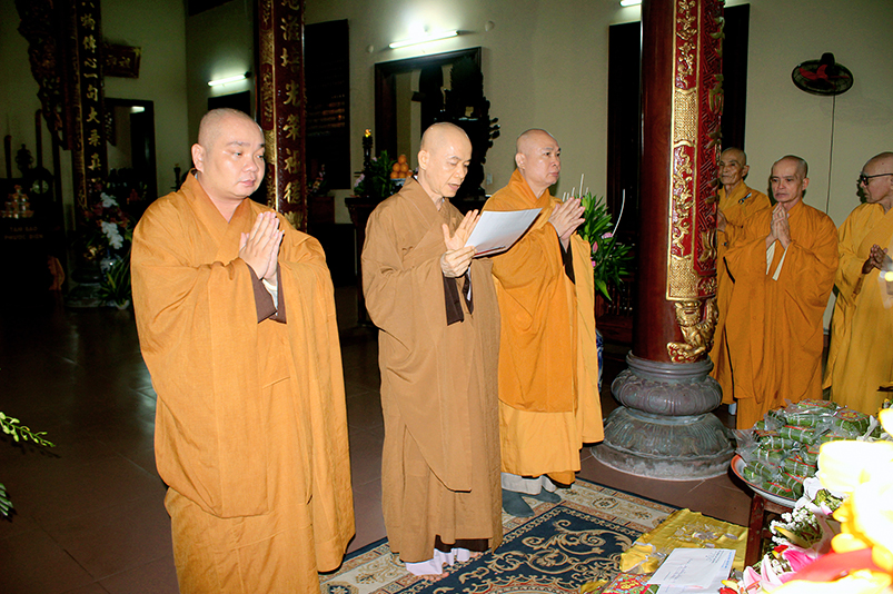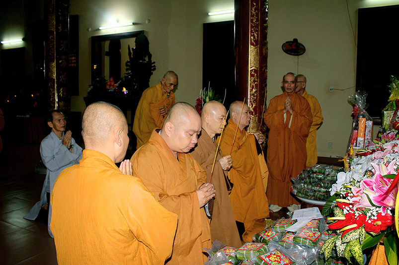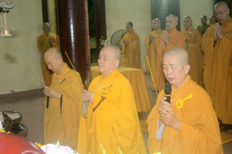 Sau phần cung tuyên tiểu sử, chư Tôn đức đồng dâng hương tưởng niệm, nguyện cầu Giác Linh thượng phẩm sen vàng, sanh ngôi Bất thoái vào hàng Phật môn. Tiếp đó, Ban nghi lễ cung thỉnh quý Ngài thân lâm trai đường, tiến hành nghi thức Vu Lan Báo Hiếu, cài hoa hồng tưởng niệm bốn ân. Trong giây phút thiêng liêng hoài cảm đầy xúc động ấy, pháp quyến kính dâng lời tác bạch cúng dường.