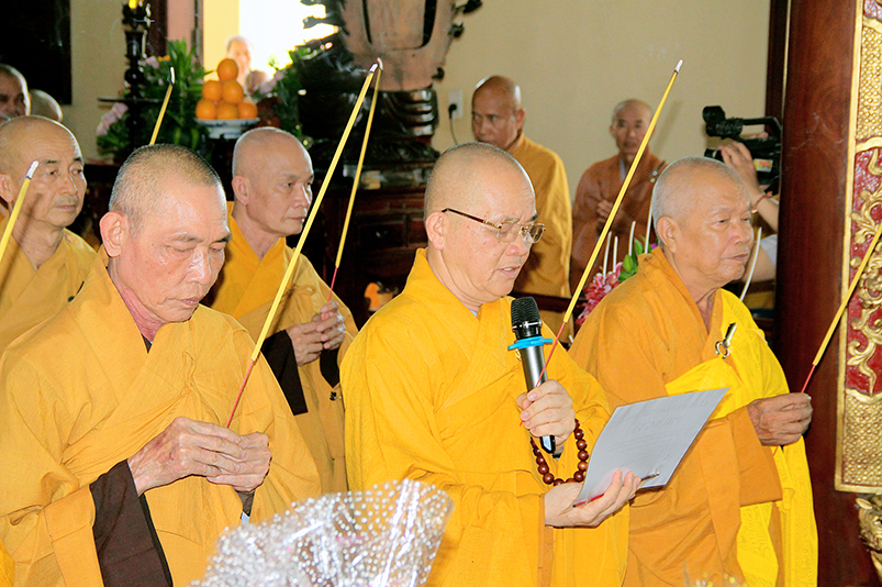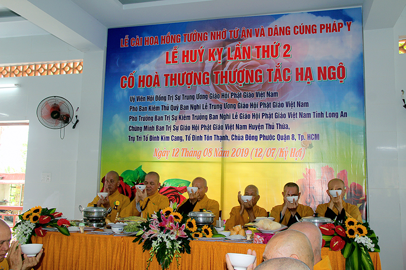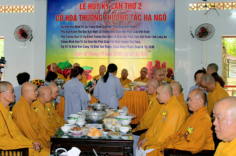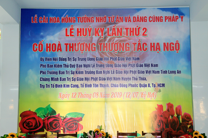 Sau thời nghi thức cúng Ngọ, Tiến Sư, lễ Tưởng niệm Giác linh Cố Hòa thượng chính thức cử hành vào lúc 9g30 với sự tham dự của chư Tôn đức Giáo phẩm tỉnh Long An, chư Tôn đức Thường trực các Ban Trị sự huyện thị lân cận, chư Tôn đức môn phong pháp quyến Tông Thiên Thai Giáo Quán, Trụ trì các tự viện v.v., và quý vị quan khách chính quyền địa phương sở tại.