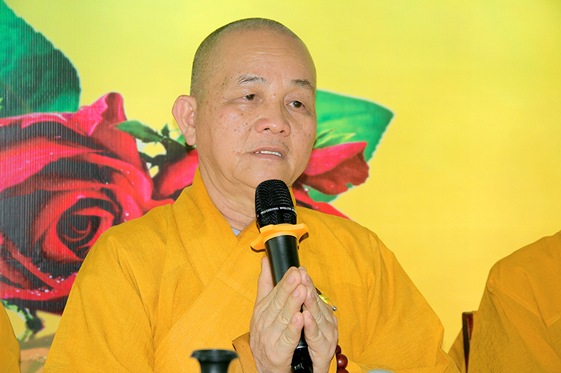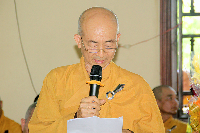 Chứng minh buổi lễ với tất cả tâm tình pháp lữ, Hòa thượng Thích Minh Thiện- Ủy viên Hội đồng Trị sự, Phó trưởng ban Hoằng pháp TW, Trưởng ban Trị sự GHPGVN tỉnh Long An trân trọng ban lời đạo từ. Hòa thượng bùi ngùi ôn lại công hạnh năm xưa của Cố Hòa thượng thượng Tắc hạ Ngộ, kính ghi tất cả Phật sự đang tiến triển tại Tổ đình Kim Cang. Dù Cố Hòa thượng vắng bóng nhưng nhờ sức gia bị của Ngài nên mọi việc đều tốt đẹp. Hiện thực chứng minh, Tổ đình Kim Cang đã hoàn thành các công trình đúng theo tâm nguyện lúc sinh thời của Cố Hòa thượng. Từ bảo tháp đến Tăng đường đều trang nghiêm, các Khóa an cư hằng năm vẫn đều đặn tiến triển, thành tựu. Đó chính là sự tri ân và báo ân cao quý mà môn nhân pháp quyến tại đạo tràng Kim Cang đã thực hiện đúng nghĩa tinh thần ‘Uống nước nhớ nguồn’. Theo đó, Hòa thượng chúc nguyện đạo tràng ngày càng phát triển, chư Tăng an lạc tu tập trong tinh thần hòa hợp đoàn kết, hướng dẫn mọi người tu học tốt, làm lợi ích cho cuộc đời, trang nghiêm Giáo hội, không cô phụ di nguyện của Cố Hòa thượng: