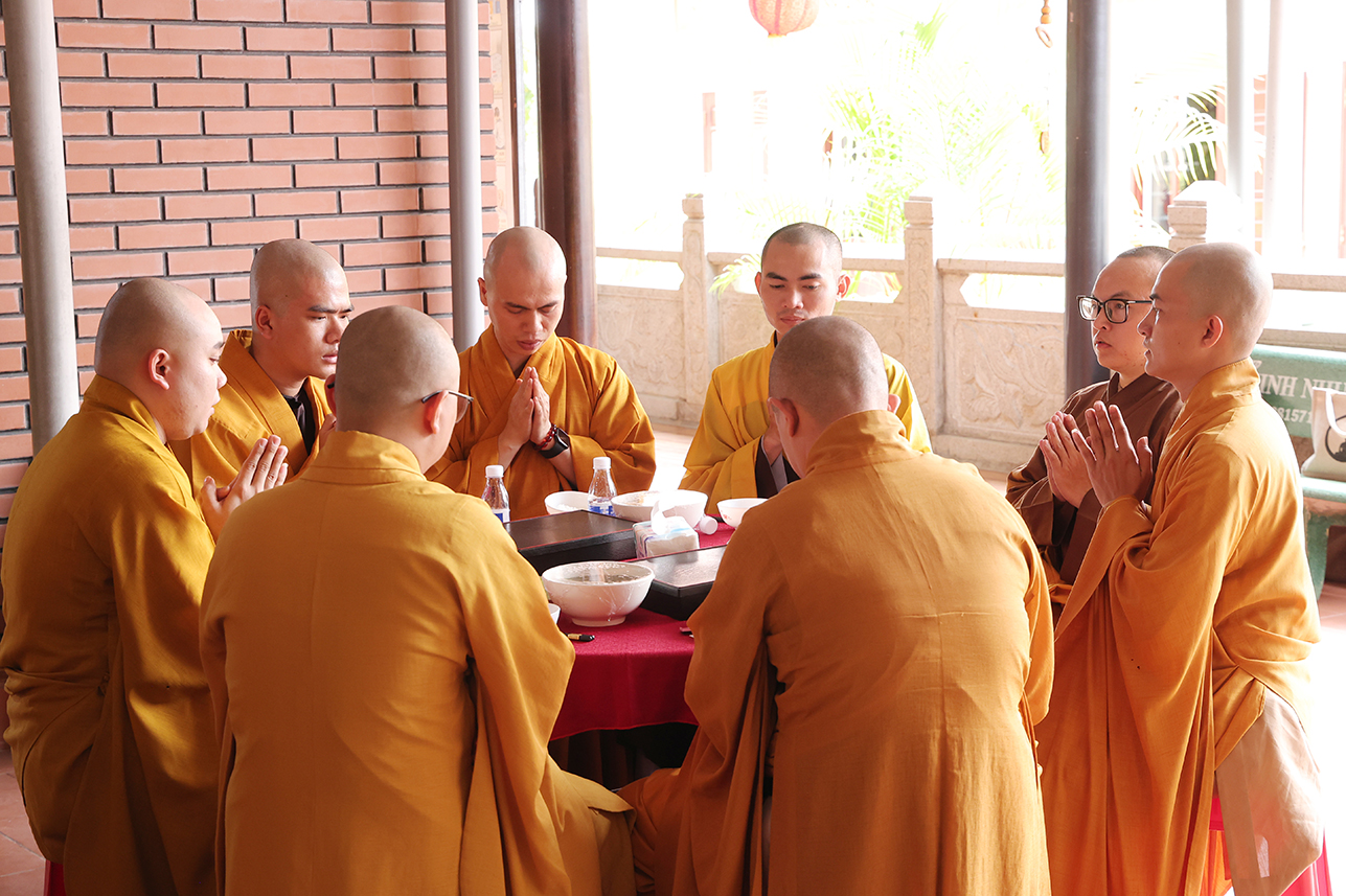 Chư Tôn đức đã thực hiện nghi thức quá đường, hồi hướng cầu nguyện cho trai lễ được thập phần hoàn mãn.