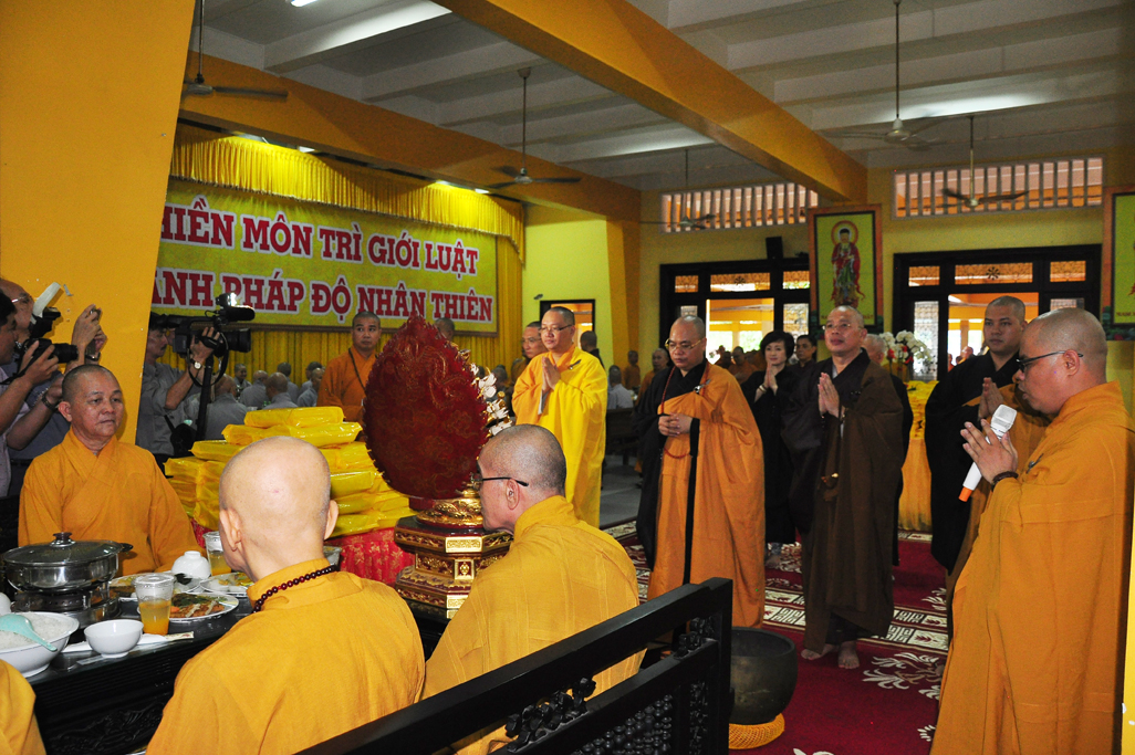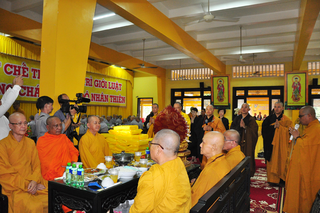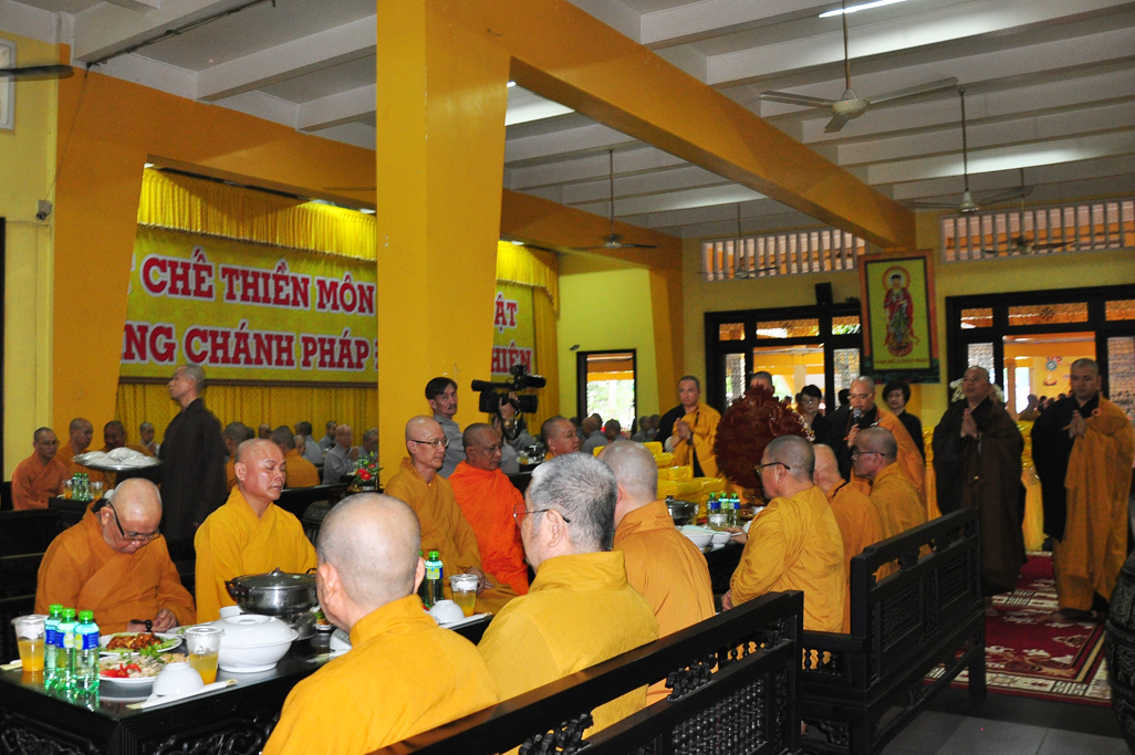 Sau nghi thức tưởng niệm, TT Thích Thanh Phong: Trưởng ban KTTC TƯ, Trụ trì tổ đình Vĩnh Nghiêm và môn đồ pháp quyến cung thỉnh Chư Tôn đức Tăng Ni quang lâm trai đường chứng minh lễ cúng dường trai tăng.