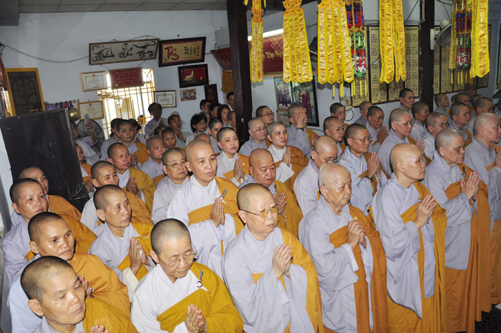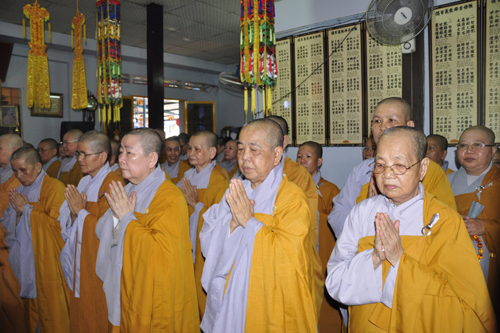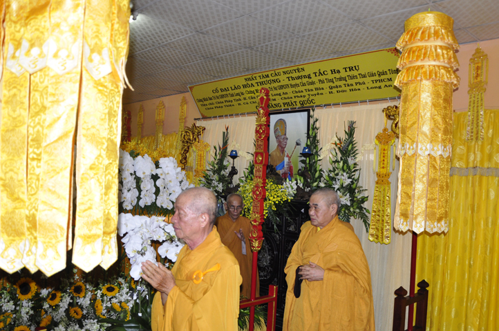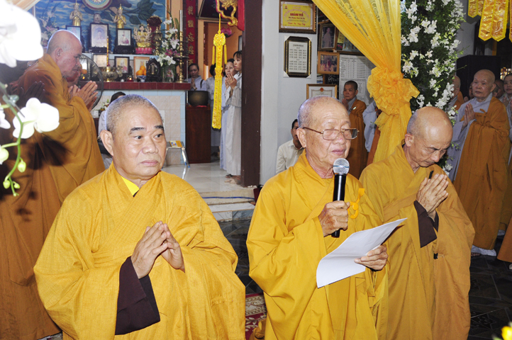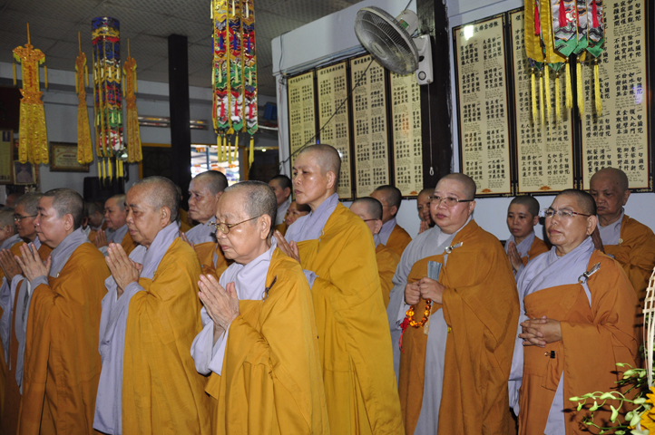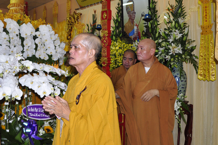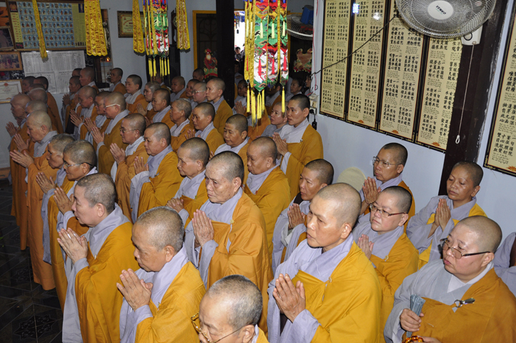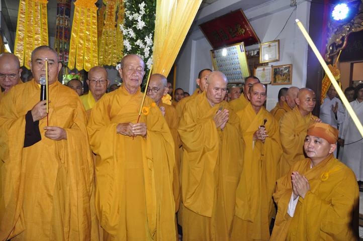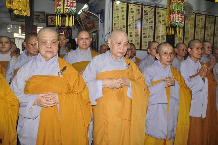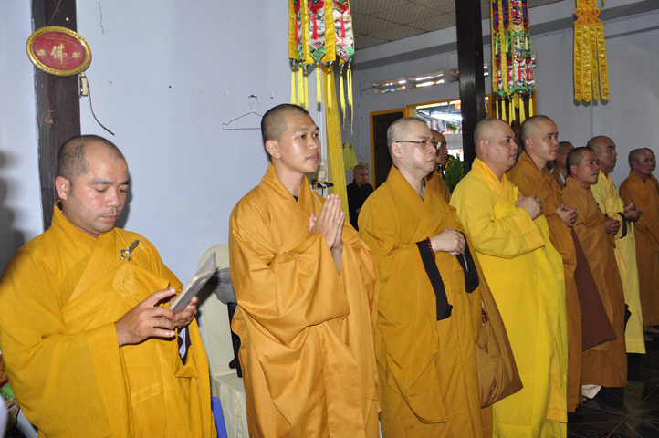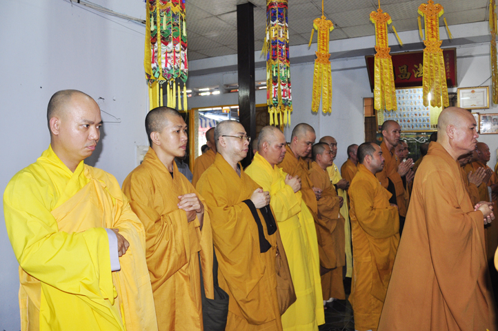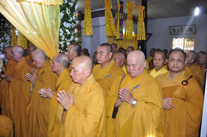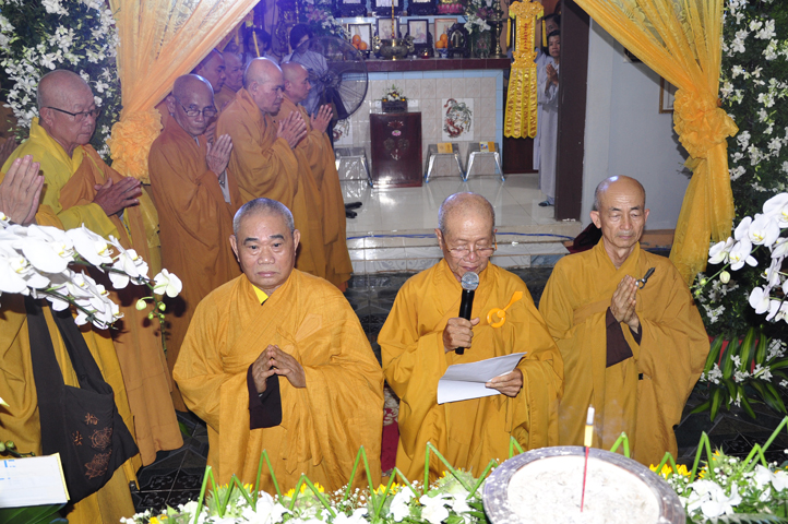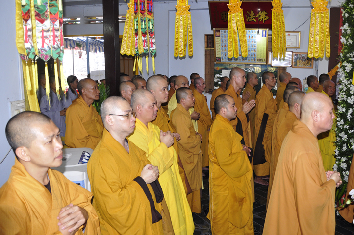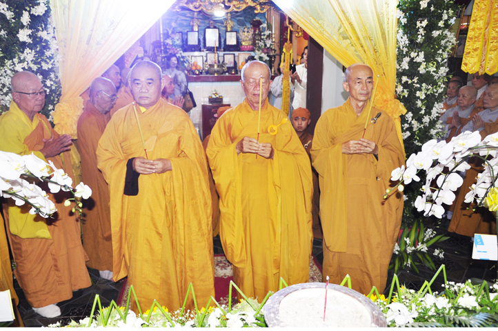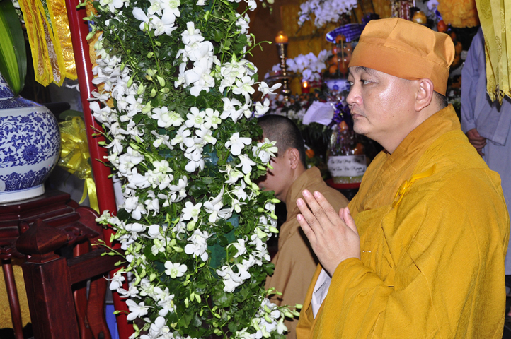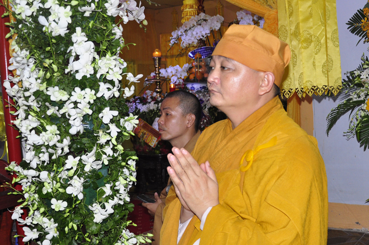 Lễ viếng của các phái đoàn kết thúc cũng là lúc hàng môn nhân pháp quyến trang nghiêm Phật điện, chuẩn bị cử hành Lễ bố-tát, phụng Linh mô đăng Phật điện, cung thỉnh Hòa thượng Thích Tắc Phi tuyên đọc giới Bồ-tát cúng dường.