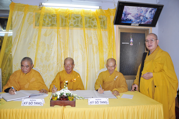 Lễ viếng bắt đầu vào lúc 14g30. Đối trước Giác linh đài của cố Hòa thượng, toàn thể chư Tôn đức Tăng Ni đều bùi ngùi khi nghe lời điếu văn đầy cảm xúc của Hòa thượng Thích Tắc Lãnh – Trưởng Ban Điều hành pháp phái Thiên Thai tưởng niệm.