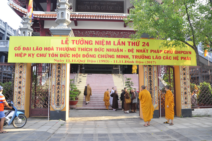 Sáng nay, 28-12 (11-11-Đinh Dậu), Ban Thường trực HĐCM, Ban Thường trực HĐTS phía Nam kết hợp cùng Ban Trị sự GHPGVN TP.HCM tổ chức lễ tưởng niệm lần thứ 24 ngày Đức Đệ nhất Pháp chủ HĐCM GHPGVN – Đại lão HT.Thích Đức Nhuận viên tịch.