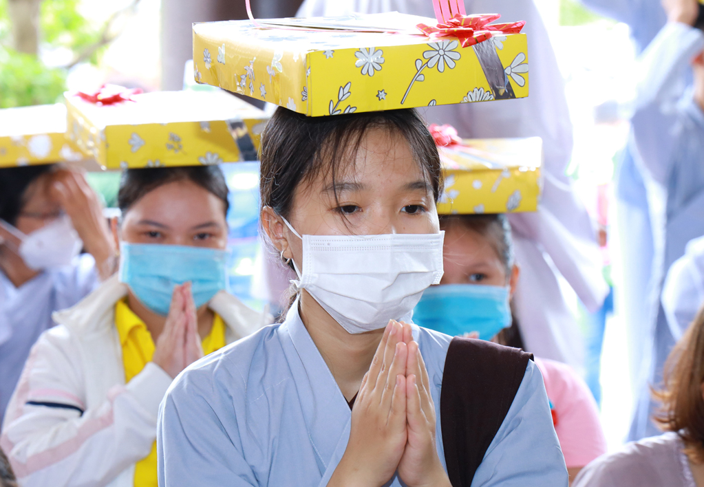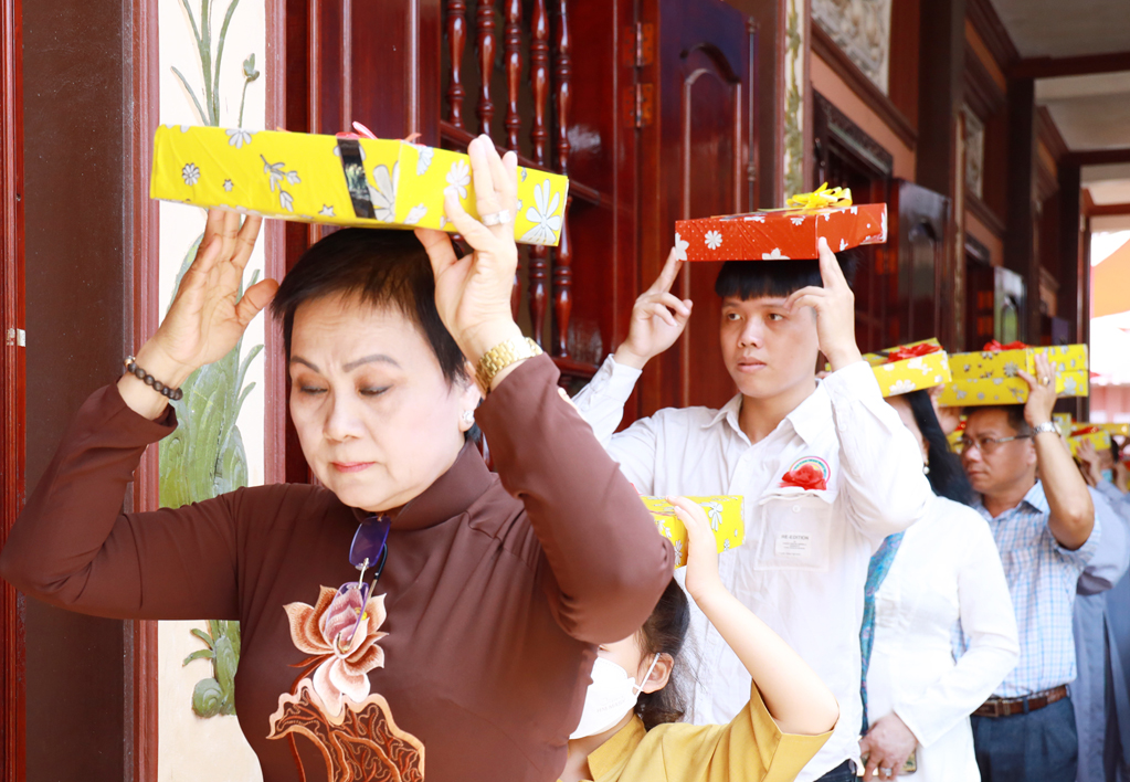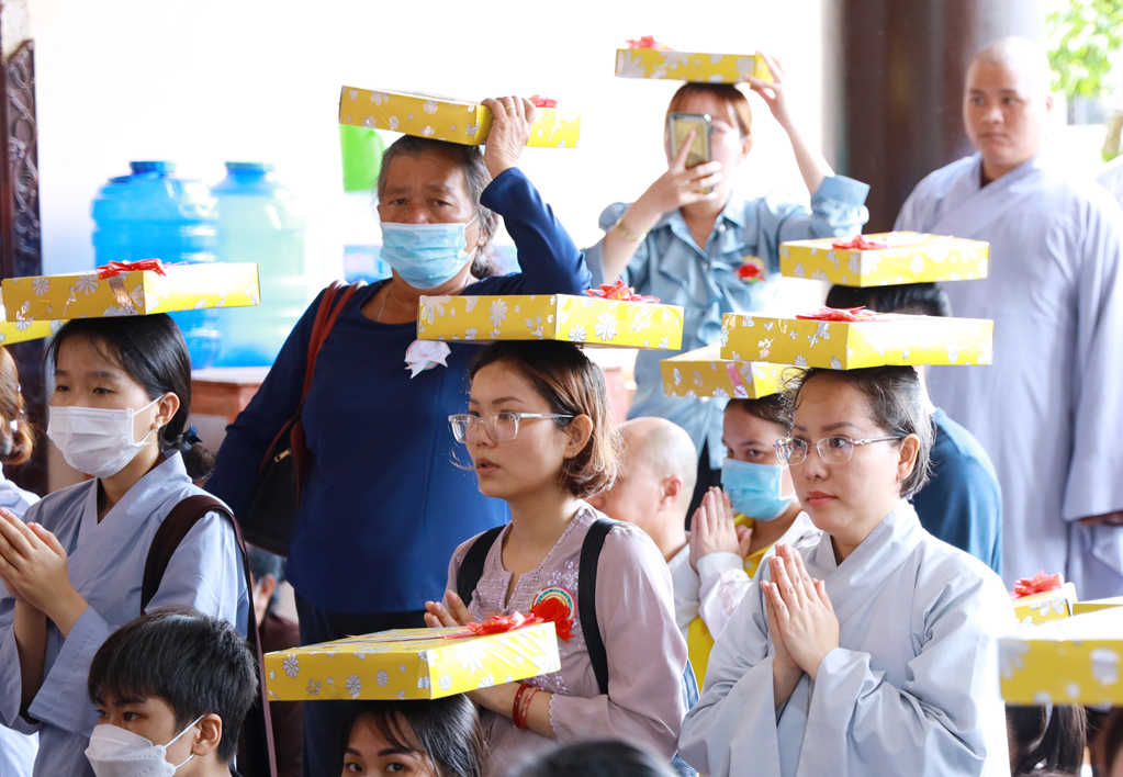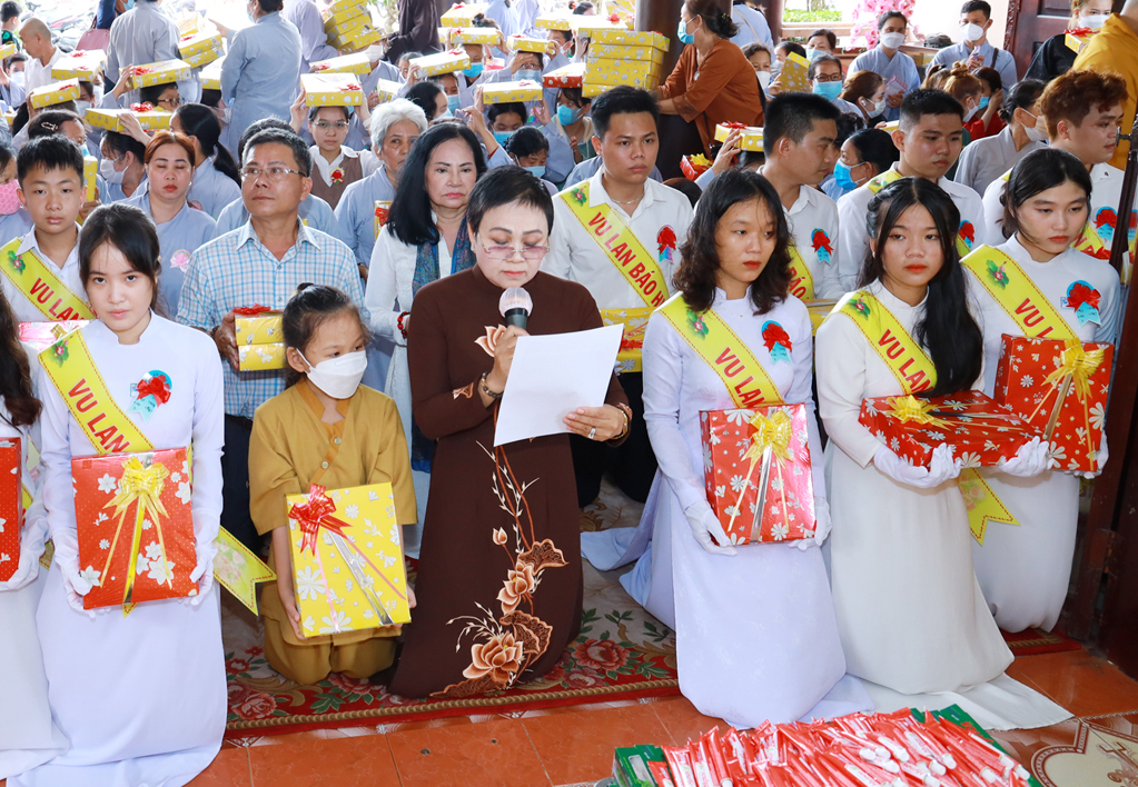 Trong giây phút trang nghiêm lắng động, đại diện Phật tử Chùa Thiên Khánh đã đối trước Tam bảo, dâng lời tác bạch cúng dường trai tăng nhân mùa Vu Lan với tâm nguyện chí thành chí kính, thiết tha tưởng nhớ công cha, bồi hồi ngậm ngùi ơn mẹ, lời tác bạch thiết tha để ca ngợi công ơn sanh thành trời biển, đồng thời là sự hướng tâm, thực hiện lời phật dạy để báo hiếu cha mẹ một cách tốt đẹp nhất.