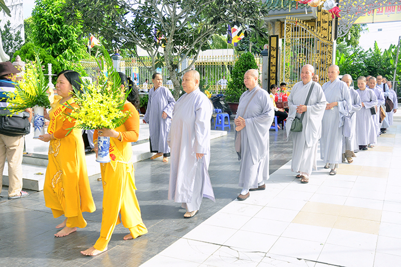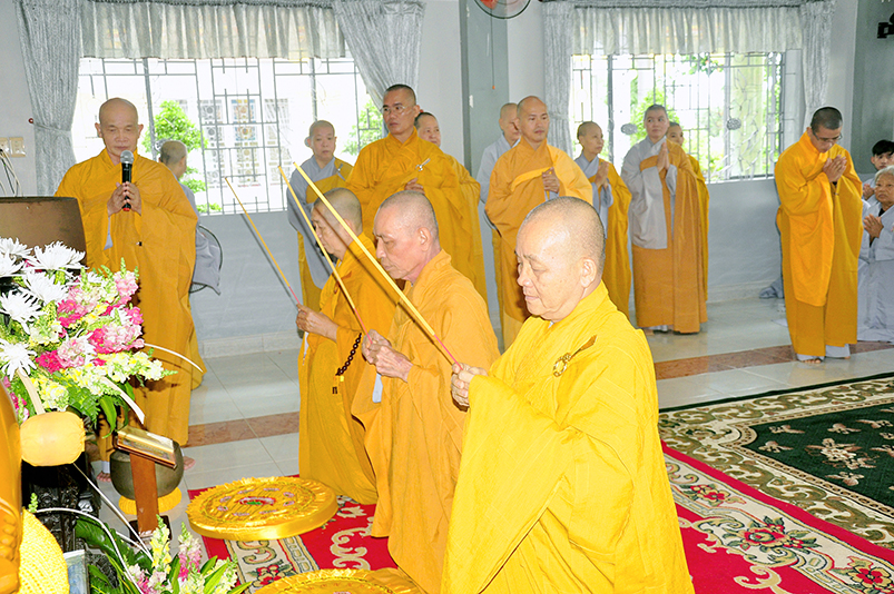 Buổi lễ với sự chứng minh tham dự của Hòa thượng Thích Thiện Huệ – Chứng minh BTS GHPGVN tỉnh Long An; HT. Thích Minh Thiện –Ủy viên HĐTSTƯ GHPGVN, Phó Ban Hoằng pháp trung ương, Trưởng Ban Trị sự GHPGVN tỉnh Long An; HT. Thích Thiện Tài- Phó Ban Trị sự kiêm trưởng Ban Nghi lễ GHPGVN tỉnh Long An; TT. Thích Minh Thọ – Uỷ viên Hội đồng Trị sự Trung Ương, Phó Ban Trị sự GHPGVN tỉnh Long An; ĐĐ. Thích Lệ Trí – Ủy viên HĐTSTƯ, Phó Ban Trị sự kiêm Trưởng Ban Giáo dục Tăng Ni Ban Trị sự GHPGVN tỉnh Long An; Cùng Chư Tôn Thiền Đức Tăng Ni trong thường trực trong BTS.GHPGVN tỉnh, Tp. Tân An, Chư tôn đức trụ trì các tự viện và hơn 400 Phật tử đồng về tham dự.