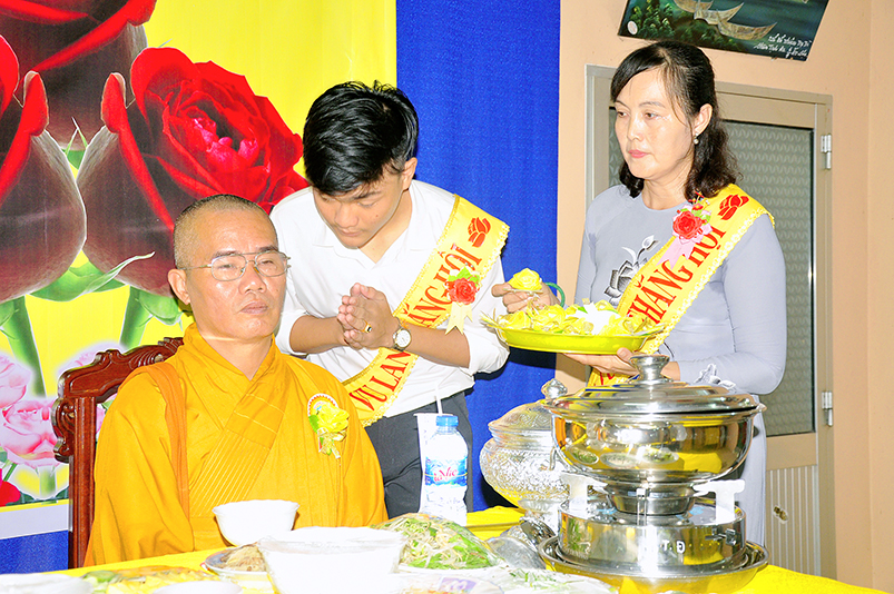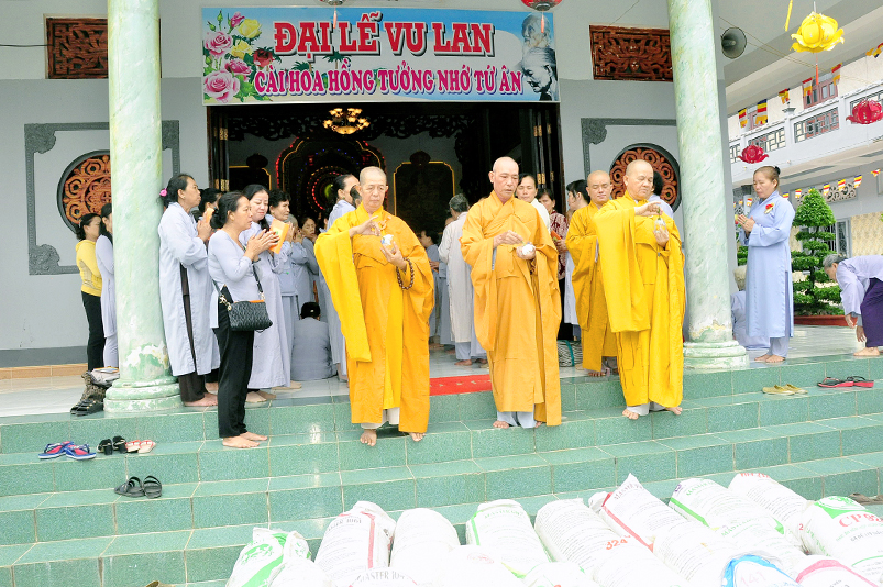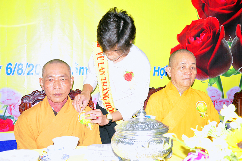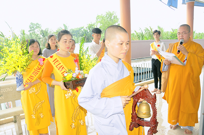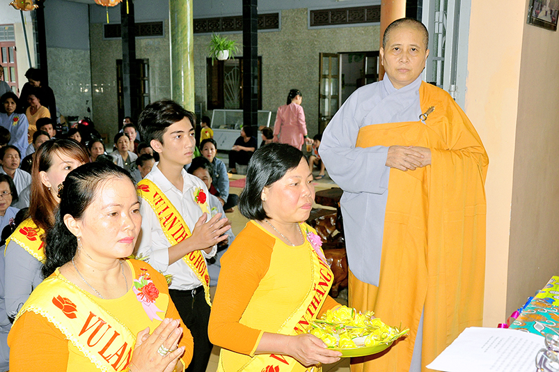 Thay mặt cho chư Tôn đức, HT.Thích Minh Thiện ban lời đạo từ tán thán đến nhị vị Ni sư và khuyến tấn các Phật tử. Hòa thượng dạy: “Chúng ta tổ chức lễ Vu lan là tôn vinh tinh thần tri ân và báo ân theo lời đức Phật chỉ dạy, để trở thành con hiền cháu thảo đối với Ông Bà Tổ Tiên và Cha Mẹ của mình. Chư Tôn Đức thọ trì đọc tụng kinh văn, cùng với việc phóng sanh, tất cả đều là vì mọi người được sở nguyện tùy tâm, sở cầu như ý. Đồng thời cũng là nhắc nhở ân sanh thành dưỡng dục là trên hết không lấy chi đền đáp cho cân xứng. Hòa thượng mong rằng Phật tử học thuộc lời kinh ấy, cố gắng sống thật tốt từ trong gia đình đến ngoài xã hội.