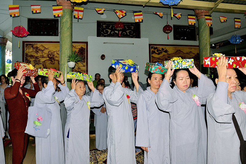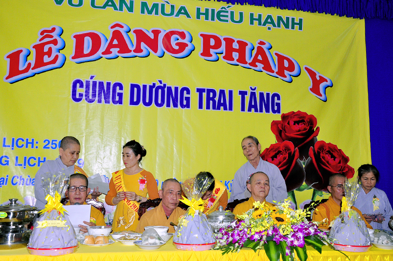 Hòa cùng nhịp đập con tim hiếu ân, đại diện toàn thể Phật tử dâng lên lời tác bạch cúng dường Vu Lan, dâng y Ca Sa.