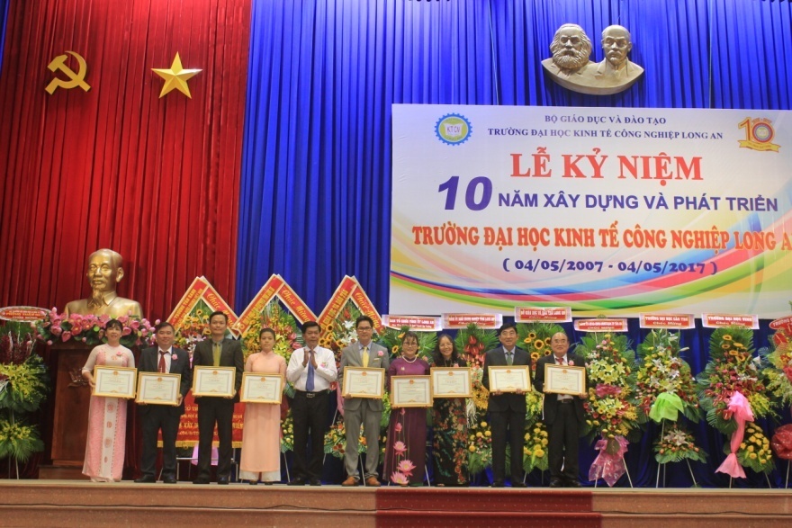Cũng trong dịp này, Trường Đại học Kinh tế-Công nghiệp Long An vinh dự  nhận được 4 bằng khen của Bộ Giáo dục và Đào tạo, trong đó, có 1 tập thể và 3 cá nhân; 11 bằng khen của Chủ tịch UBND tỉnh Long An, trong đó, có 1 tập thể và 10 cá nhân.