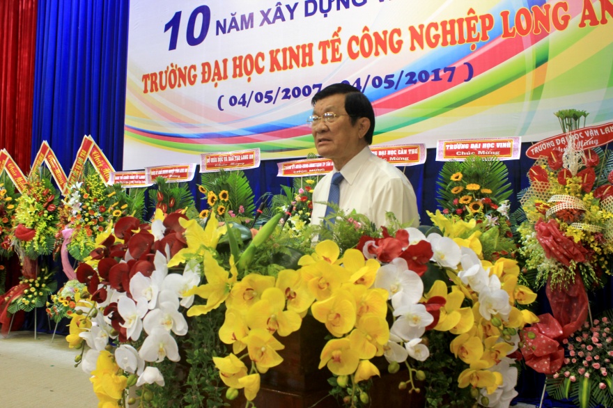 Đặc biệt, Nguyên Chủ tịch nước Trương Tấn Sang phát biểu chúc mừng và bày tỏ vui mừng trước những thành tựu mà trường Đại học Kinh tế Công nghiệp Long An đạt được trong 10 năm qua. Đồng thời, ông cũng mong muốn trường cũng tiếp tục phát huy và khắc phục những hạn chế để trường trở thành những địa chỉ đào tạo uy tín, tiên tiến trong hệ thống trường Đại học dân lập.