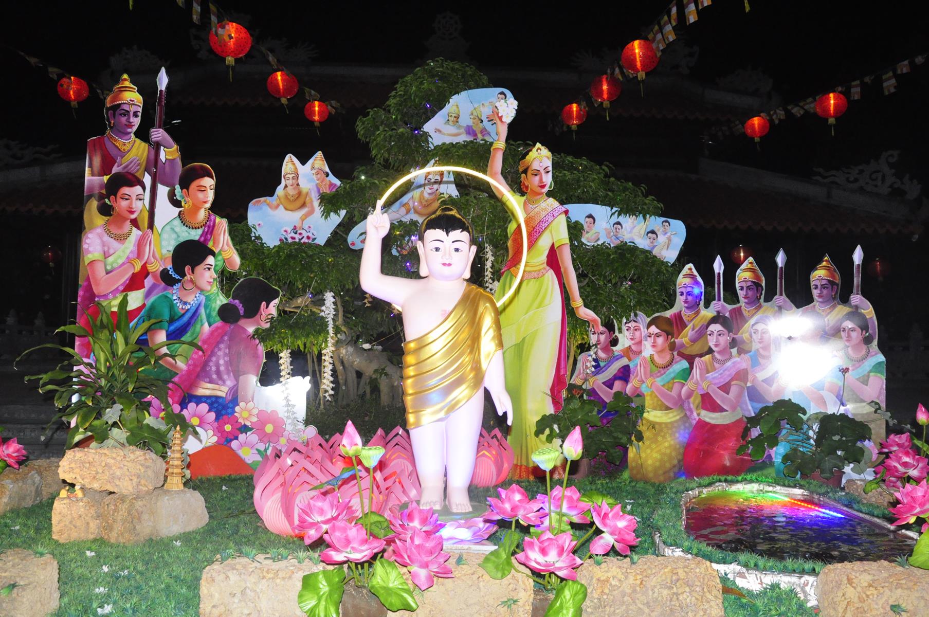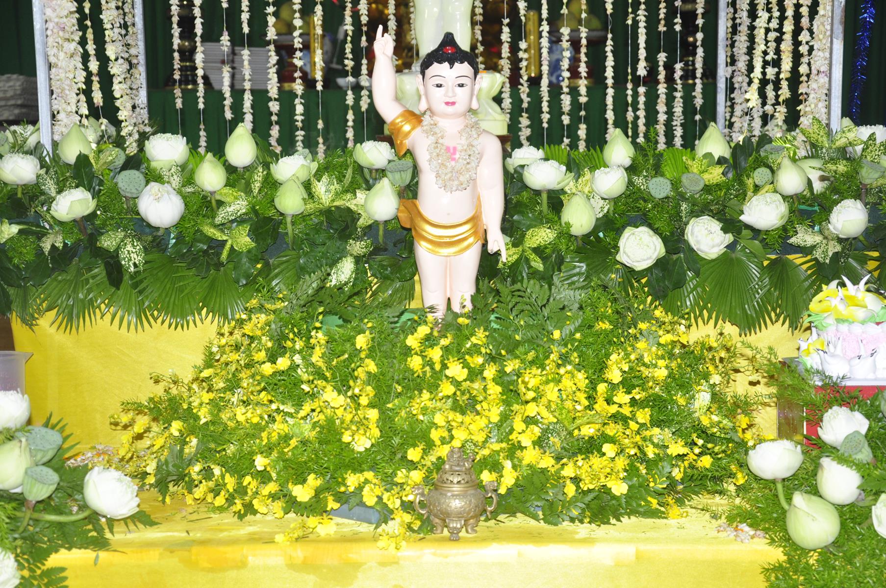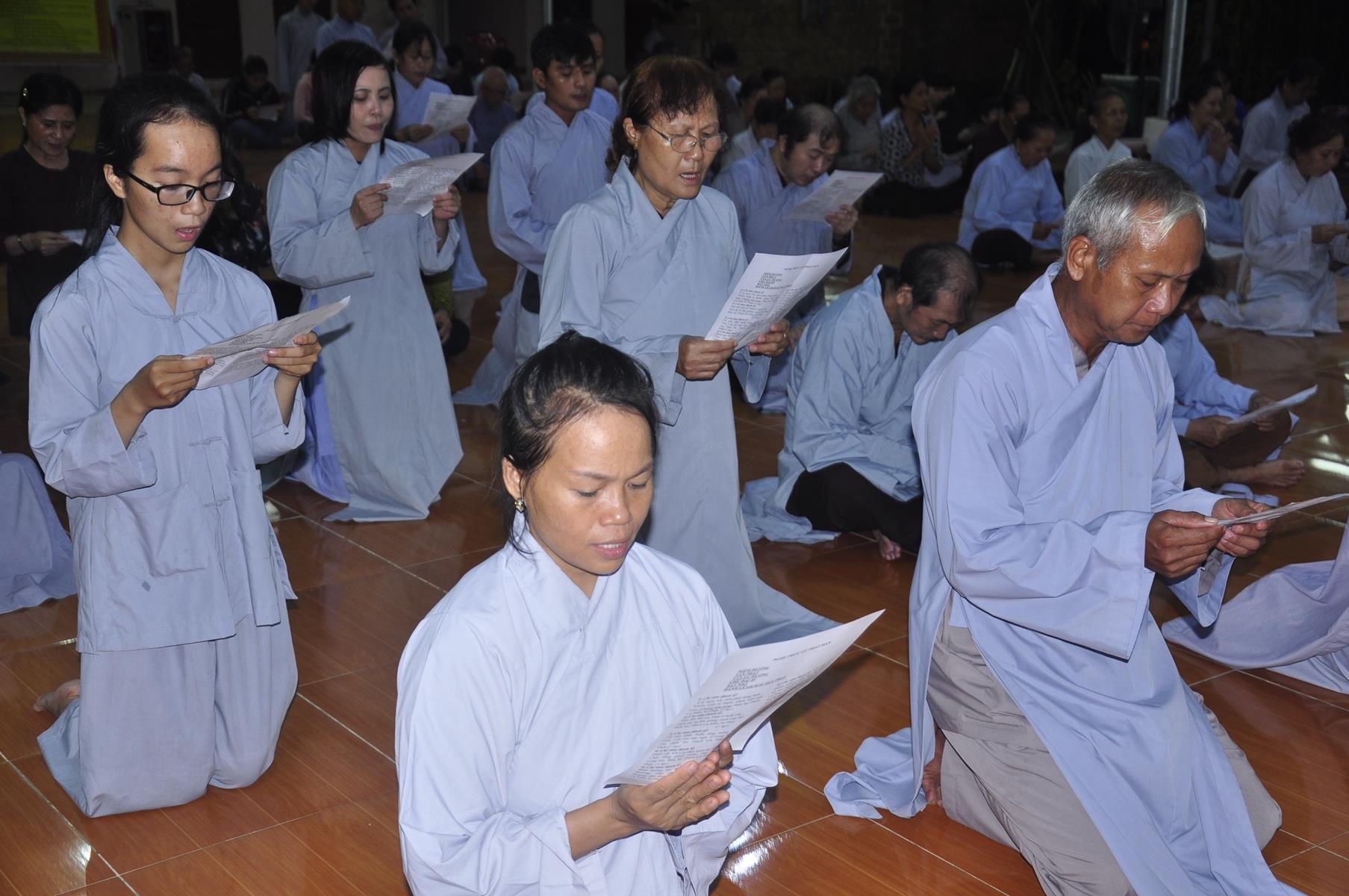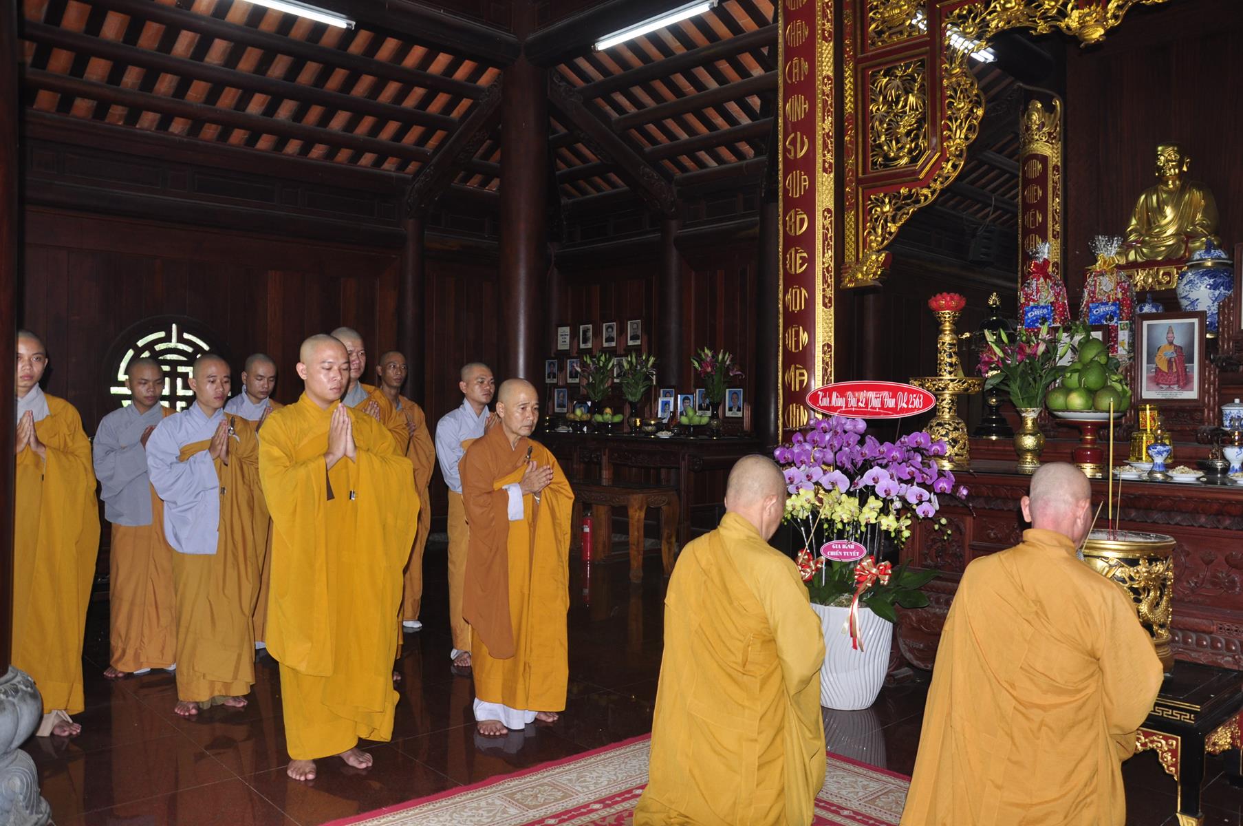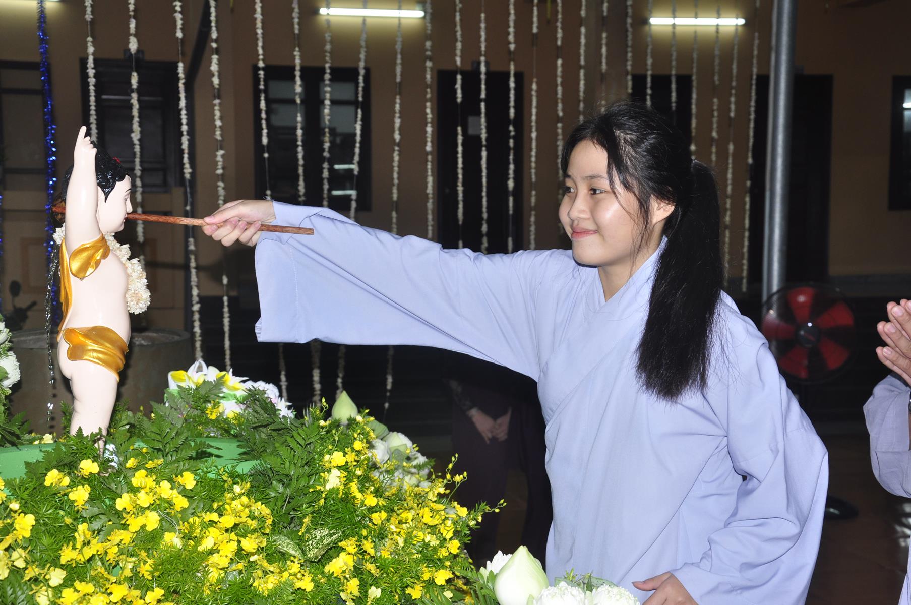 Tối cùng ngày, Ban Chủ Nhiệm cử hành nghi lễ tắm Phật để kính mừng Đại lễ Phật đản PL 2563 cho Tăng sinh Lớp Sơ cấp Phật học Long An và Phật tử chùa Pháp Minh.