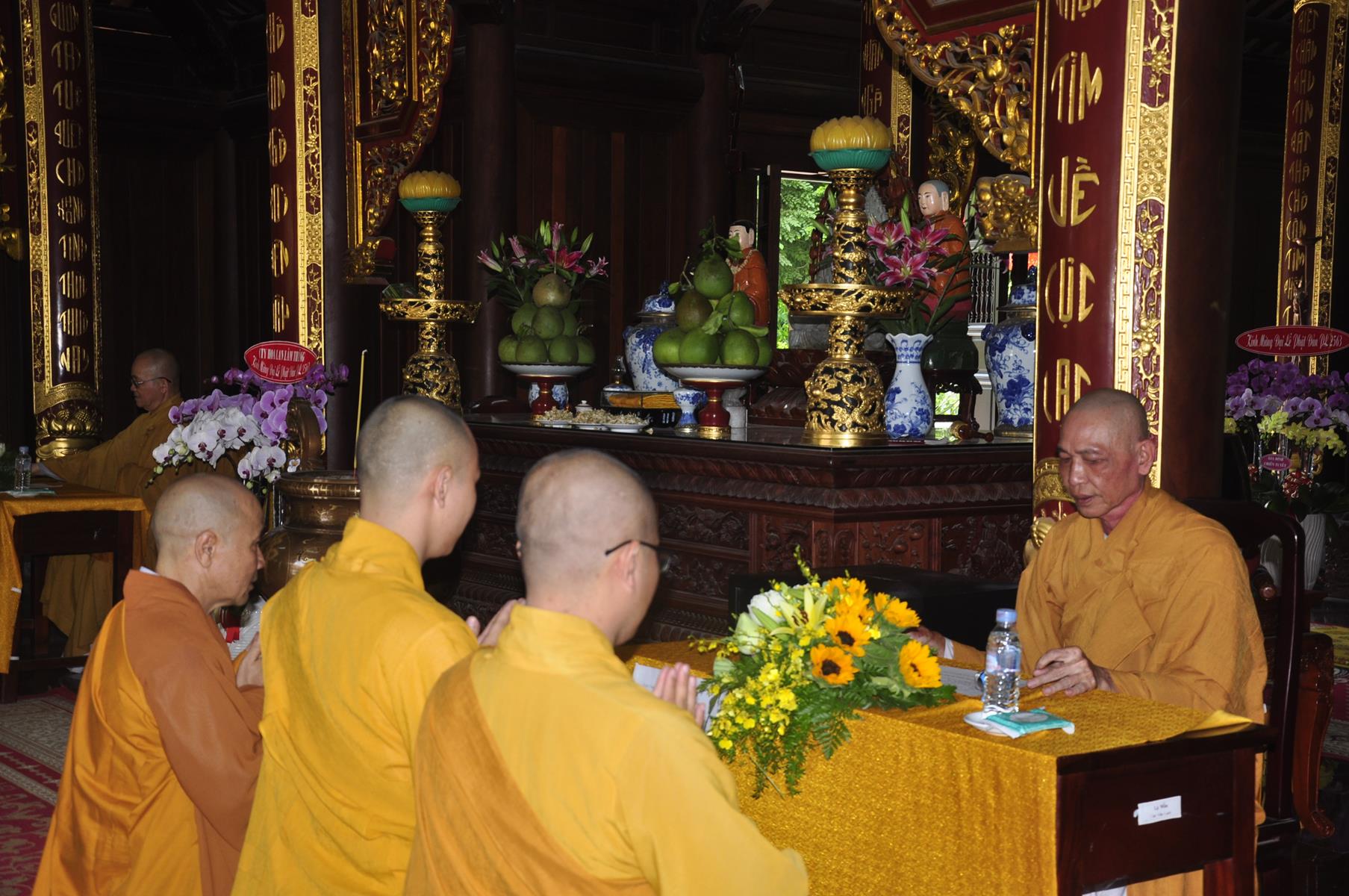 Nhị vị hòa thượng đã y theo Tỳ Ni luật tạng tác pháp an cư cho Ban Chủ nhiệm và Tăng sinh. Đồng thời, theo lời thỉnh cầu của Ban Chủ Nhiệm nhị vị hòa thượng ban lời sách tấn cho Tăng sinh trong 3 tháng an cư phải luôn tự thân nghiêm túc, dành trọn thời gian, dũng mãnh tu tập, nghiêm trì giới luật, thực hành bố tát, kiết giới nghiêm trang để tăng trưởng đạo hạnh. Quý ngài khuyến tấn cho Tăng sinh nương theo lời dạy cũng như giới luật mà tu tập và tinh tấn hơn. Những lời giáo huấn của Nhị vị hòa thượng có ý nghĩa sâu sắc, luôn quan tâm hàng đệ tử hậu tấn. Điều đó càng làm động lực mạnh hơn trong sự tu, sự học của Tăng sinh.