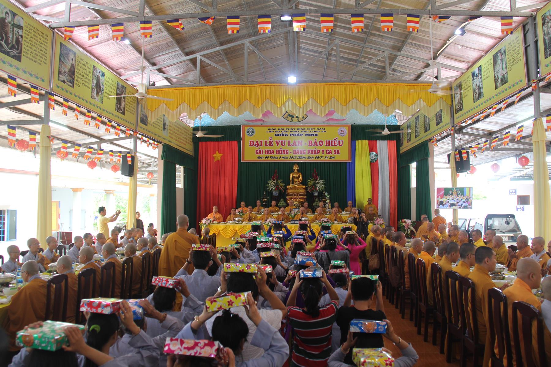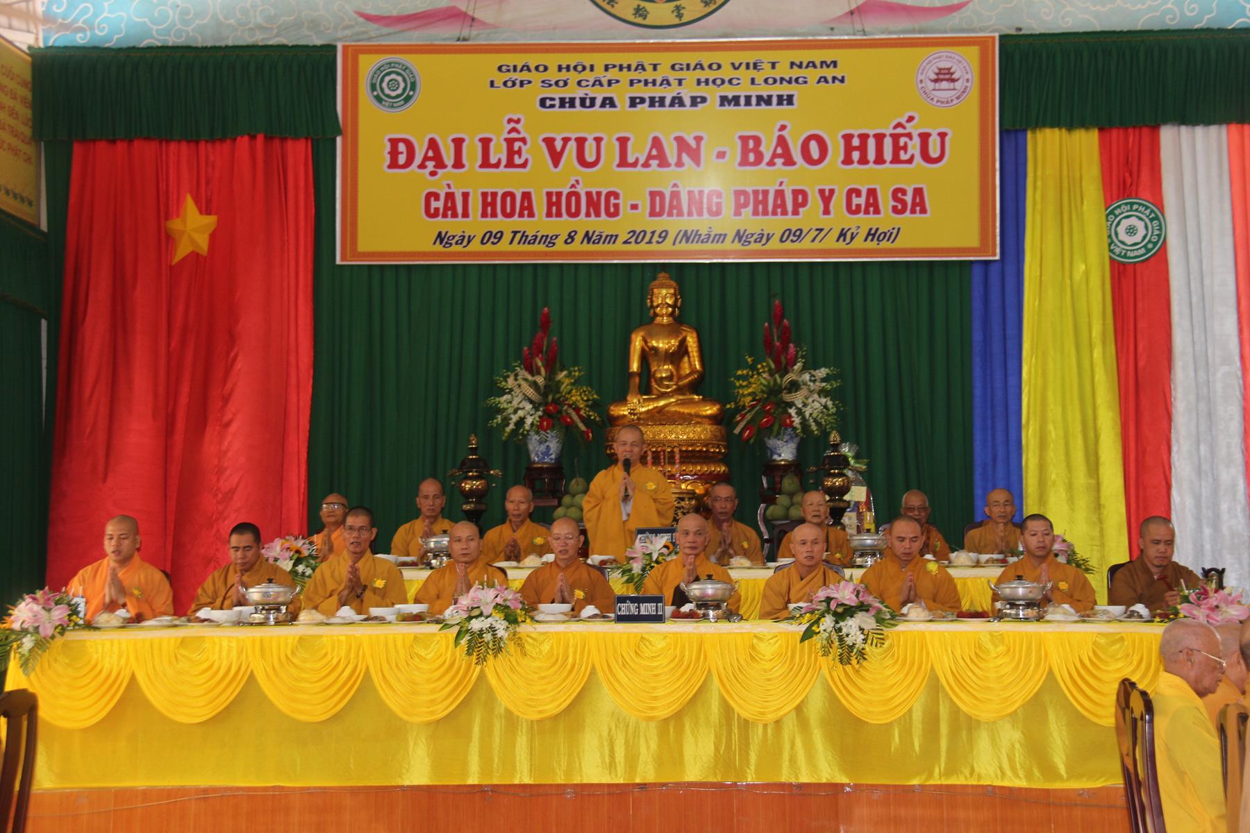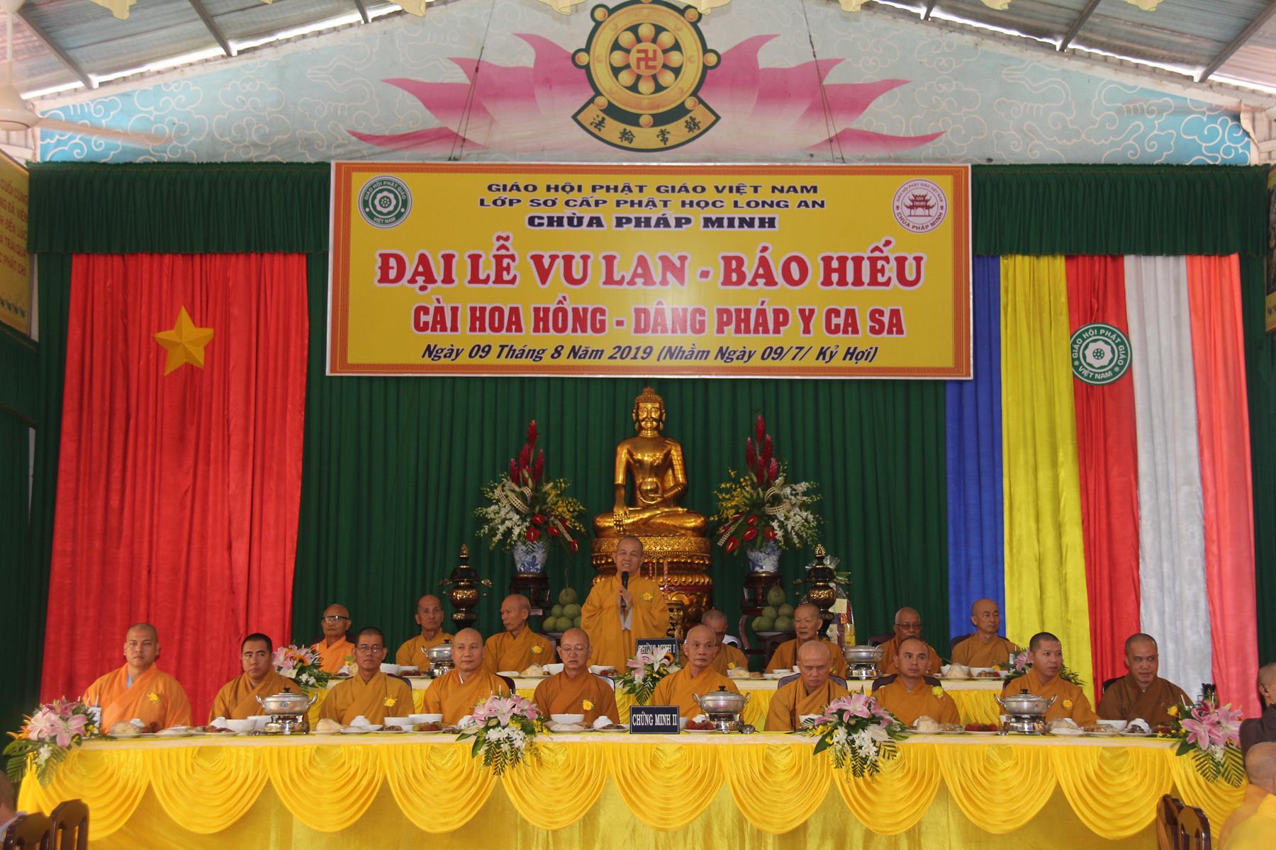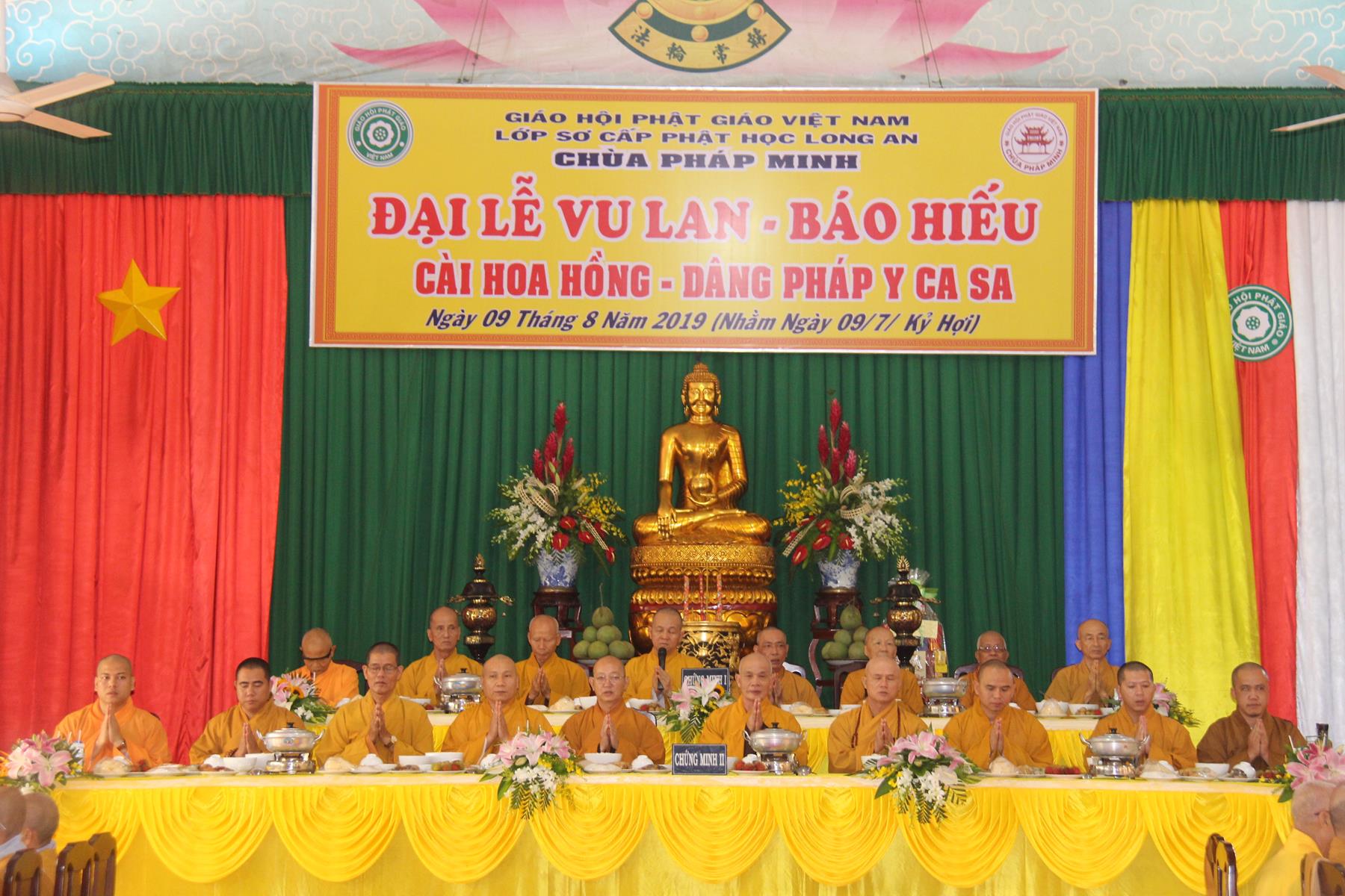 Sáng ngày, 09 tháng 8 năm 2019 (nhằm ngày 09/7/Kỷ Hợi) tại chùa Pháp Minh (văn phòng Lớp Sơ cấp Phật học Long An), ấp Giồng Lớn, xã Mỹ Hạnh Nam, huyện Đức Hòa, tỉnh Long An diễn ra lễ Tự tứ và Đại lễ Vu Lan Báo hiếu PL 2563 – DL 2019.
