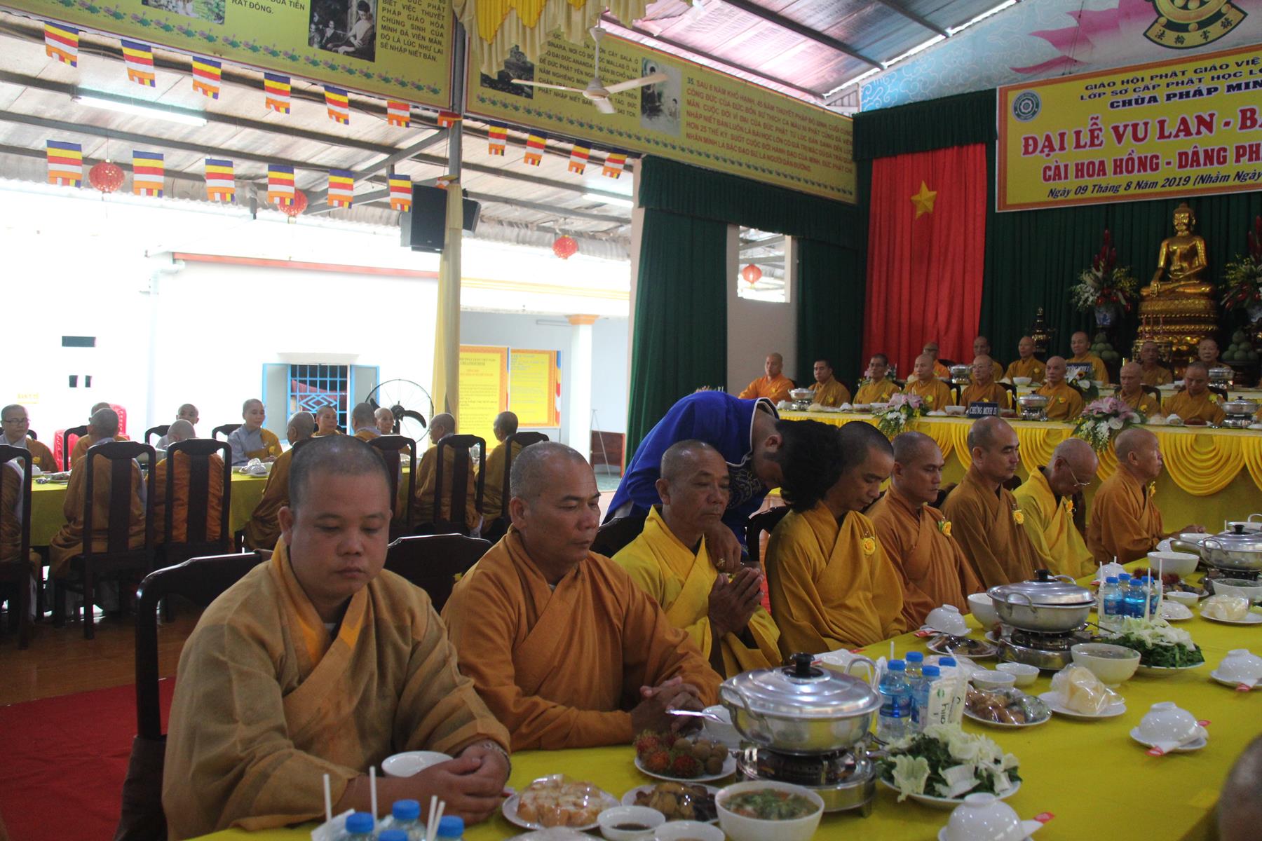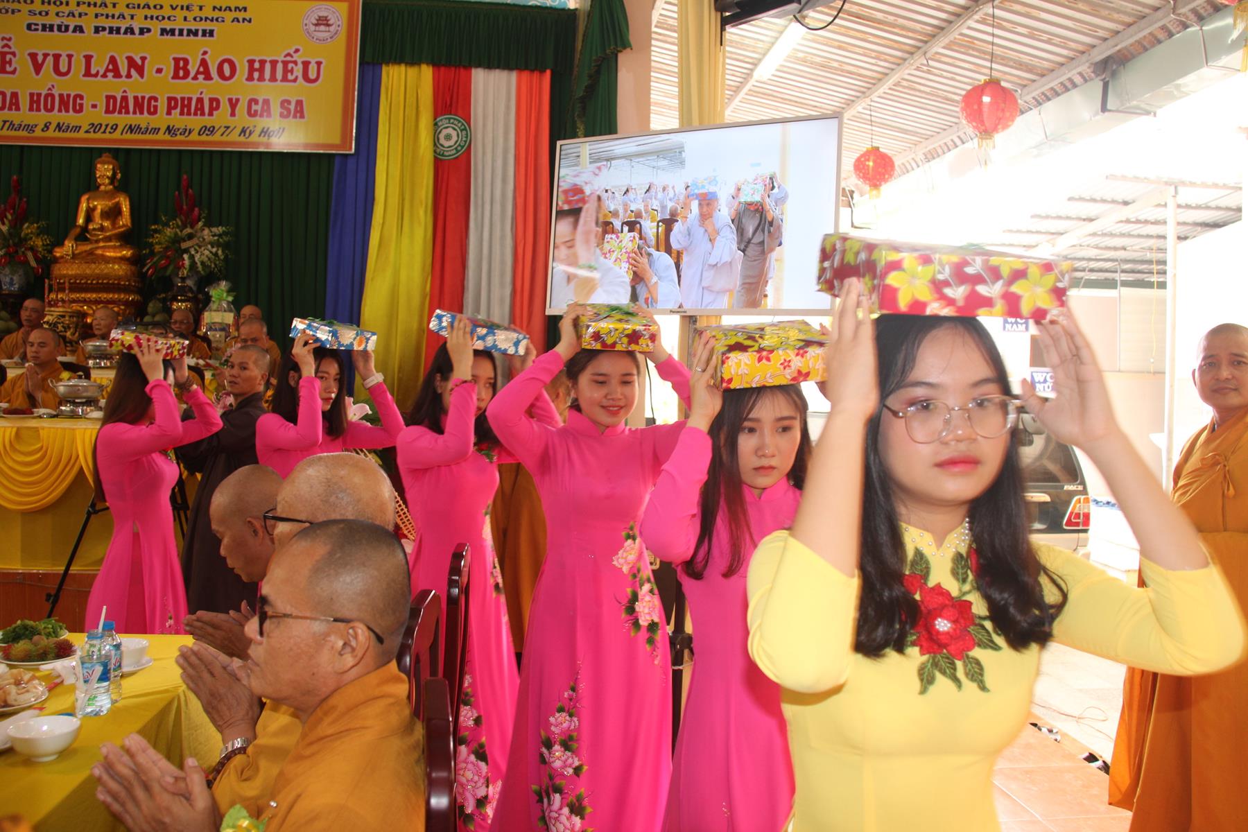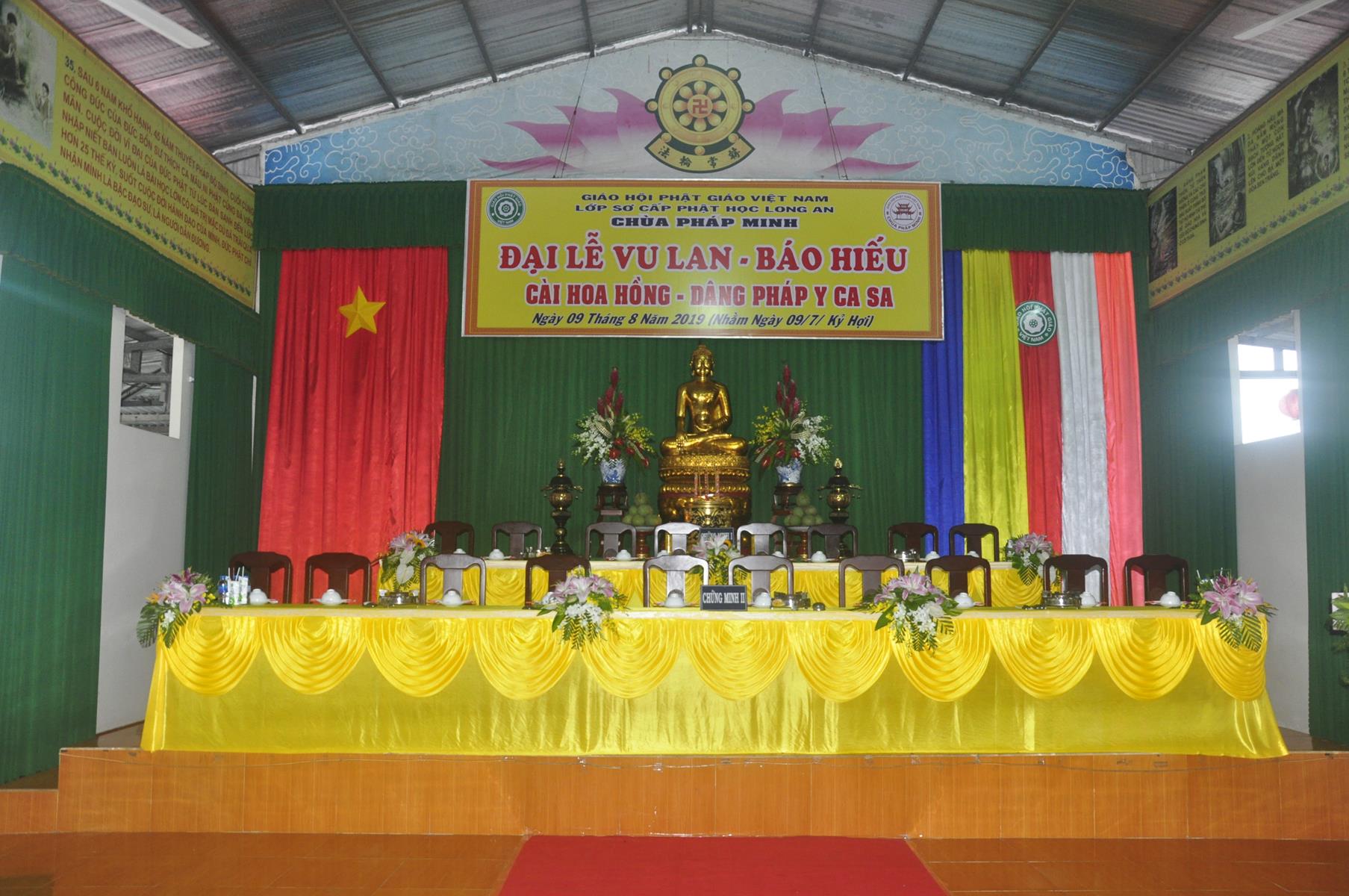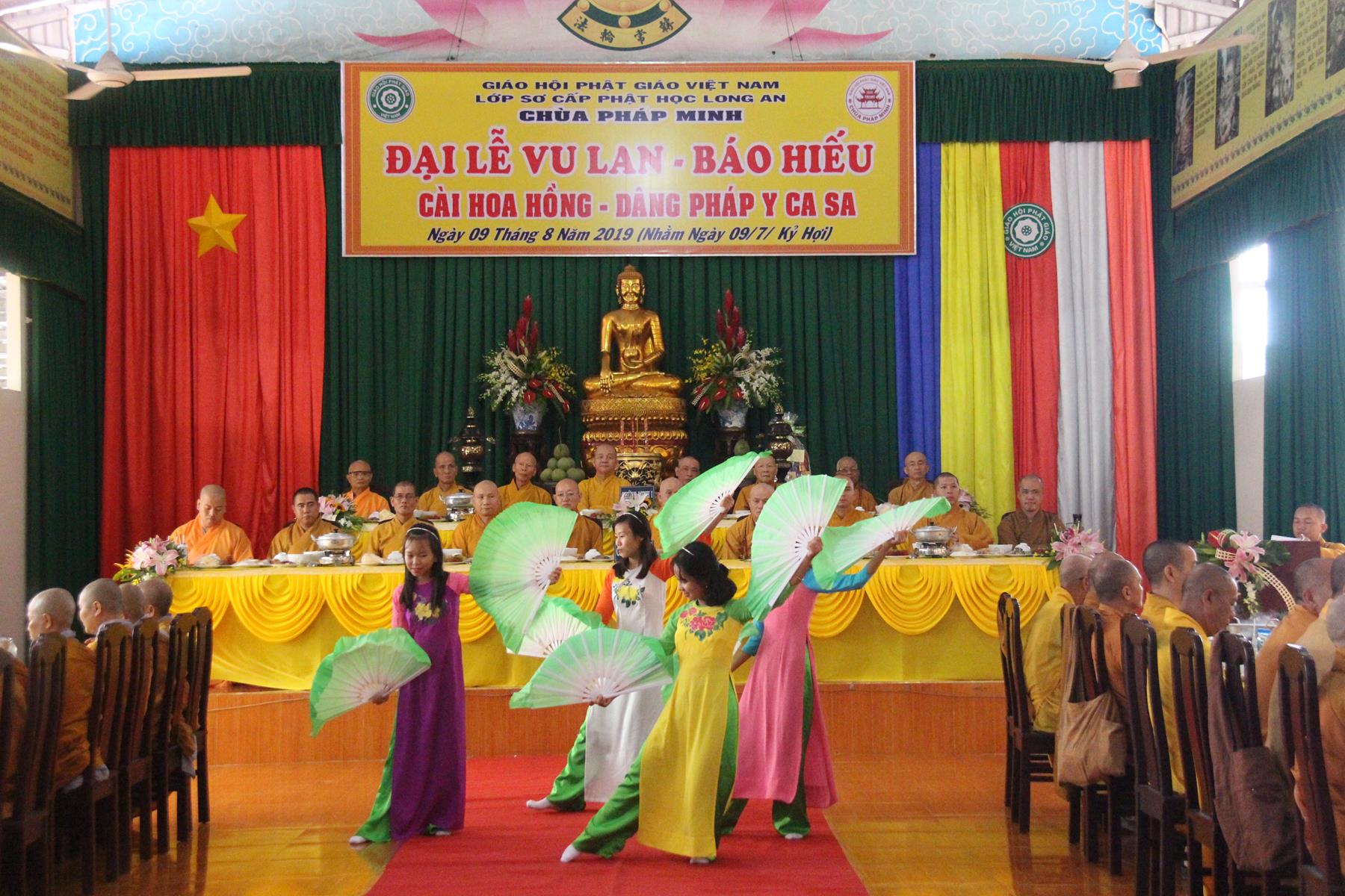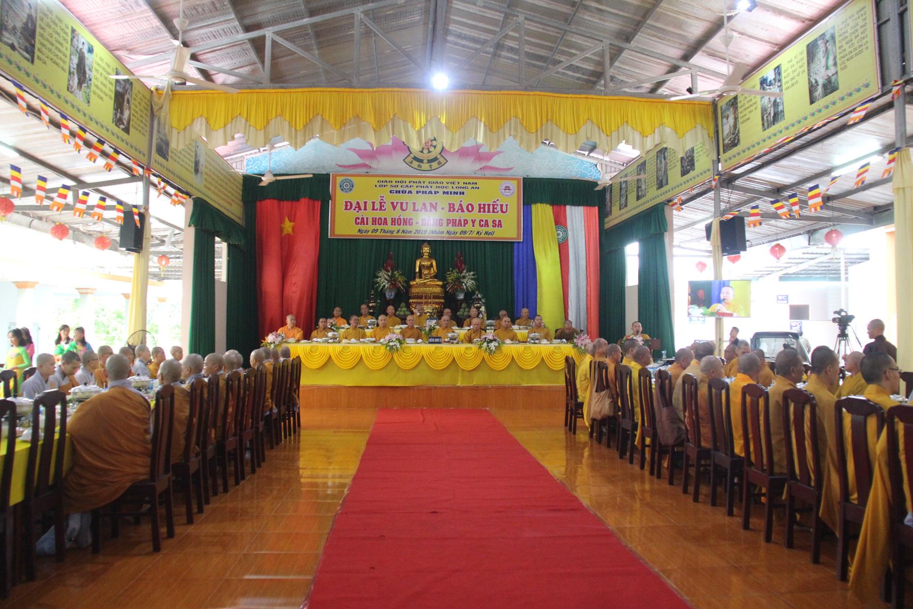 Sáng ngày, 09 tháng 8 năm 2019 (nhằm ngày 09/7/Kỷ Hợi) tại chùa Pháp Minh (văn phòng Lớp Sơ cấp Phật học Long An), ấp Giồng Lớn, xã Mỹ Hạnh Nam, huyện Đức Hòa, tỉnh Long An diễn ra lễ Tự tứ và Đại lễ Vu Lan Báo hiếu PL 2563 – DL 2019.