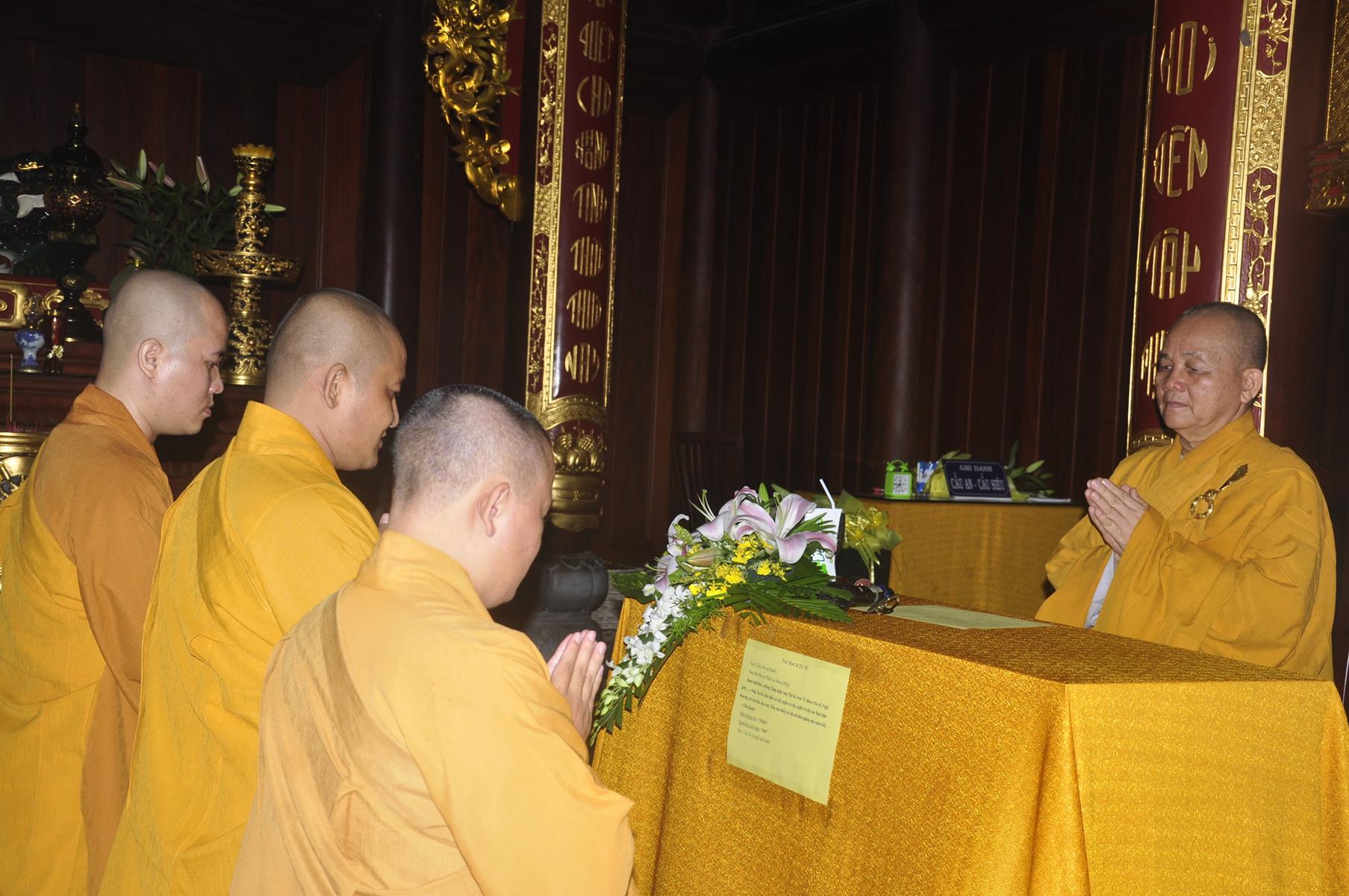 Vào lúc 09 giờ, Ban Tổ chức cung thỉnh Chư Tôn đức quang lâm chứng minh Đại lễ Vu lan-Báo hiếu, cài hoa hồng tưởng nhớ tứ trọng ân và dâng pháp y ca sa.