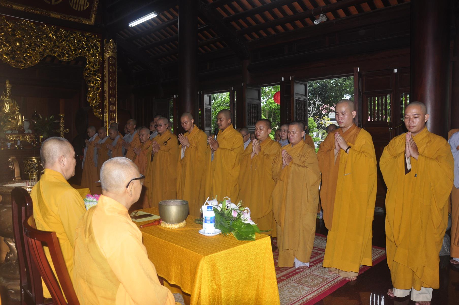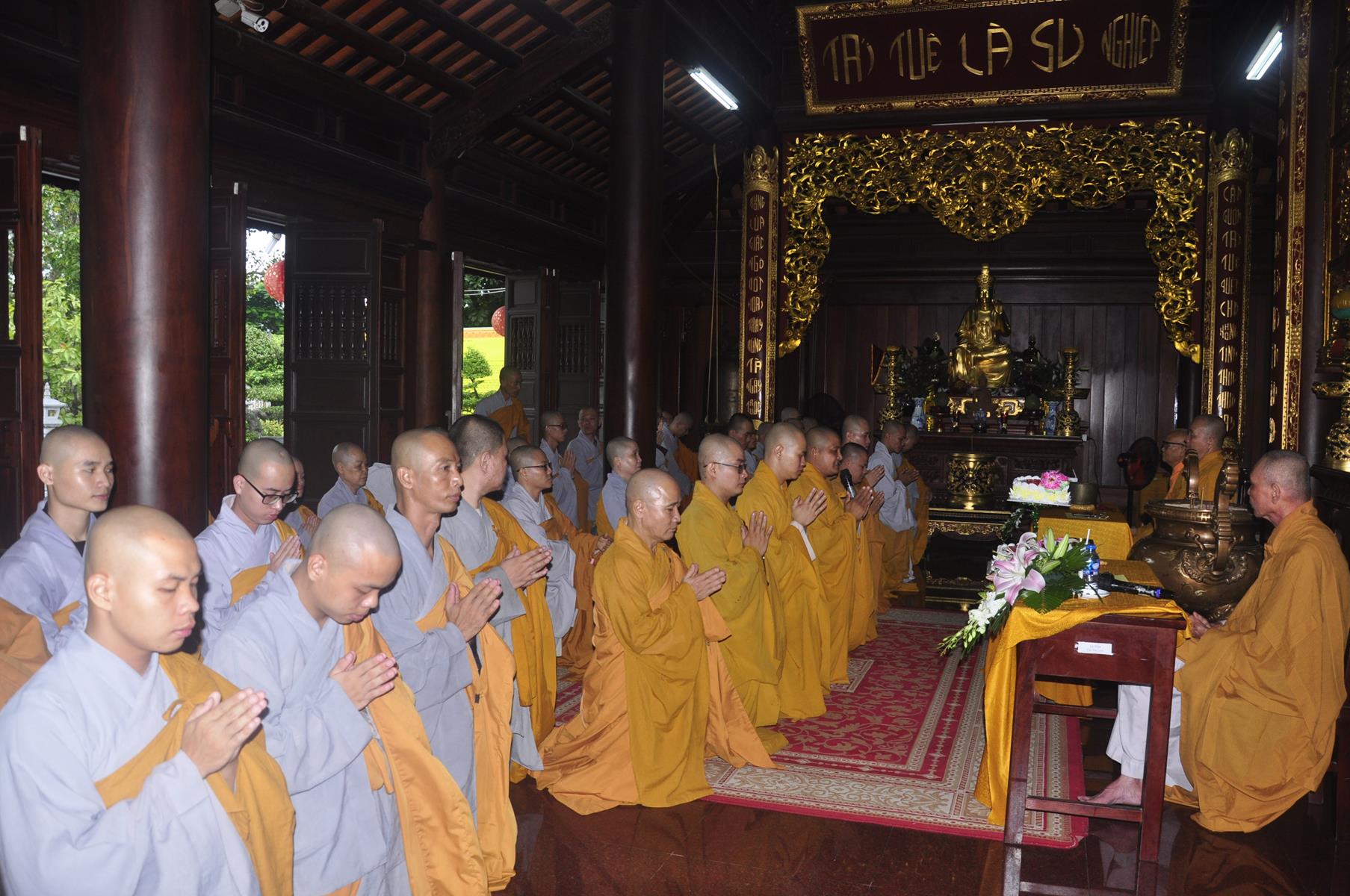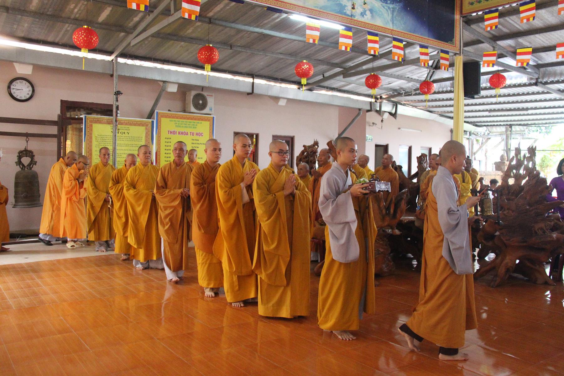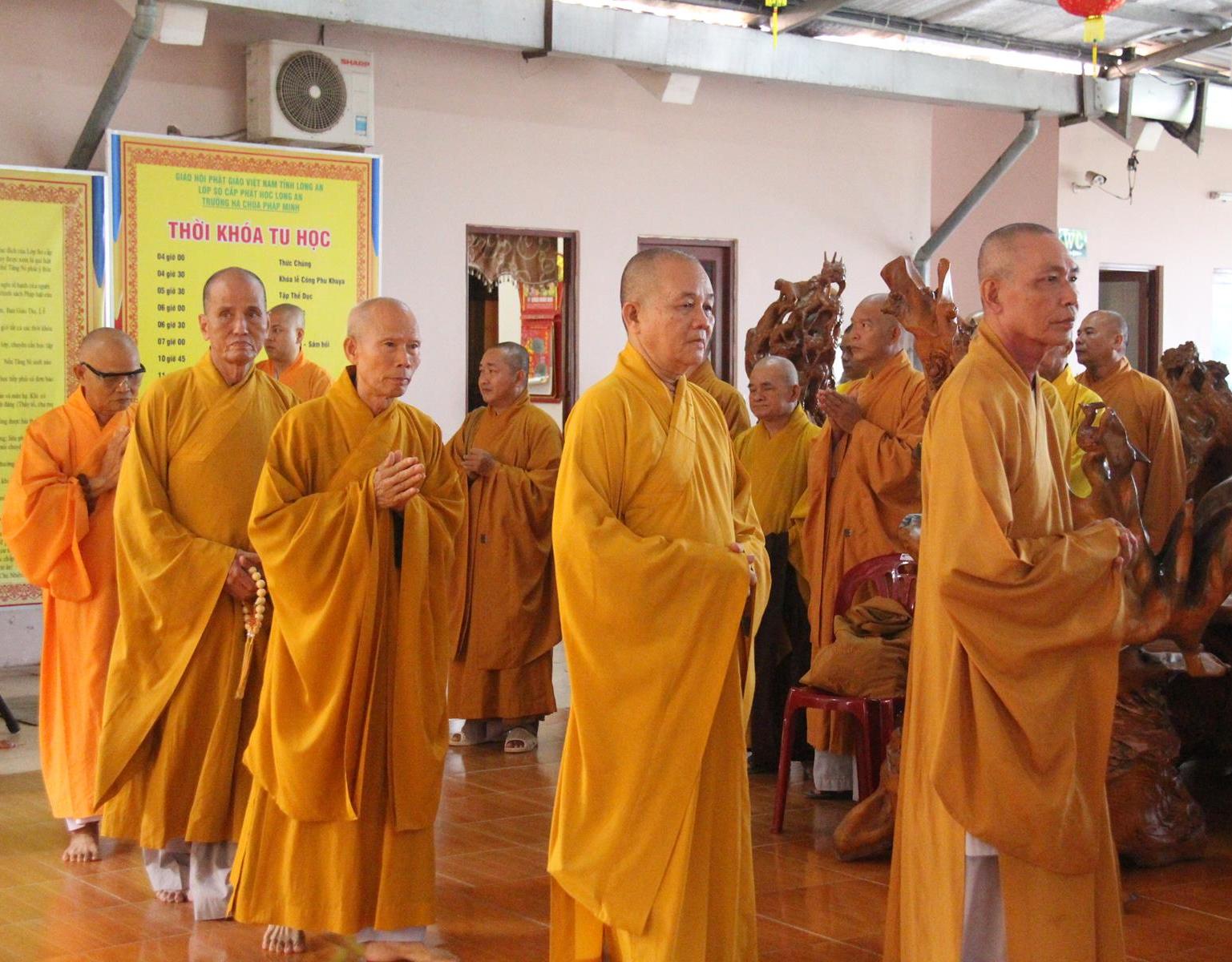 Vào lúc 07 giờ 30 phút, Ban Chức sự và Ban Chủ nhiệm Lớp Sơ cấp Phật học Long An cung thỉnh HT Thích Thiện Huệ: Chứng minh Ban Trị sự GHPGVN tỉnh Long An; HT Minh Thiện: Ủy viên HĐTS, Phó Trưởng ban Hoằng pháp TƯ, Trưởng ban Trị sự GHPGVN tỉnh Long An, Hiệu trưởng Trường Sơ Trung cấp Phật học Long An, Thiền chủ Trường hạ chùa Pháp Minh tác pháp tự tứ cho trú xứ trường hạ chùa Pháp Minh.