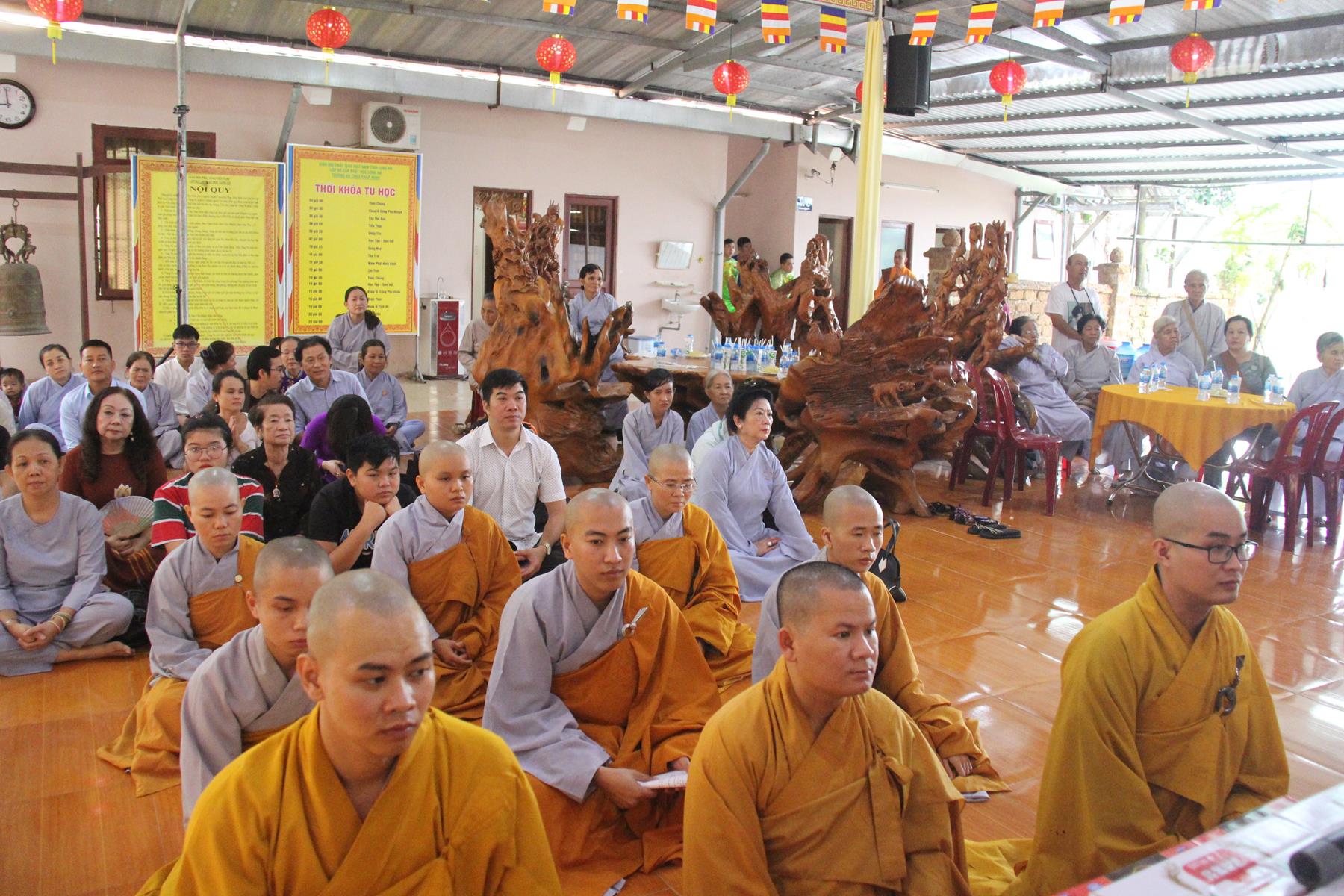 Đại lễ có sự hiện diện chứng minh: HT Thích Thiện Huệ-Chứng minh BTS GHPGVN tỉnh Long An; HT Thích Huệ Hồng-Chứng minh BTS GHPGVN tỉnh Long An; HT Minh Thiện-Ủy viên HĐTS, Phó Trưởng ban Hoằng pháp TƯ, Trưởng ban Trị sự GHPGVN tỉnh Long An; HT Thích Thiện Tâm-Phó Trưởng ban kiêm Trưởng ban Kiểm soát GHPGVN tỉnh Long An; HT Thích Thiện Phúc-Trưởng ban Trị sự GHPGVN liên huyện Đức Hòa-Đức Huệ; HT Thích Quảng Ý-Trưởng ban Trị sự GHPGVN liên huyện Tân Thạnh-Tx Kiến Tường, Vĩnh Hưng; TT Thích Lệ Tấn-Phó Trưởng ban Thường trực BTS GHPGVN liên huyện Tân Thạnh, Tx Kiến Tường, Vĩnh Hưng; TT Thích Minh Trung-Phó Trưởng ban Thường trực BTS GHPGVN liên huyện Đức Hòa-Đức Huệ, ĐĐ Thích Quảng Lâm-Ủy viên Hội đồng Trị sự, Chủ Nhiệm Lớp Sơ cấp Phật học Long An; ĐĐ Thích Lệ Duyên-Chánh Thư ký kiêm Trưởng ban Phật giáo Quốc tế GHPGVN tỉnh Long An, đồng Chủ Nhiệm Lớp Sơ cấp Phật học Long An; cùng Chư Tôn đức Tăng Ni BTS GHPGVN tỉnh Long An, các huyện thị, thành phố và Tăng Ni sinh Sơ cấp Phật học Long An.