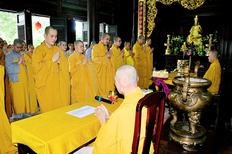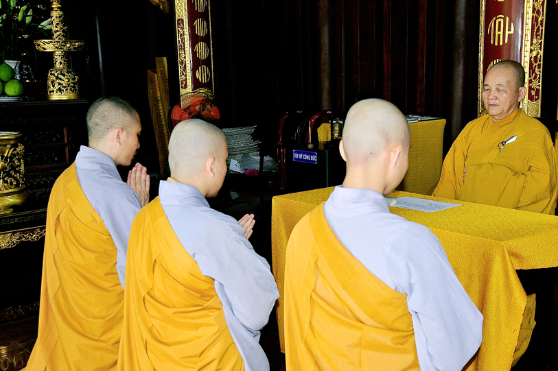 Lời đạo từ cao quý của Hòa thượng chứng minh, cùng với lời khuyên dạy ân cần tha thiết của Hòa thượng Hiệu trưởng, như liều thuốc hay giúp chữa lành nhiều căn bệnh si mê trầm luân của chúng con, là bài học hay giúp chúng con nhận chân được giá trị của cuộc sống, biết trân quý lý tưởng và con đường mình đang đi, gìn giữ giới luật, sống với nhau thuận hòa cho Phật pháp mãi mãi được xương minh. Hòa thượng Hiệu trưởng nhắc nhở các con hãy luôn ghi nhớ “Tỳ ni tạng trụ, Phật pháp thế thế thường tồn. Giới luật nghiêm trì tòng lầm thời thời hưng thạnh.” Các con hãy là những mầm non tương lai của đạo pháp thật mạnh khỏe đầy đủ giới hạnh, trọn vẹn trí đức để cùng Thầy chăm lo ngôi nhà chánh pháp.