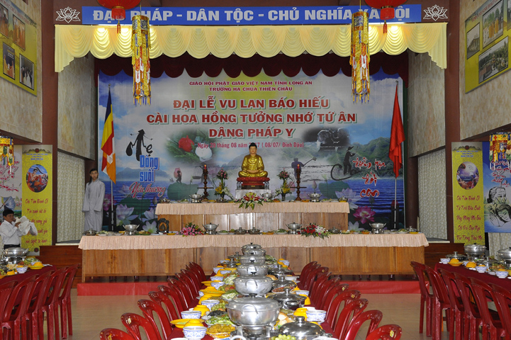 Tiếp nối truyền thống trên, ngày 29/08/2017 ( 08/07/ Đinh Dậu) Trường hạ chùa Thiên Châu – văn phòng Ban Trị sự- phường 03, thành phố Tân An, tỉnh Long An trang nghiêm tổ chức lễ Vu Lan Thắng Hội.