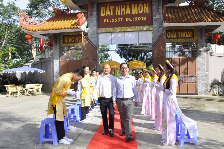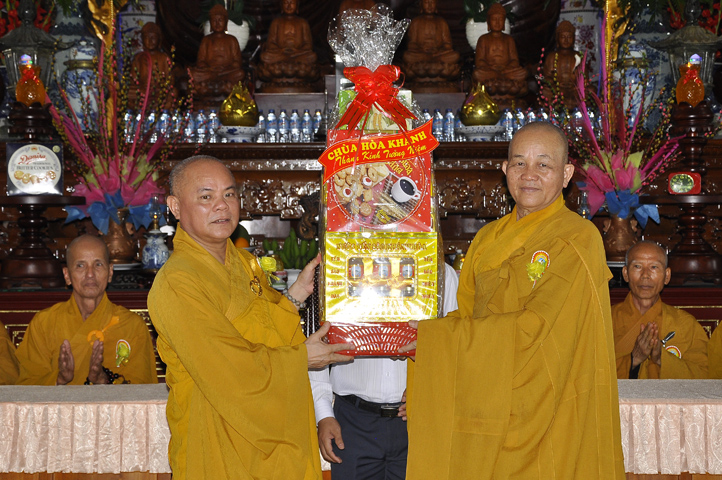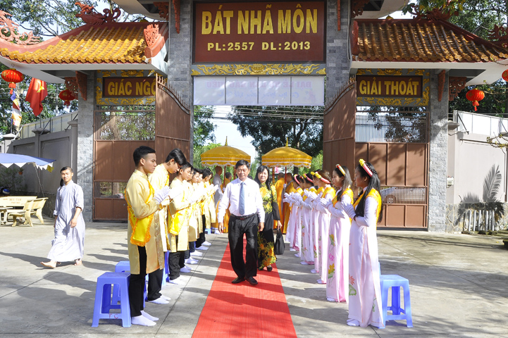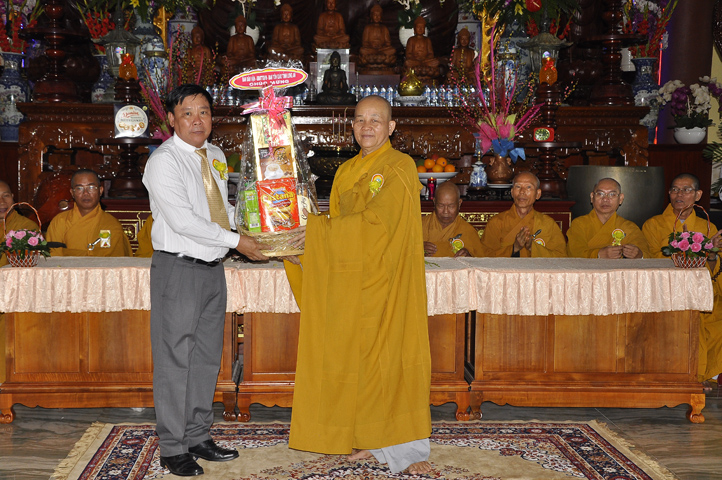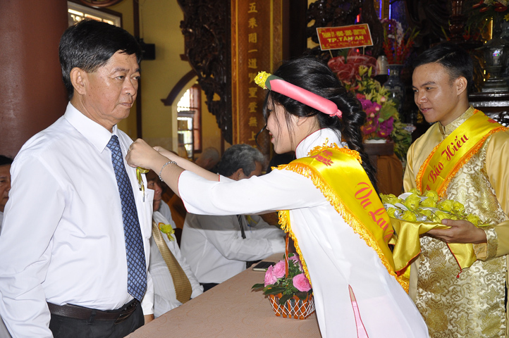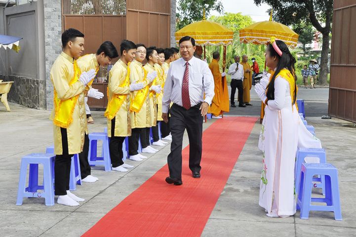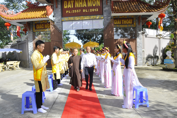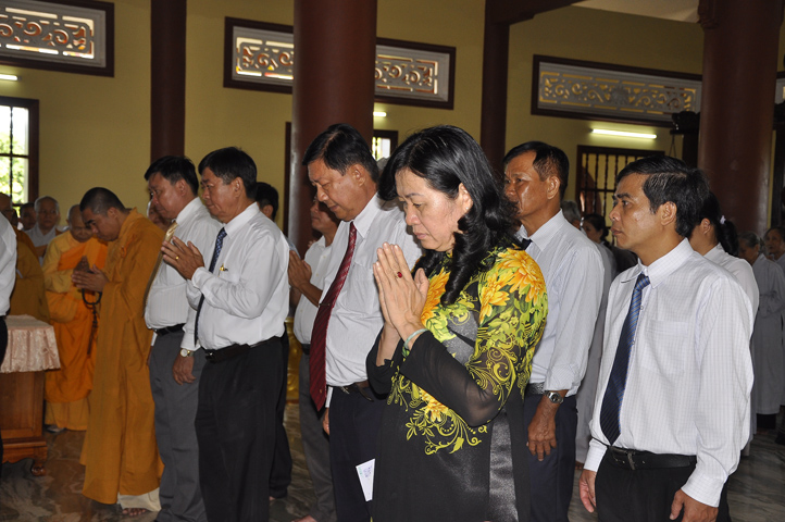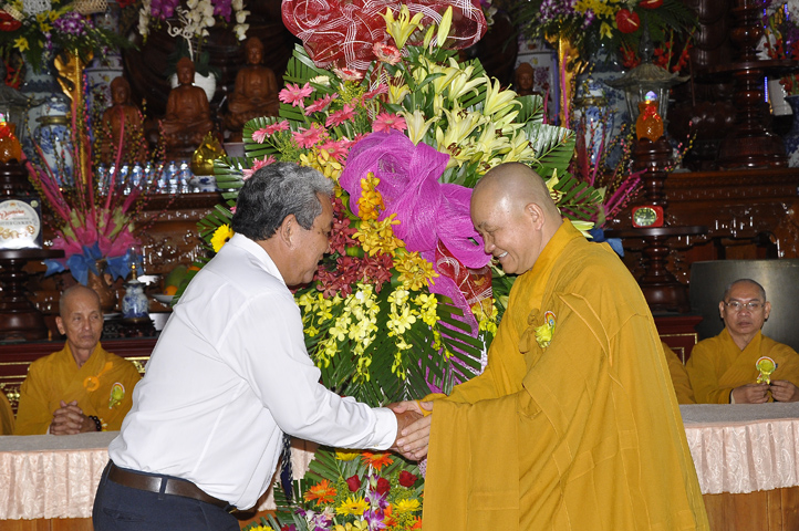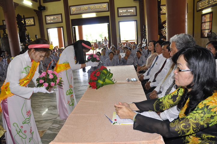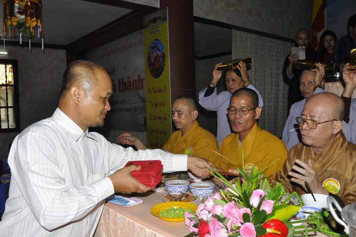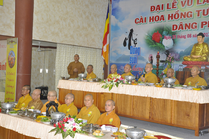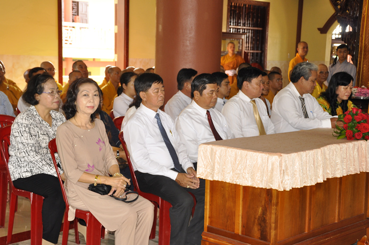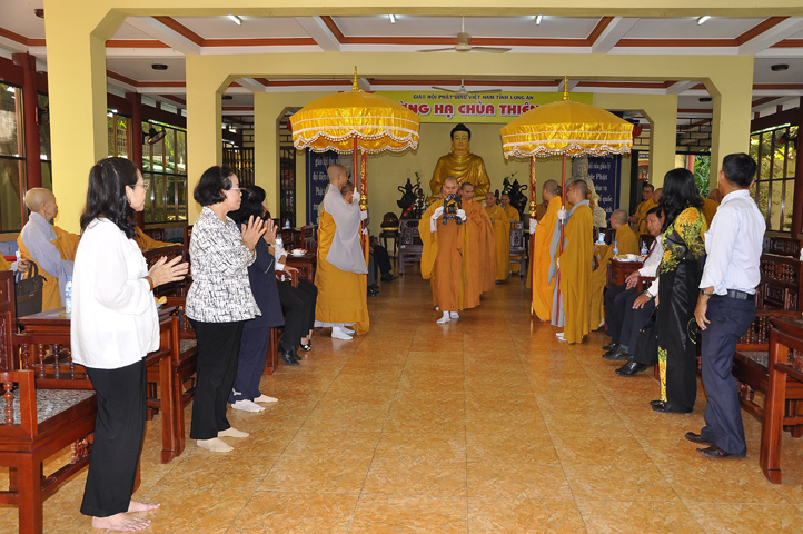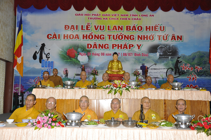 Buổi lễ được cung tiếp: Hoà thượng Tấn Đạt: Uỷ viên Thường trực Hội Đồng Trị sự Trung ương, Phó văn phòng hai Trung ương, Phó Trưởng ban Thường trực ban Hoằng pháp Trung ương Giáo hội Phật giáo Việt Nam; Hoà thượng Thích Minh Thiện: Uỷ viên trực Hội Đồng Trị sự Trung ương, Phó ban Hoằng pháp kiêm Trưởng giảng sư đoàn Trung ương giáo hội Phật giáo Việt Nam, Trưởng ban Trị sự Giáo hội Phật giáo Việt Nam tỉnh Long An, Trưởng ban tổ chức Đại lễ Vu Lan; Hoà thượng Thích Thiện Tâm: Phó ban Trị sự kiêm Trưởng ban kiểm soát Giáo hội Phật giáo Việt Nam tỉnh Long An; Hoà thượng Thích Huệ Hồng: Phó ban Trị sự Giáo hội Phật giáo Việt Nam tỉnh Long An; Hoà thượng Thích Quảng Ý: Trưởng ban Trị sự Phật giáo liên huyện Tân Thạnh, Kiến Tường, Vĩnh Hưng cùng chư tôn giáo phẩm trụ trì các tự viện trong tỉnh Long An.