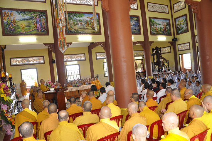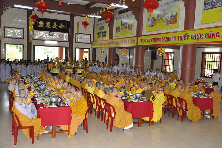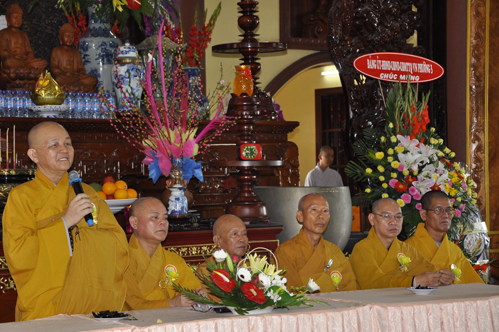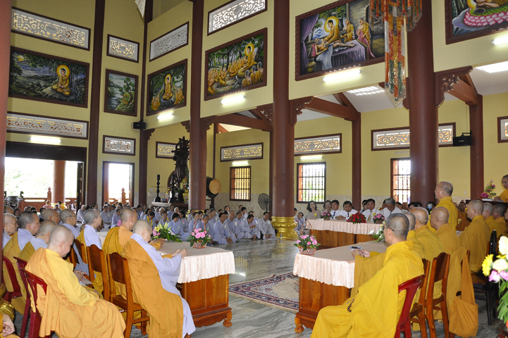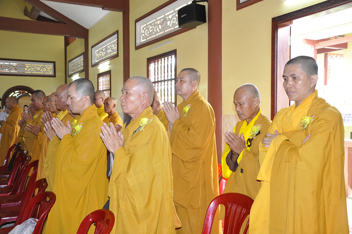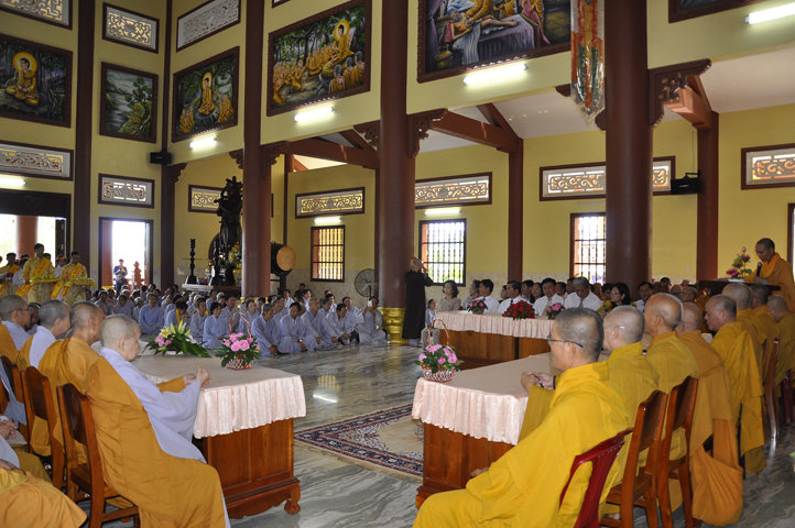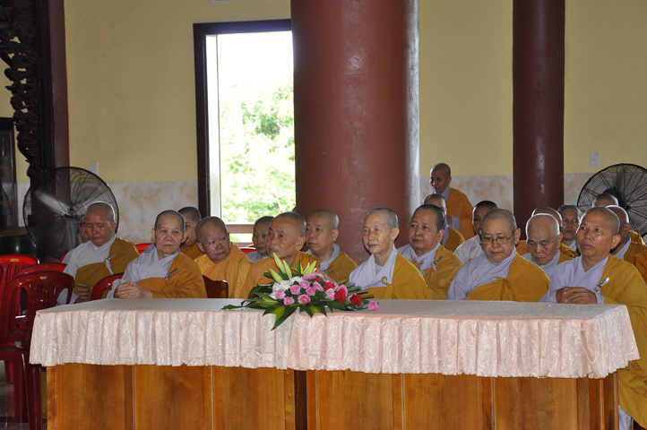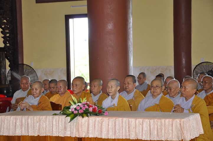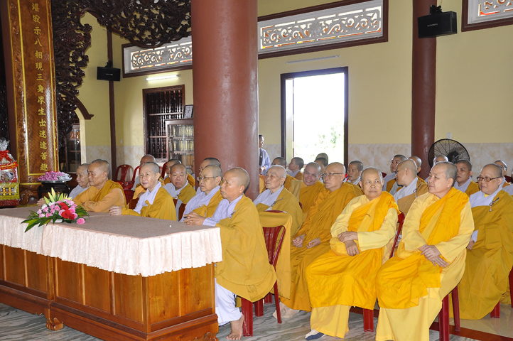 Trong buổi lễ, còn được Hoà thượng Thích Minh Thiện: Uỷ viên trực Hội Đồng Trị sự Trung ương, Phó ban Hoằng pháp kiêm Trưởng giảng sư đoàn Trung ương giáo hội Phật giáo Việt Nam, Trưởng ban Trị sự Giáo hội Phật giáo Việt Nam tỉnh Long An, Trưởng ban tổ chức Đại lễ Vu Lan đạo từ. Hoà thượng nhắc về truyền thống Giới luật và chiếc y ruộng phước để chúng sanh gieo trồng. Hoà thượng nhắc nhở hành giả an cư luôn trân trọng giữ gìn Tăng tướng, tu học theo Giới – Định – Tuệ để lợi lạc cho mình cho người, xứng đáng cho chúng sanh gieo trồng ruộng phước.