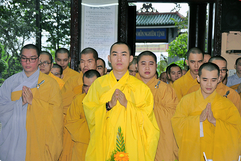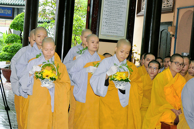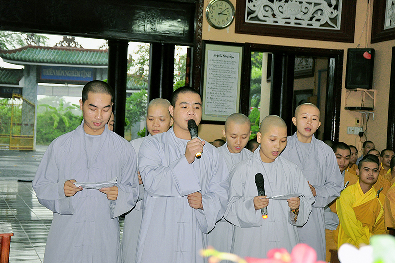 Vào lúc 14g, các Tăng Ni sinh tại hai điểm trường Thiên Khánh (chư Tăng) và Thiên Phước (chư Ni) trong sự hướng dẫn của TT. Hiệu phó Thích Lệ Trí, đã chuẩn bị chu đáo mọi thứ để cung nghinh chư Tôn đức Ban Giám hiệu và Quý Giáo thọ sư về tham dự.