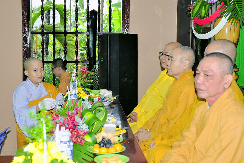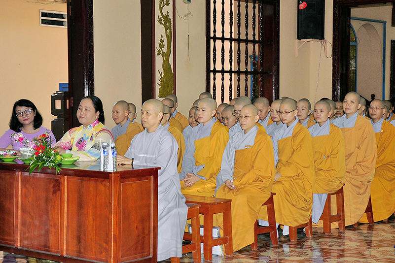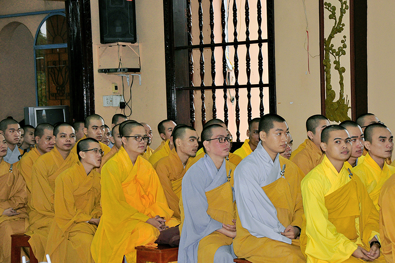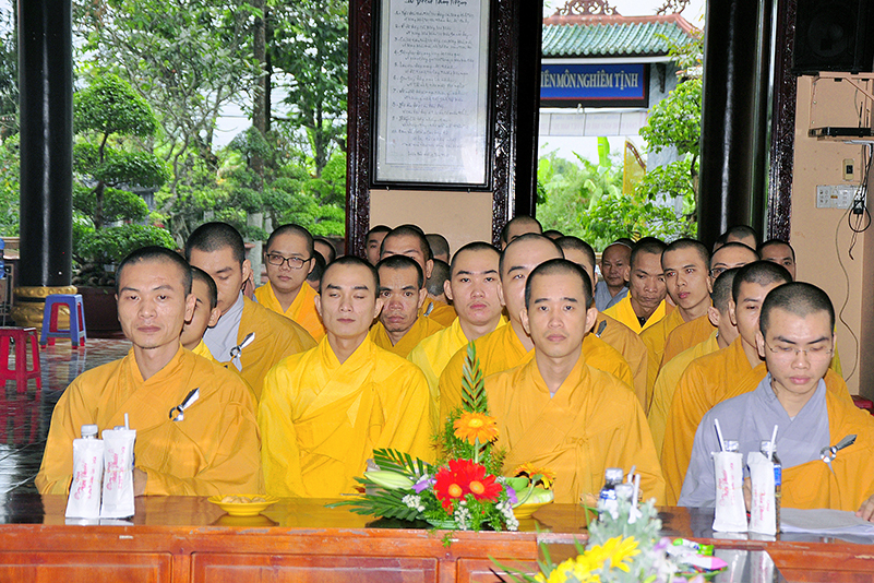 Thành phần chư Tôn đức hiện diện chứng minh và tham dự buổi lễ gồm có: HT. Thích Thiện Huệ – CMBTSGHPGVN tỉnh Long An, Cố vấn Trường Trung cấp Phật học Long An; HT. Thích Huệ Hồng – Chứng minh BTSGHPGVN tỉnh Long An, Cố vấn Trường Trung Cấp Phật học Long An; HT. Thích Minh Thiện – UVHĐ TS, Phó trưởng Ban Hoằng pháp TW, Hiệu trưởng Trường Trung cấp Phật học Long An; HT. Thích Viên Giác – Chủ tịch Hội cựu sinh viên Phật học TP.HCM, Giáo thọ Trường Trung cấp Phật học Long An; TT. Thích Phước Đạt – UVHĐTSTƯ, Giáo thọ Trường TCPH Long An;  TT. Thích Lệ Trí – Trưởng Ban Giáo dục Tăng Ni, Hiệu phó Trường TCPH Long An; ĐĐ. Thích Lệ Duyên – Chánh thư ký, Trưởng Ban Giáo dục Tỉnh Long An;  ĐĐ. Thích An Ngôn- Giáo thọ Trường TCPH Long An; chư Tôn đức Ni Cơ sở 2 Ni viện Thiên Phước: NT. Thích nữ Tuệ Đăng – Hiệu phó Trường TCPH Long An; NT. Thích nữ Tuệ Như- Giáo thọ; NS. Thích nữ Diệu Phước – Chánh văn phòng Giáo vụ; NS. Thích nữ Viên Liên – Giám thị; SC. Thích nữ Tắc Phú – Giáo thọ, và Quý giáo thọ sư, giảng viên các môn ngoại điển: Thầy Minh Thông, Thầy Hữu Phước, Thầy Minh Thông, Cô Mai Xuân Thưởng, Cô Giản Thị Thanh Phương v.v. cùng với sự hiện diện của gần 200 Tăng Ni sinh tại trường.