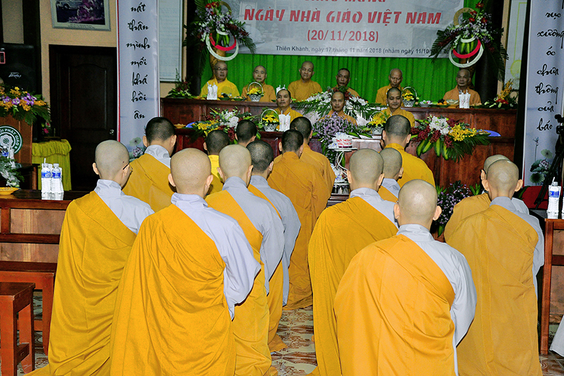 Mở đầu cho buổi lễ mừng ngày Hiến chương Nhà giáo 20/11, tiếng nhạc êm dịu hòa trong lời giới thiệu, dòng hoài niệm tri ân của học trò hướng về Quý Ân sư thấm đậm ân tình người hướng đạo. Các Tăng Ni sinh tại hai cơ sở đã phối hợp cùng nhau kính dâng lên Quý Giáo thọ những lẵng hoa, những bài hát ngọt ngào, ca ngợi tình Thầy trò ‘nhất tự vi sư, bán tự vi sư’.