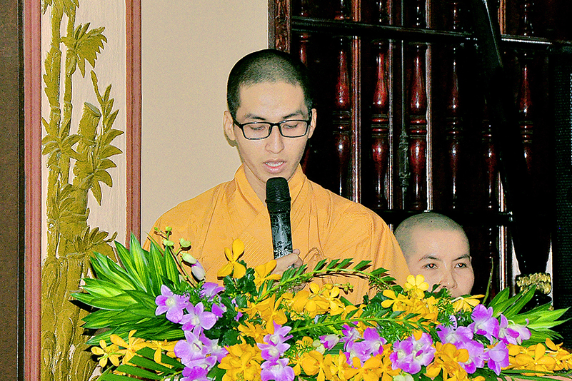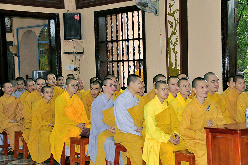 Cảm động trước tấm lòng của các Tăng Ni sinh khóa 6, HT. Thích Minh Thiện đã có những lời ân cần nhắn nhủ. Hòa thượng nhấn mạnh sự nghiệp giáo dục là quan trọng hàng đầu trong các Phật sự. Ngài cho rằng Tăng Ni cần phải chăm chỉ học hành, ngày xưa các bậc tiền nhân đã không ngại gian lao miệt mài khổ luyện. Sự học của người đời là để thành nhân chi mỹ, cống hiến cho xã hội. Sự học của Tăng Ni không chỉ dừng lại ở đó mà còn phải tiến xa hơn. Học là để rèn tâm luyện đức, để soi sáng tâm tư, thực nghiệm tu chứng trên con đường bồ-tát đạo Nhất thừa theo các tiêu chí “tam nhiếp, tứ hoằng, ngũ đức’. Hòa thượng đã ôn lại nhiều gương sáng tiêu biểu như Hồ Chủ tịch ‘học, học, học mãi’.