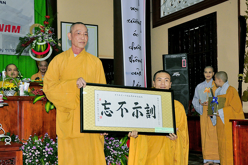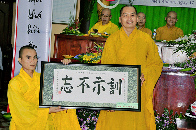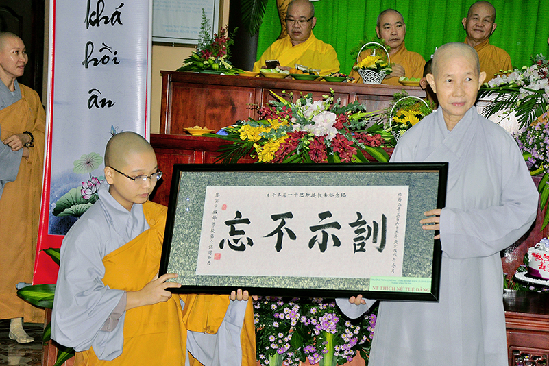 Kết thúc buổi lễ, Ban tổ chức đã thân tinh kính tăng đến các vị giáo thọ những  phần quà biểu trưng cho tấm lòng hậu thế, và chụp hình lưu niệm.