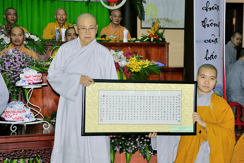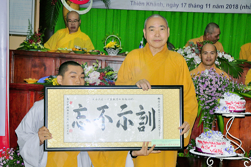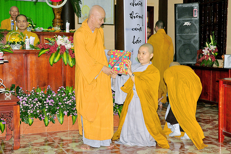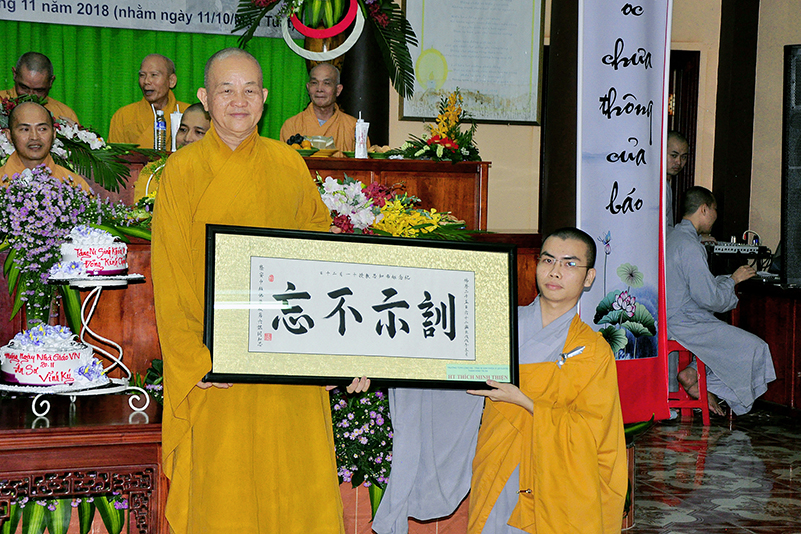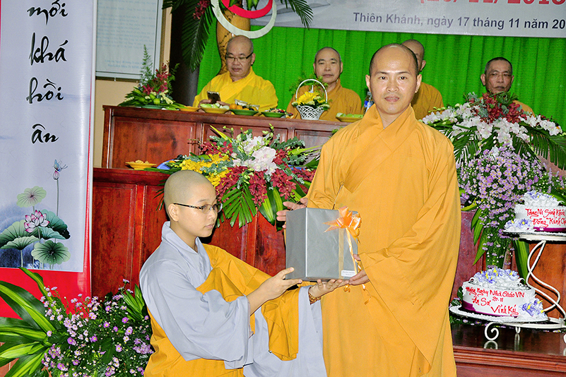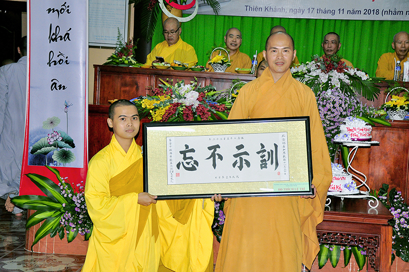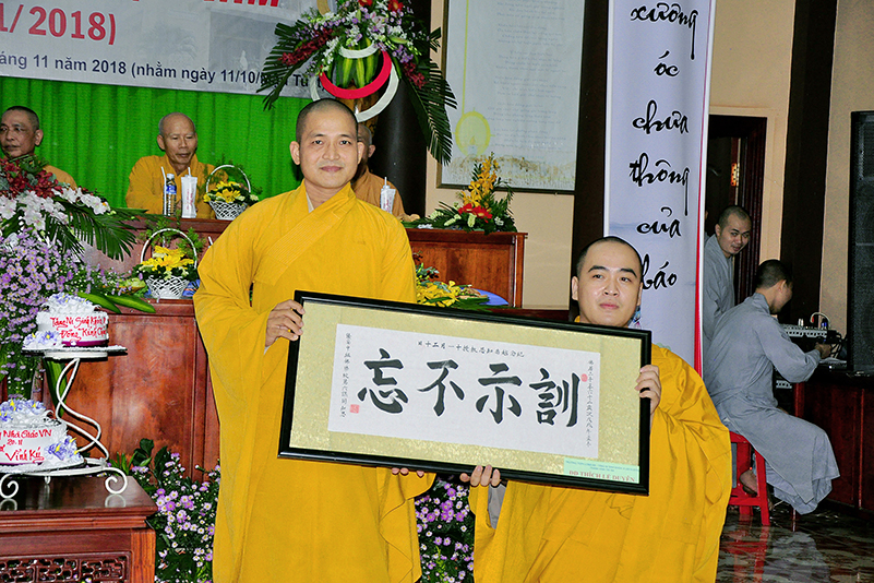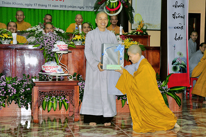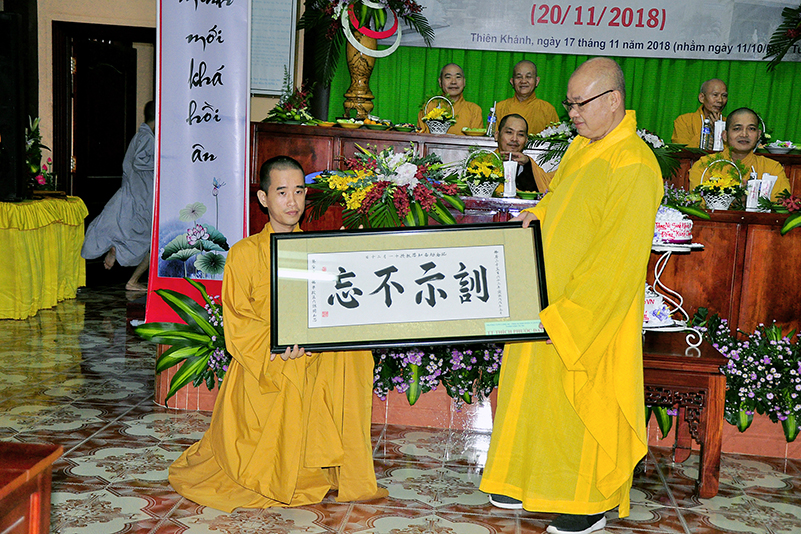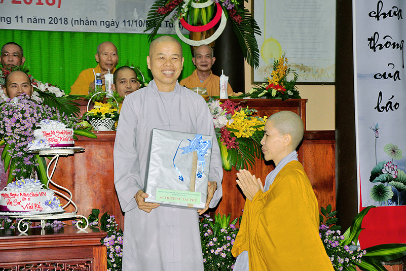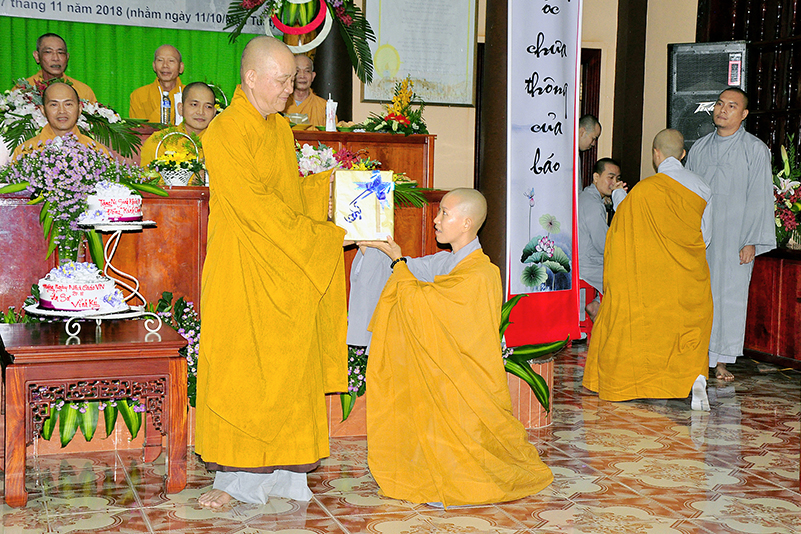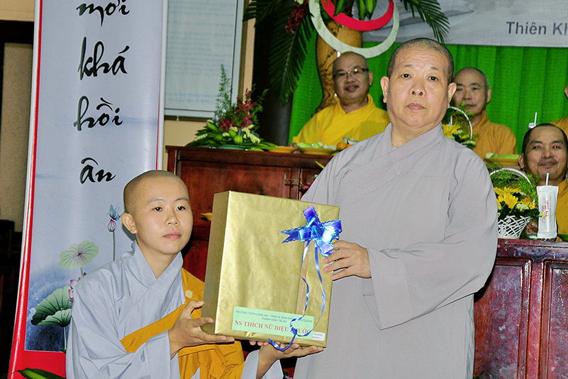 Buổi lễ kết thúc bằng những phần quà, lời chúc tụng từ các Tăng Ni sinh trân trọng gởi đên Thầy Cô. Ngày 20/11 2018, thật hạnh phúc biết bao khi nghe lời cảm khái ngọt ngào, ca ngợi nghề Nhà giáo. “Cao quý chi bằng nghề Nhà giáo, Vinh quang chi bằngsự nghiệp trồng người.”