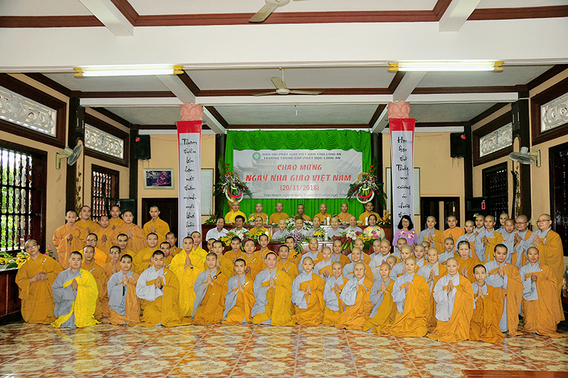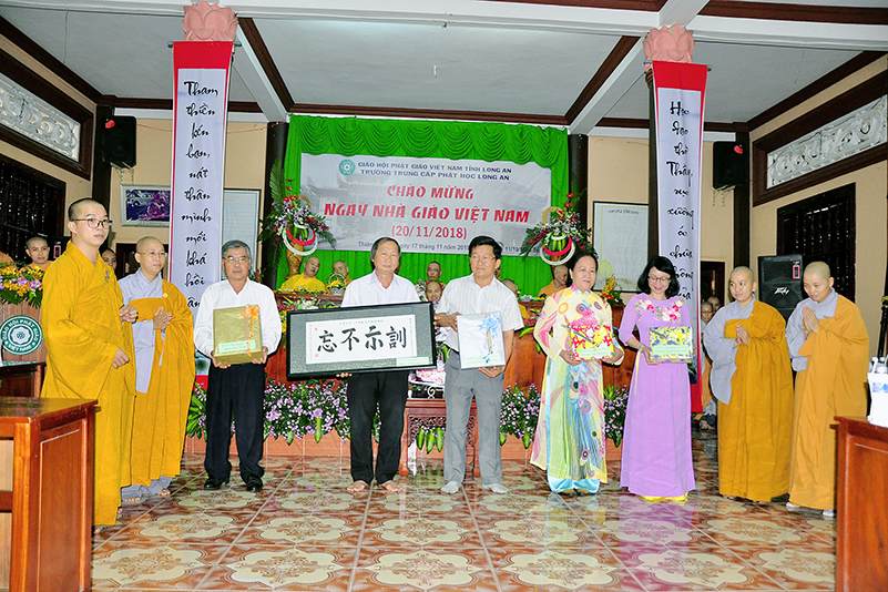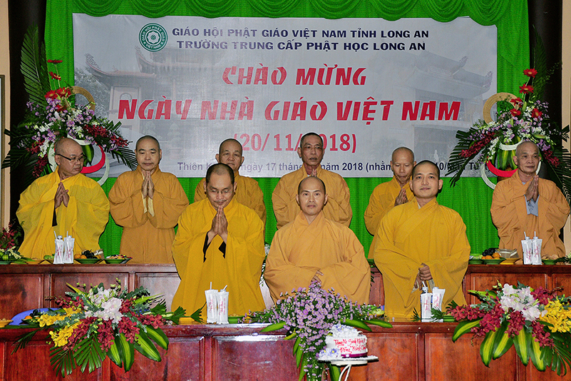 Thể hiện tinh thần ‘Tôn sư trọng đạo’, ‘Uống nước nhớ nguồn’, chiều ngày 17/11/2018, Ban Giám hiệu Trường Trung cấp Phật học Long An đã tổ chức ngày Hiến chương Nhà giáo tại chùa Thiên Khánh, vô cùng trang nghiêm, thấm đậm nghĩa thầy trò.