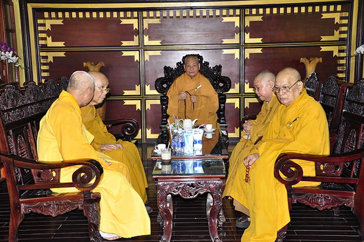 Đi cùng đoàn còn có HT. Thích Thiện Pháp, Phó Chủ tịch TT HĐTS, Trưởng ban Tăng sự T.Ư; HT. Thích Giác Toàn, HT. Thích Thiện Tánh đồng Phó Chủ tịch HĐTS; cùng chư tôn Giáo phẩm Ban Thường trực HĐTS; TT. Thích Thiện Thống, Phó Tổng Thư ký kiêm Chánh Văn phòng 2 TƯGH cùng chư tôn Giáo phẩm Phó Văn phòng 2 TƯGH; chư tôn đức đại diện các Ban, Viện Trung ương; chư tôn đức đại diện các BTS GHPGVN tỉnh Long An, Bình Dương và Tp. Hồ Chí Minh cũng tháp tùng đoàn đến dâng hương tưởng niệm và nhất tâm cầu nguyện Giác linh Cố Hoà thượng Tân Viên tịch cao đăng Thượng phẩm.