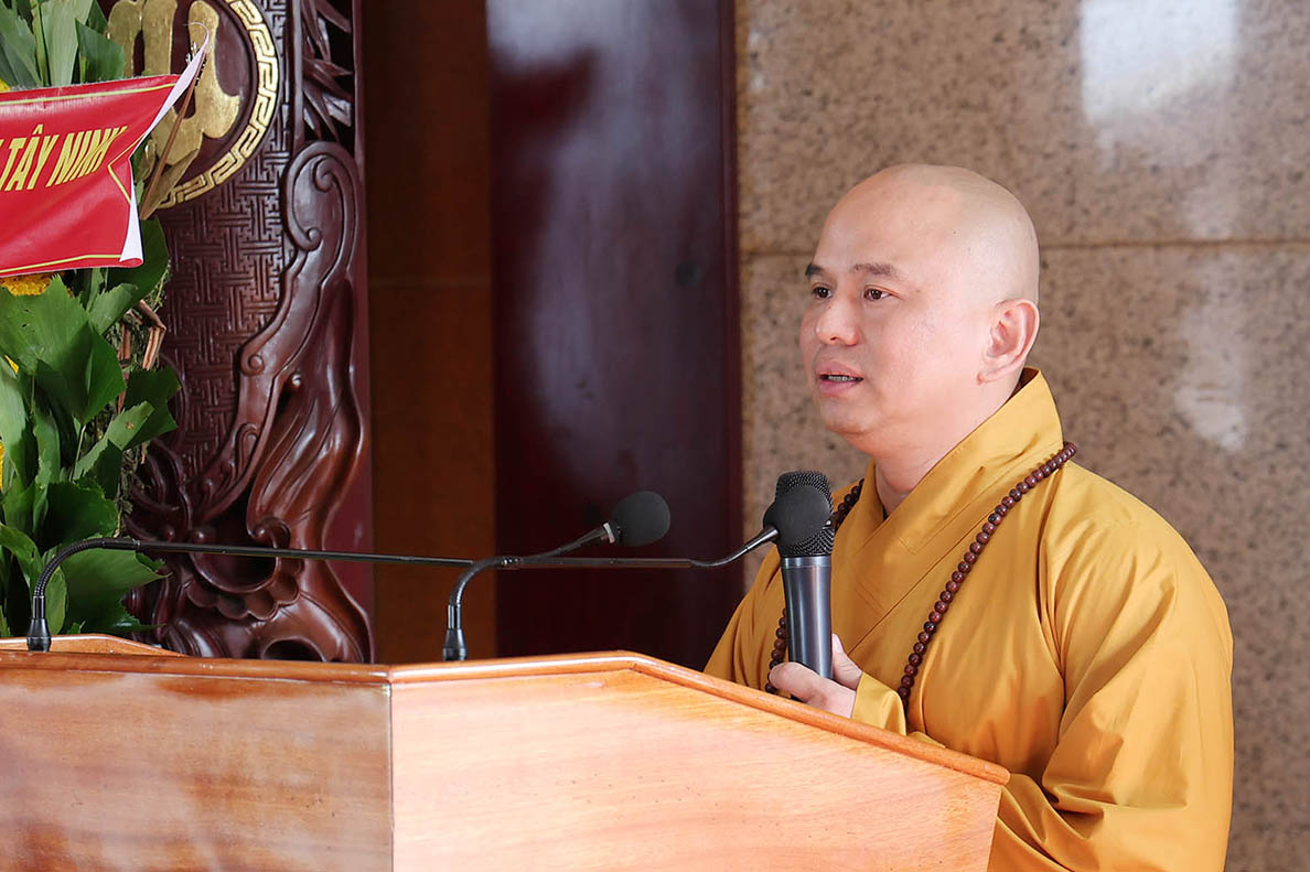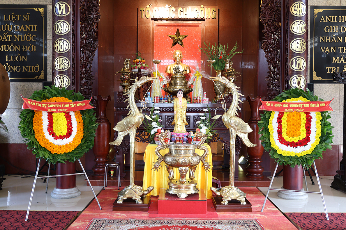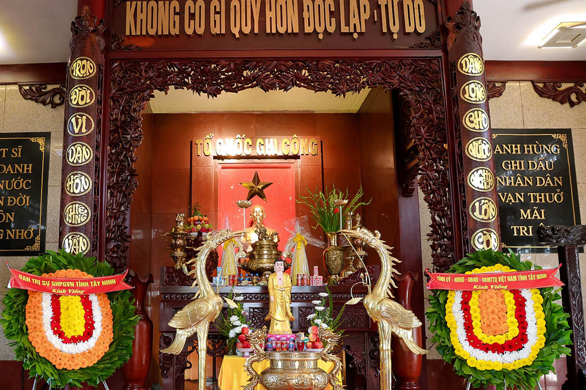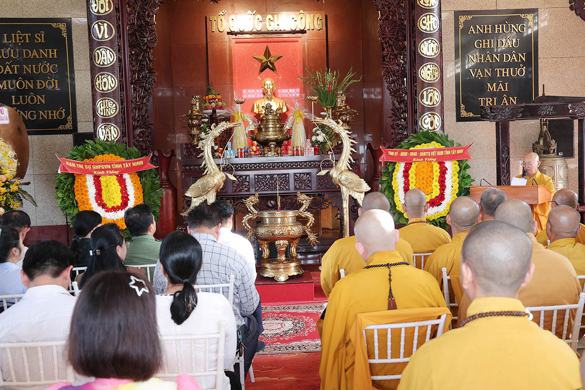 Tại lễ cầu siêu, Thượng toạ Thích Quảng Tâm, Uỷ viên Hội đồng trị sự, Trưởng ban Trị sự tỉnh nhấn mạnh: 78 năm trôi qua, Phật giáo Việt Nam luôn kề vai sát cánh, đồng hành cùng dân tộc trên mọi trận tuyến. Trong những cuộc kháng chiến chống thực dân Pháp và đế quốc Mỹ, hàng triệu người con ưu tú của quê hương đã hiến dâng xương máu của mình cho đất nước nở hoa độc lập, kết quả tự do. Trong đó không ít chư Tăng, chư Ni Phật giáo đã cởi áo cà sa khoác chiến bào, dâng trọn cuộc đời mình chio sự bình yên của đất nước, hạnh phúc của nhân dân. Chính vì thế, Lễ Tượng niệm các Anh hùng Liệt sĩ tại Nghĩa trang Liệt sĩ tỉnh, Ban Trị sự GHPGVN tỉnh Tây Ninh gởi đến Tăng Ni, Phật tử tỉnh nhà bức thông điệp về tinh thần tri ân và báo ân. Theo đó, chúng ta phải biết tri ân và báo ân bằng hành động cụ thể làm cho “lợi đạo ích đời”, góp phần cùng Đảng, chính quyền xây dựng quê hương đất nước ngày càng văn minh giàu đẹp.