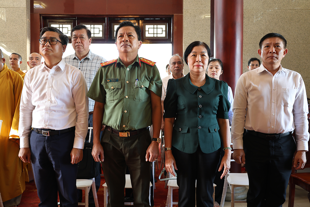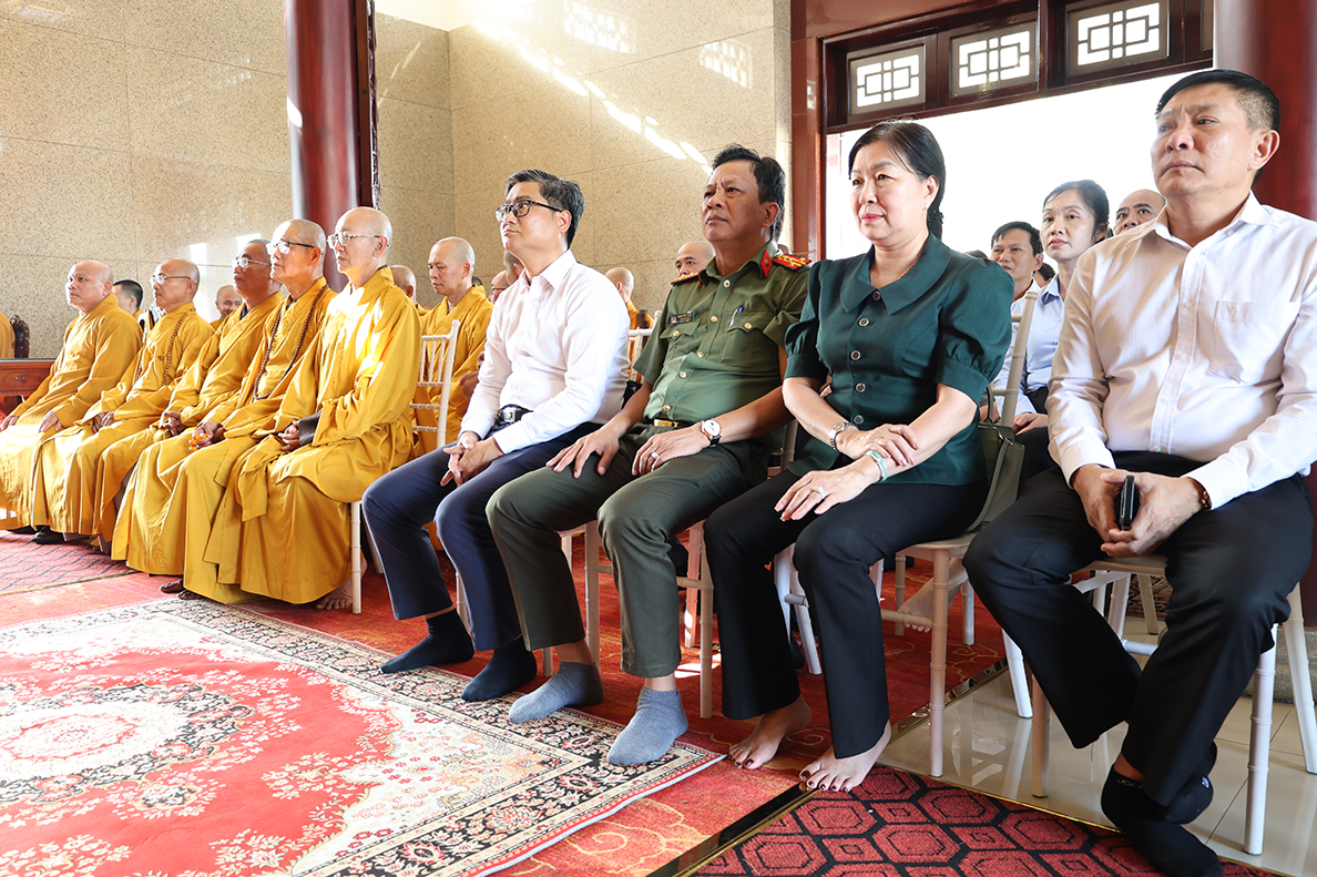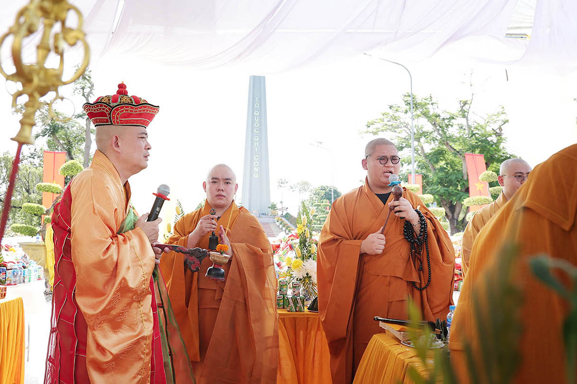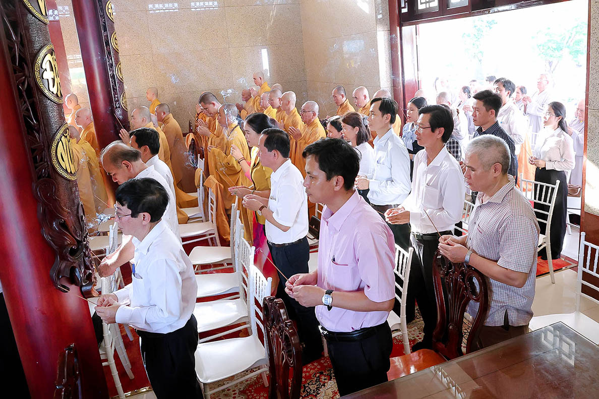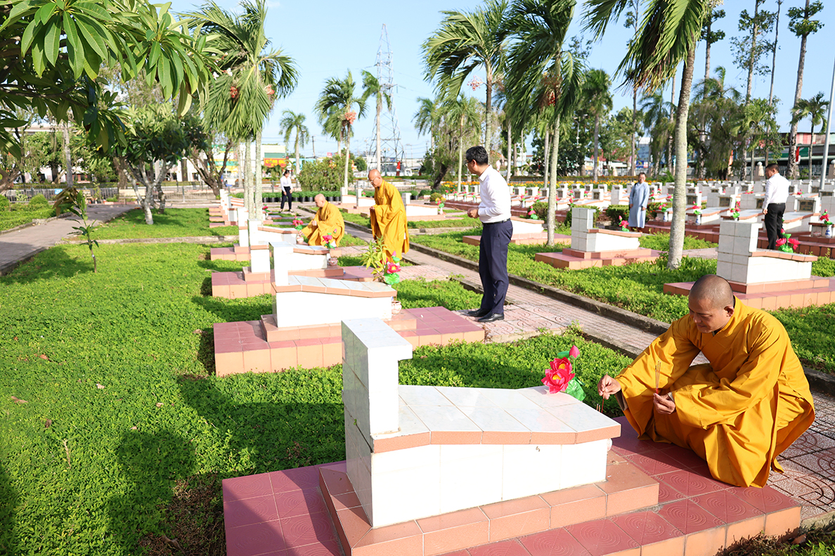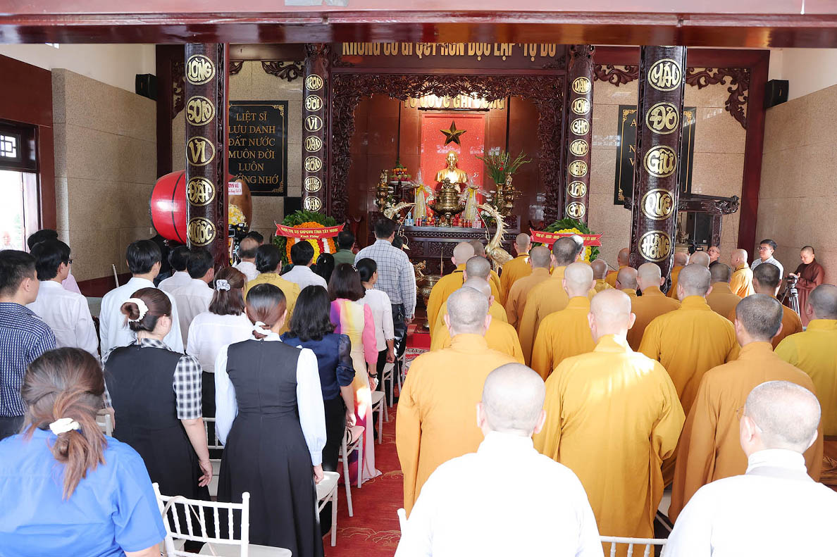 Trước đó, Chư tôn đức Ban Trị sự Giáo hội Phật giáo Việt Nam tỉnh cùng quý chư tôn đức trong Ban kinh sư, tăng ni, phật tử đã thực hiện khóa lễ tụng kinh, cúng thí cầu siêu cho anh linh các anh hùng liệt sĩ tại Nghĩa trang Liệt sĩ tỉnh.