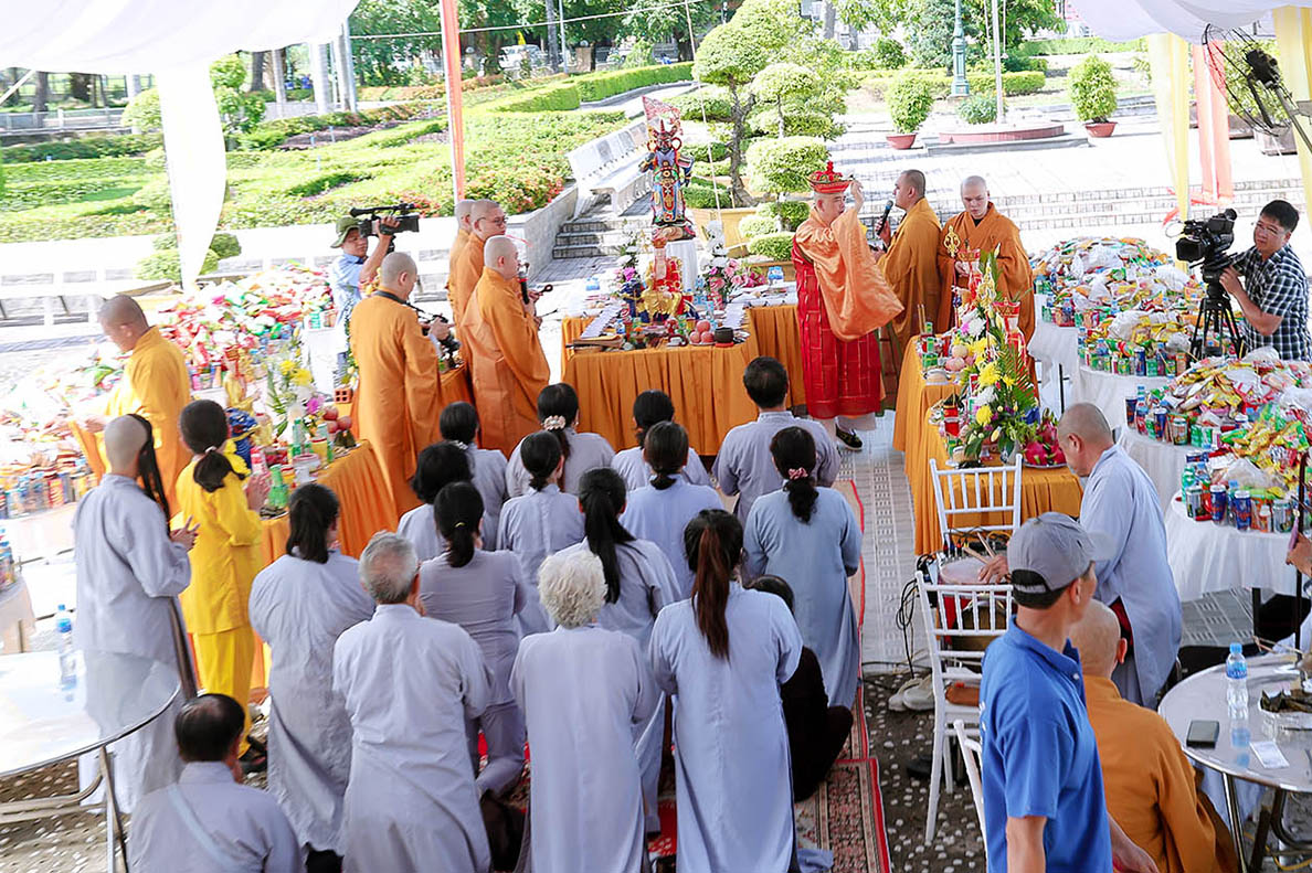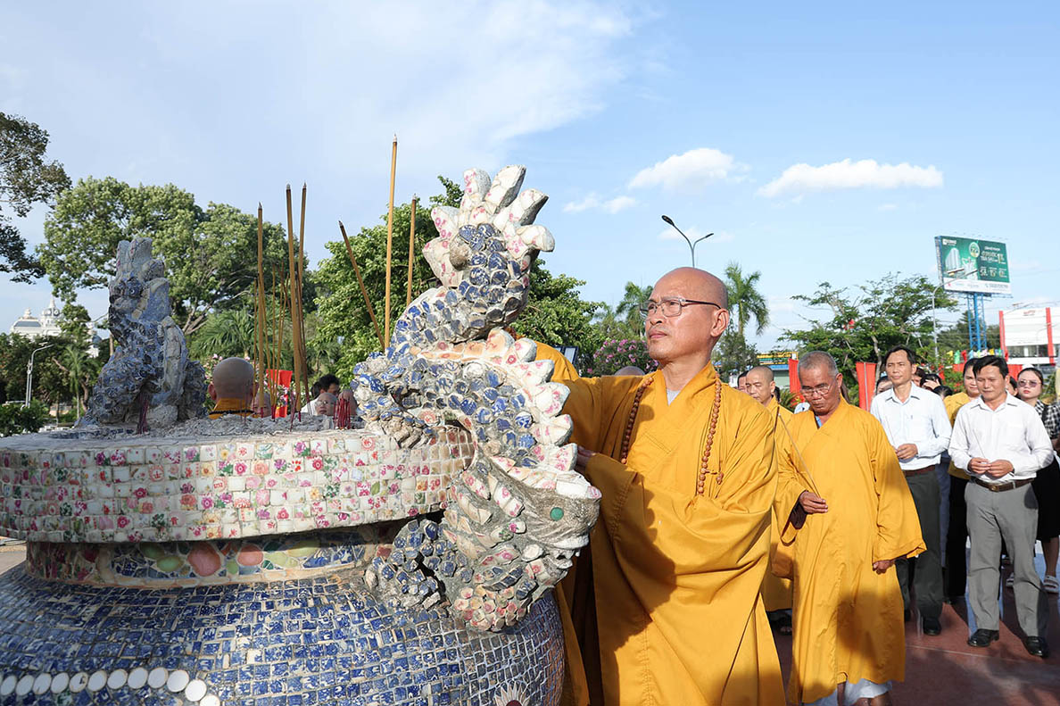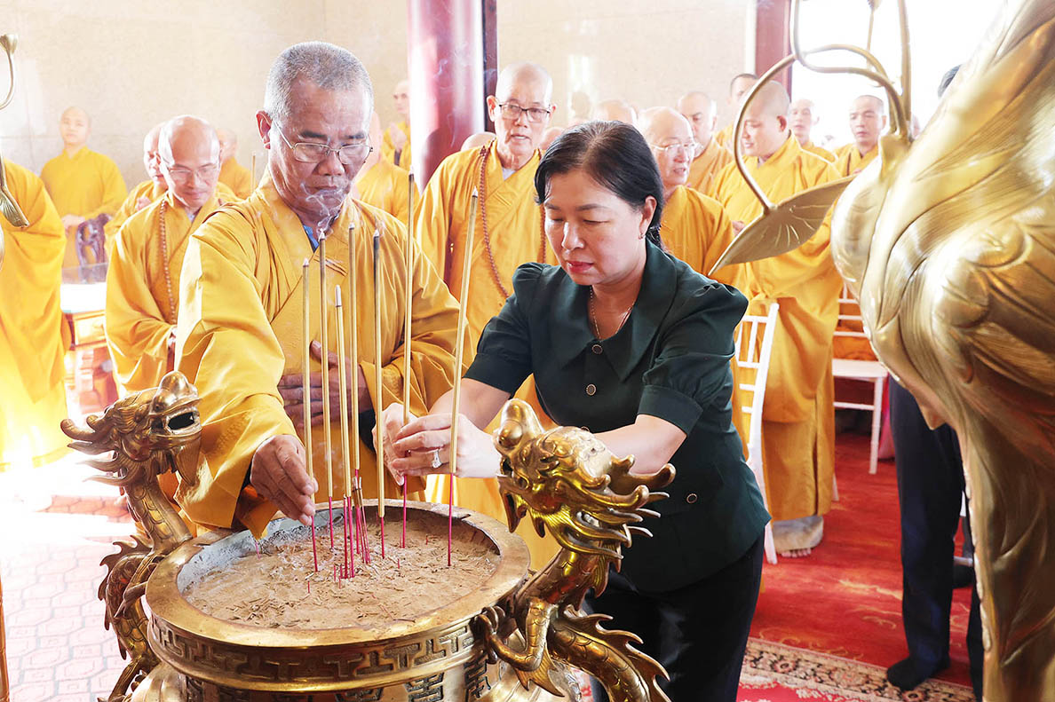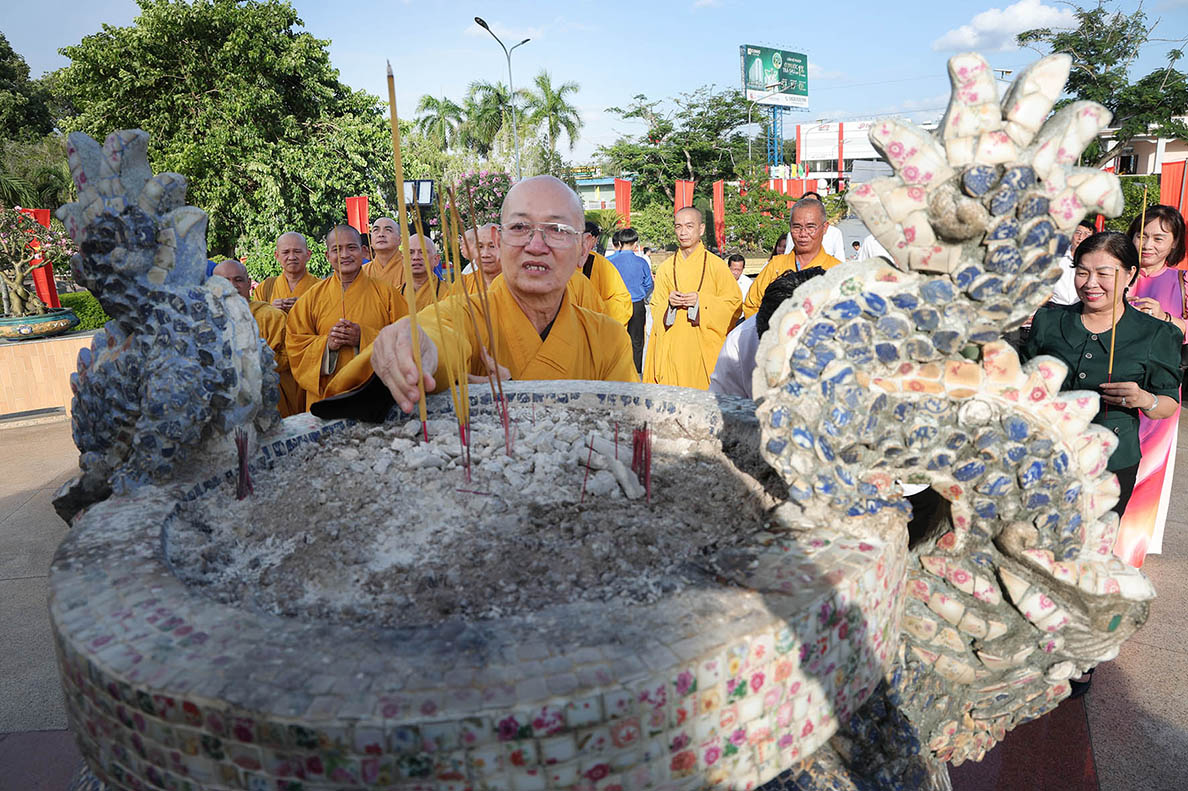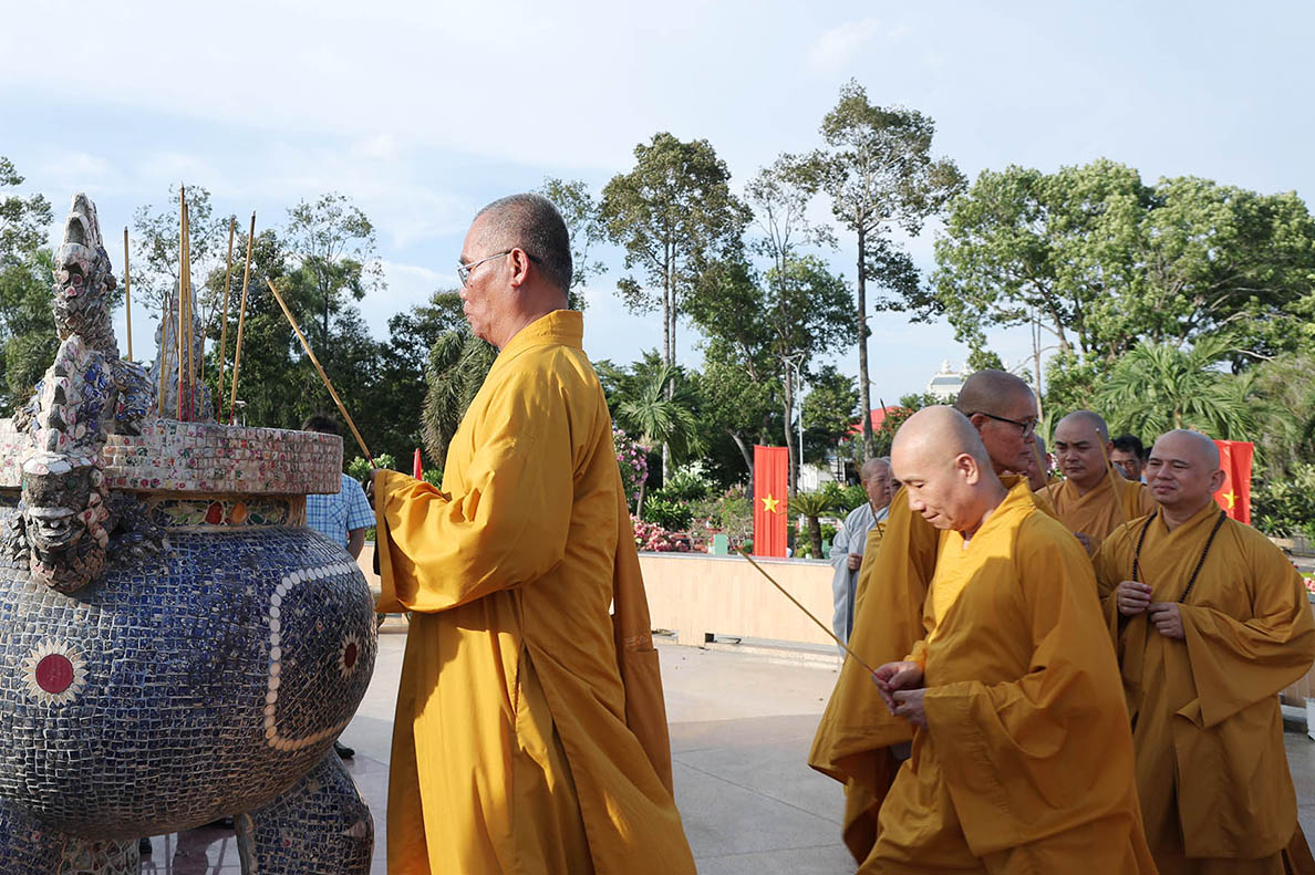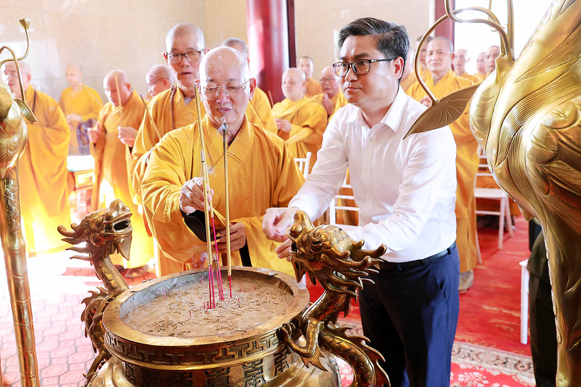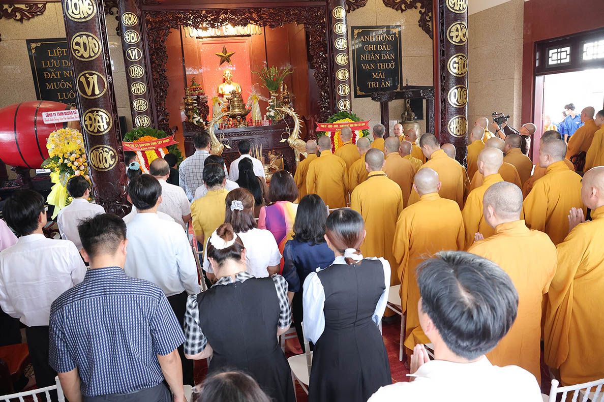 Trước đó, Chư tôn đức Ban Trị sự Giáo hội Phật giáo Việt Nam tỉnh cùng quý chư tôn đức trong Ban kinh sư, tăng ni, phật tử đã thực hiện khóa lễ tụng kinh, cúng thí cầu siêu cho anh linh các anh hùng liệt sĩ tại Nghĩa trang Liệt sĩ tỉnh.