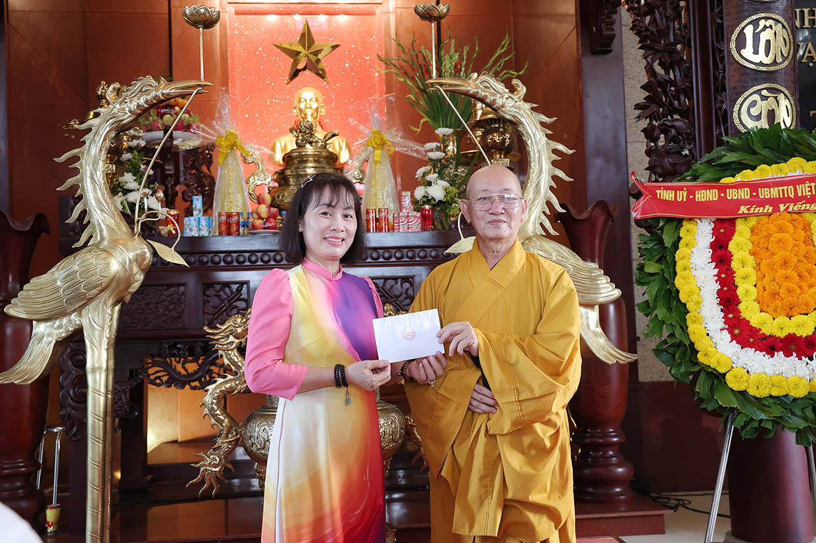 Chứng minh và tham dự buổi lễ có Thượng toạ Thích Quảng Tâm – Uỷ viên Hội đồng Trị sự Trung ương Giáo hội Phật giáo Việt Nam – Trưởng ban Trị sự giáo hội Phật giáo Việt Nam tỉnh Tây Ninh; Đại đức Thích Thiện Thức- Ủy viên HĐTSTƯ, Phó trưởng Ban Thường trực BTS GHPGVN tỉnh Tây Ninh; TT Thích Minh Thọ- Ủy viên HĐTSTƯ,Phó Ban Trị sự, Trưởng ban Pháp chế BTS GHPGVN tỉnh; TT Thích Lệ Trí – Ủy viên HĐTSTƯ, Phó Ban Trị sự, Trưởng ban Giáo dục Phật giáo BTS GHPGVN tỉnh; TT Thích Đức Hoàng- Phó Ban Trị sự GHPGVN tỉnh; Đại đức Thích Lệ Duyên- Phó Ban Trị sự kiêm Chánh Thư ký BTS GHPGVN tỉnh; Đại đức Thích Lệ Ngôn- Phó ban kiêm Trưởng ban Hoằng pháp BTS GHPGVN tỉnh; Đại đức Thích Huệ Chơn- Phó Ban Trị sự GHPGVN tỉnh; cùng quý Chư tôn đức tăng Ni trong Ban thường trực ban trị sự tỉnh, Chư tôn đức trụ trì các tự viện trong phường Long An đồng về tham dự.