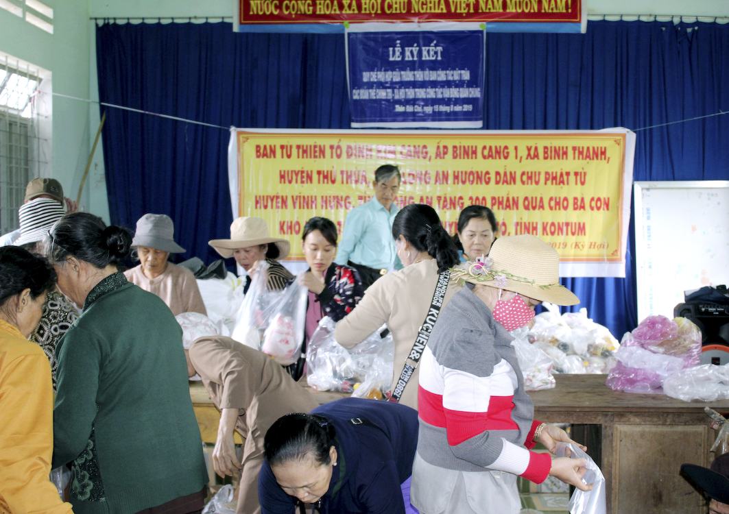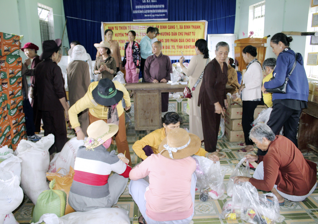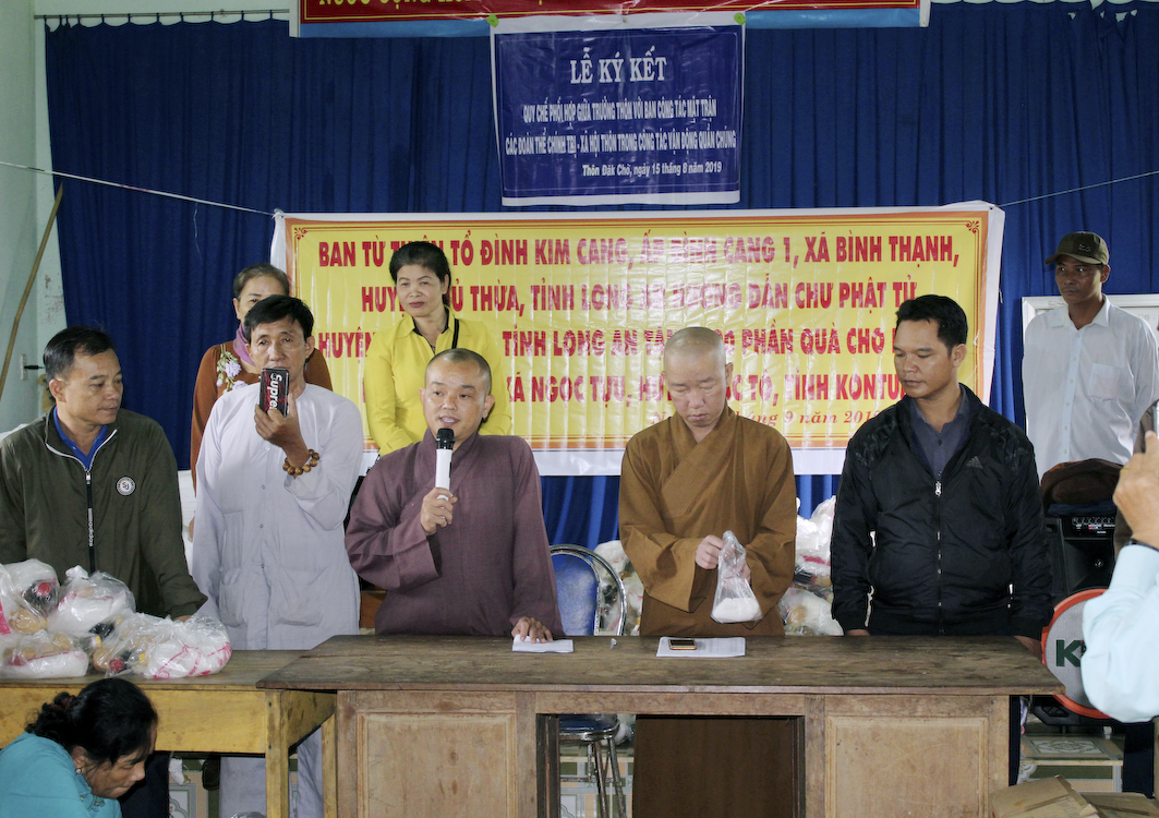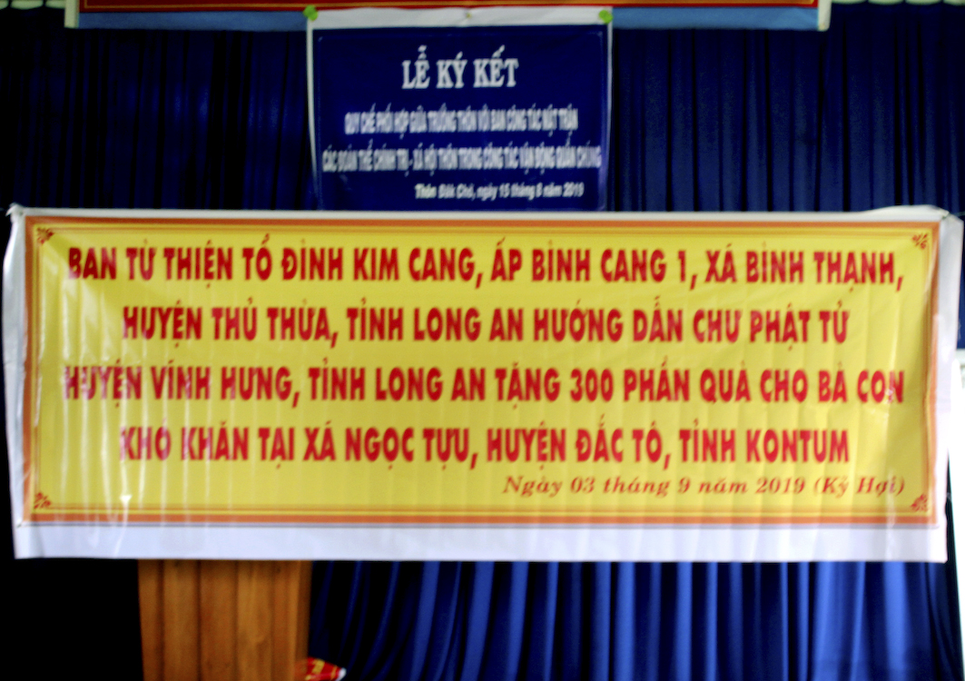 Nhân ngày Lễ Quốc Khánh 2 tháng 9/ 2019, chuẩn bị đón mừng Tết Trung Thu âm lịch Kỷ Hợi, phái đoàn Ban Từ thiện Tổ đình Kim Cang do Đại đức Thích An Phúc hướng dẫn đã cùng với các Phật tử tại Vĩnh Hưng – Phật giáo Hòa Hảo thuộc huyện Vĩnh Hưng tỉnh Long An đến xã Ngọc Tụ, huyện Đắk Tô, tỉnh Kon tum để phát 300 phần cho bà con nghèo, và tặng tập vở, bánh Trung Thu cho trẻ em. Tổng trị giá chuyến từ thiện là 70 triệu đồng (bảy mươi triệu đồng).