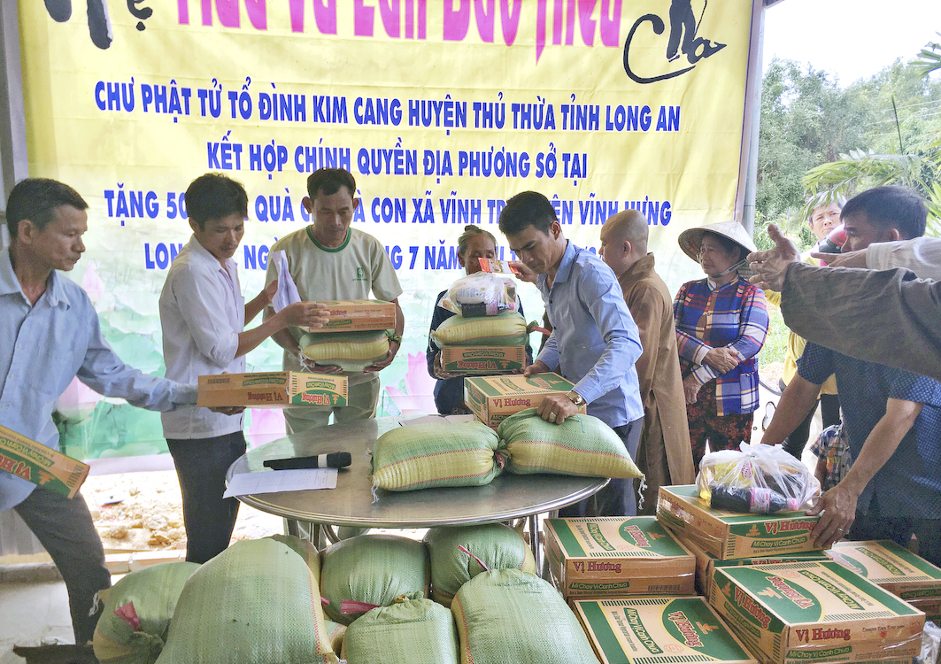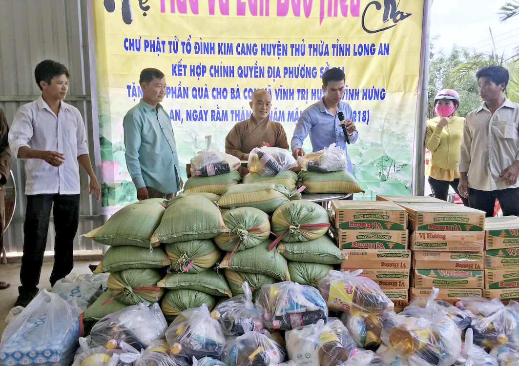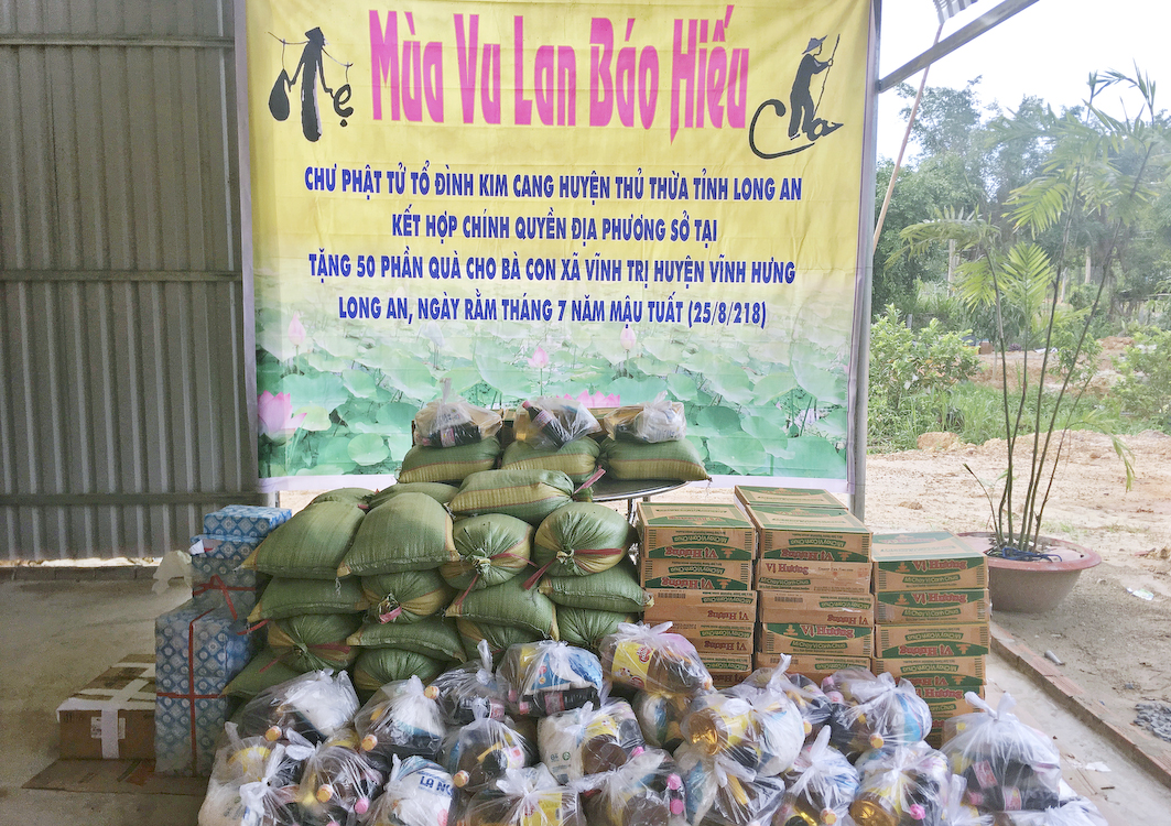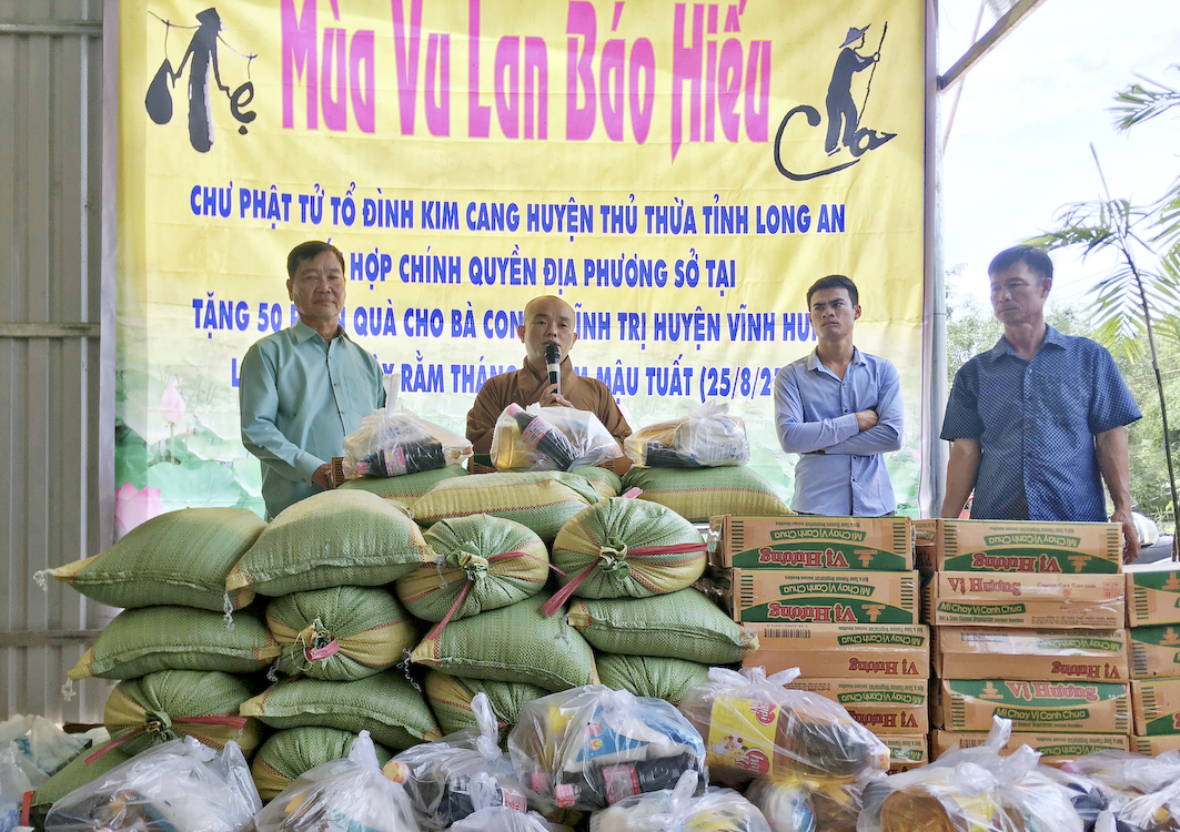 Nhân mùa Vu Lan Báo Hiếu ngày Rằm Trung Ngươn (25/8/2018), Ban Từ Thiện Tổ đình Kim Cang, ấp Bình Cang 1, xã Bình Thạnh, huyện Thủ Thừa, tỉnh Long An do Đại đức Thích An Phúc phối hợp cùng chính quyền xã Vĩnh Trị, huyện Vĩnh Hưng, tỉnh Long An phát 50 phần quà cho bà con có hoàn cảnh khó khăn và 30 phần quà cho các em học sinh.