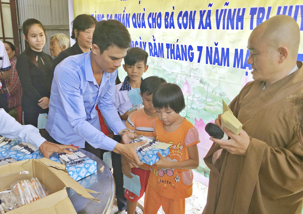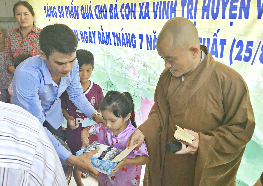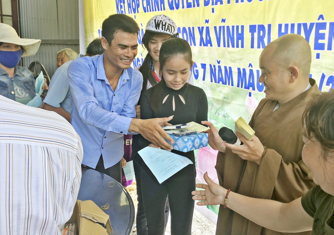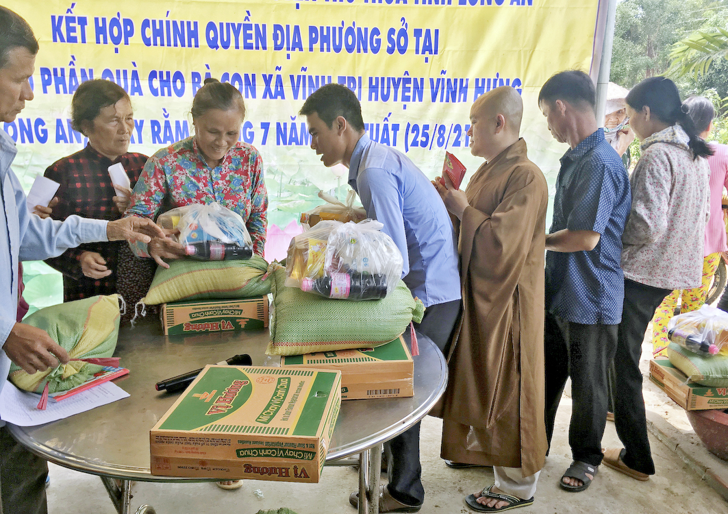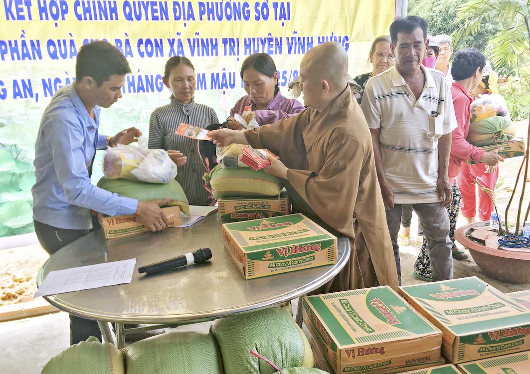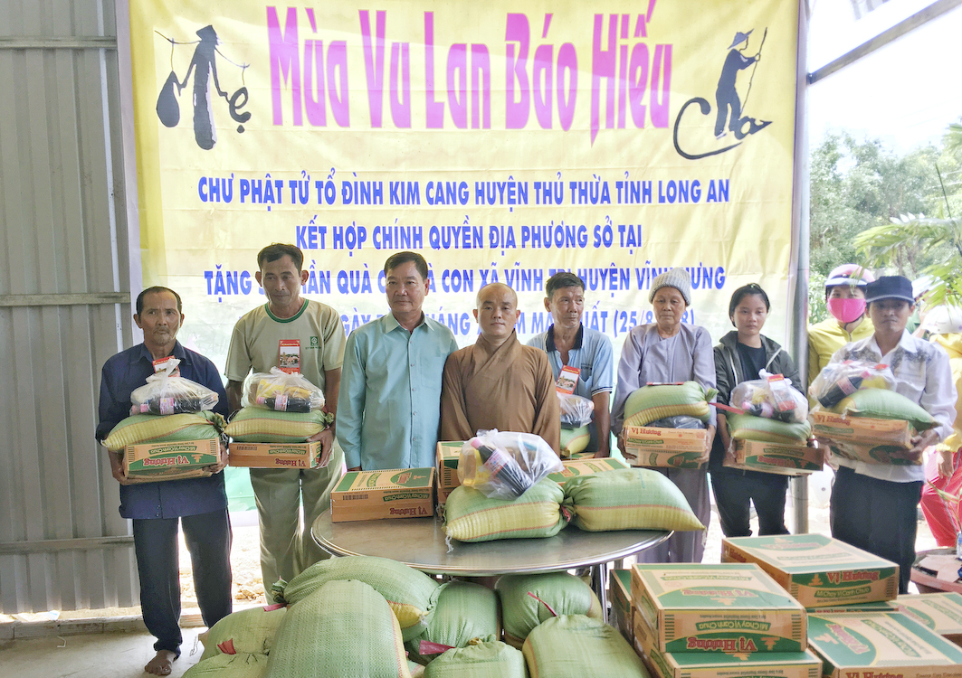 Vĩnh Hưng: Ban Từ Thiện Tổ đình Kim Cang phát quà Vu Lan tại xã Vĩnh Trị