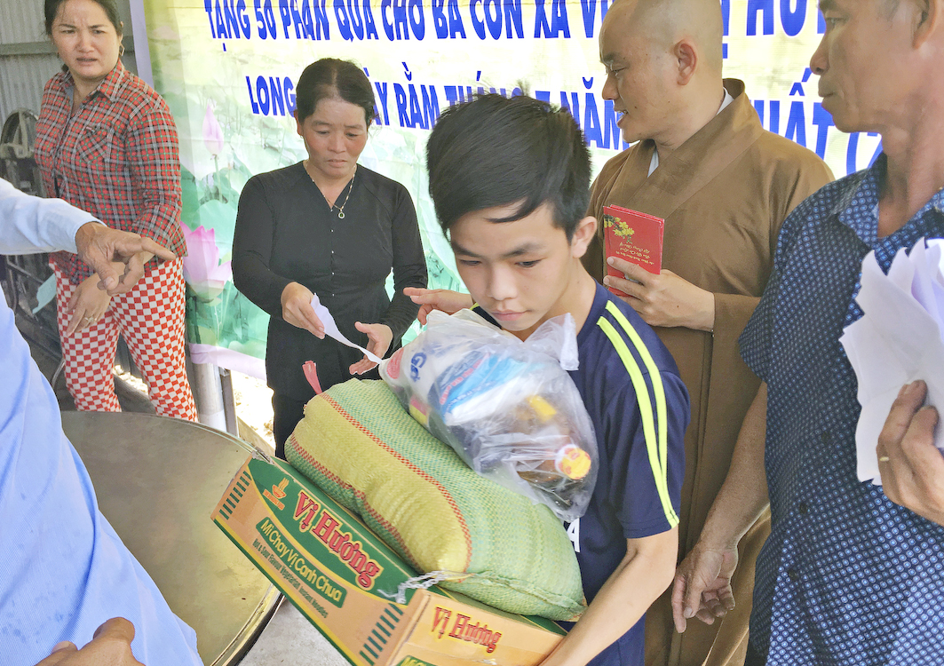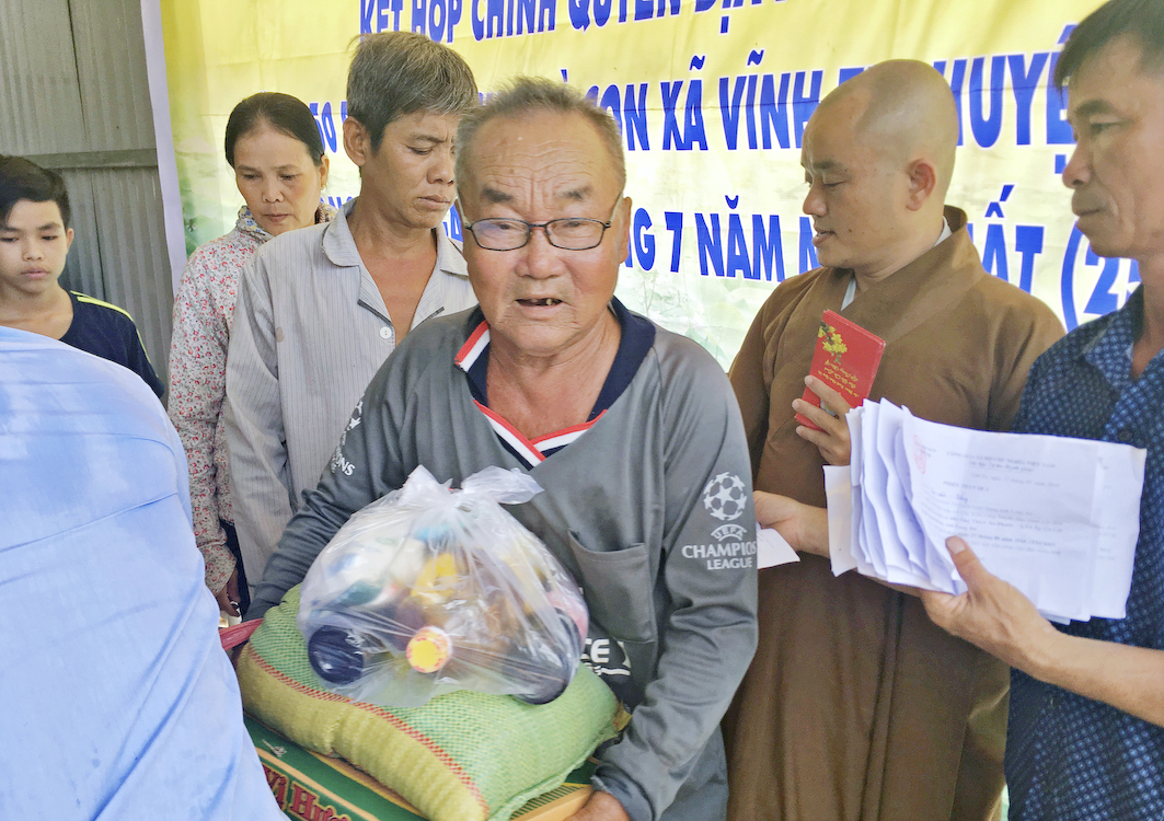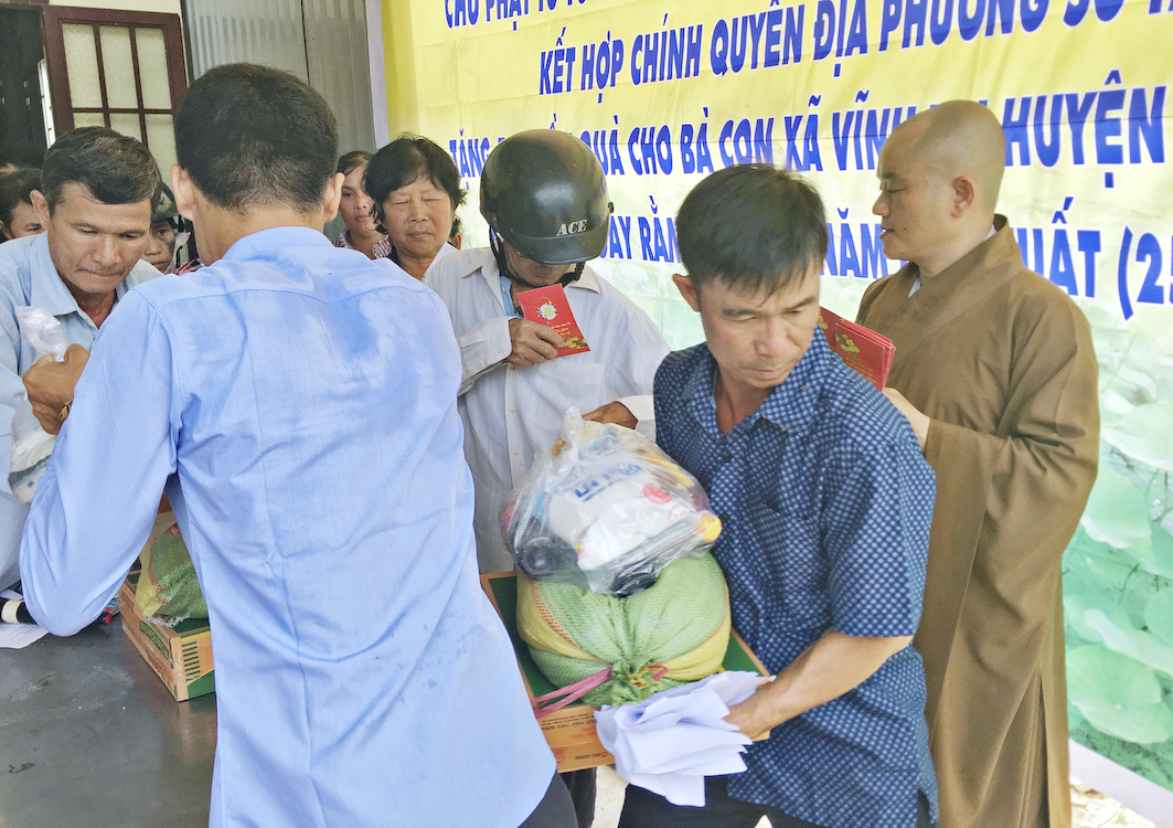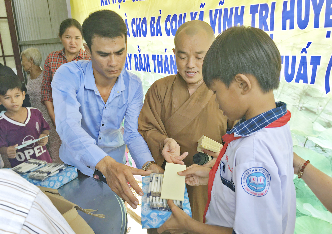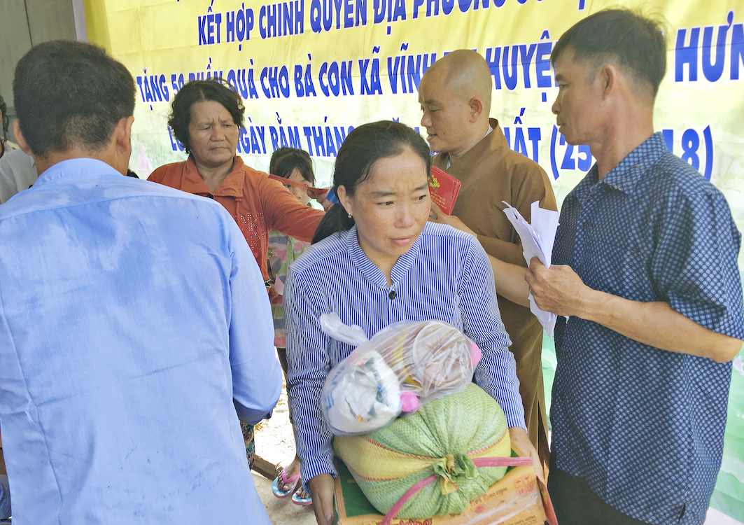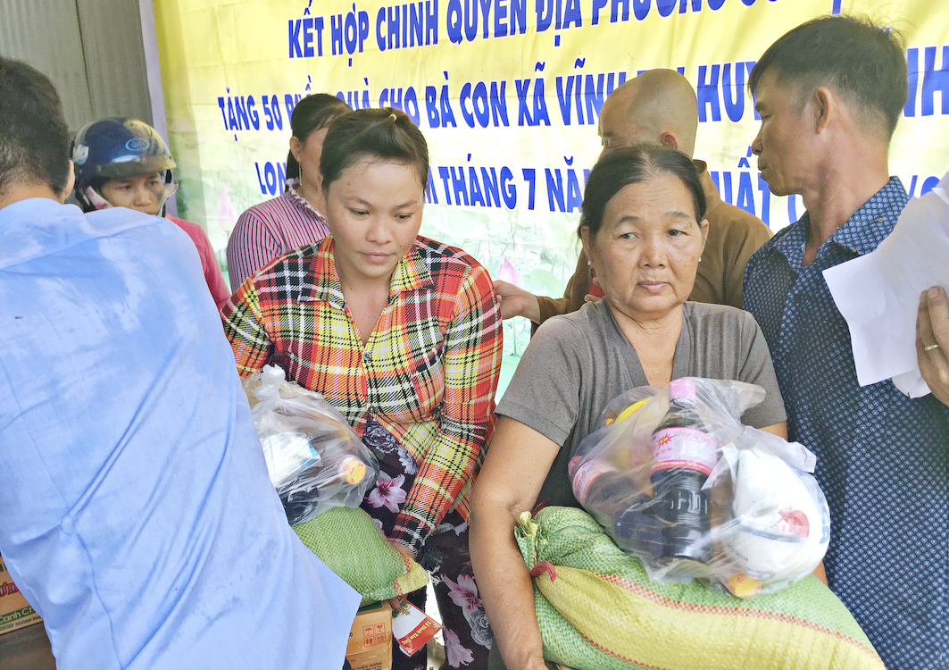 Vĩnh Hưng: Ban Từ Thiện Tổ đình Kim Cang phát quà Vu Lan tại xã Vĩnh Trị