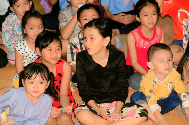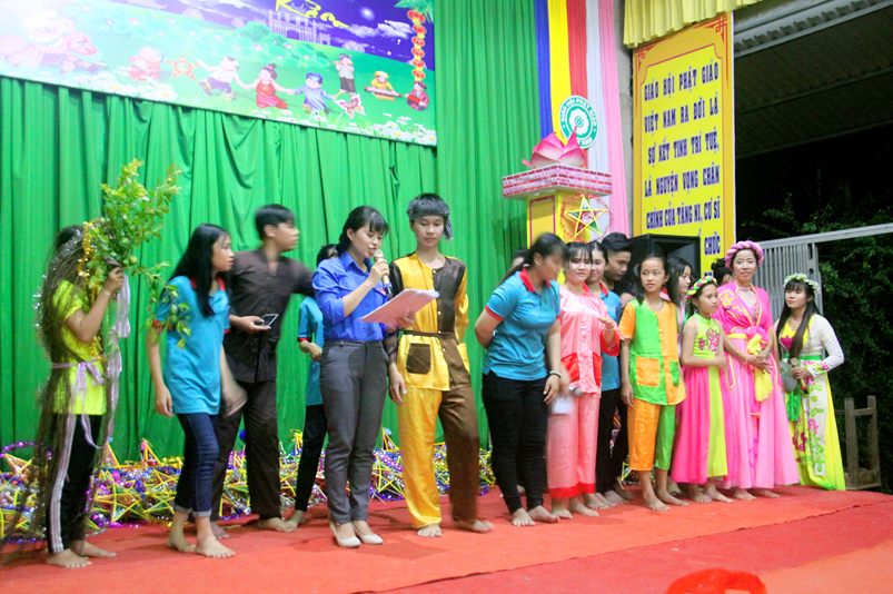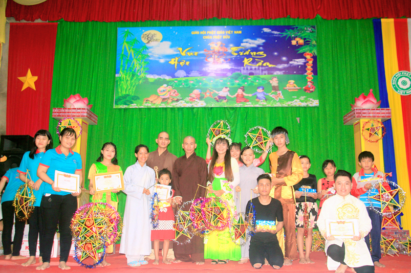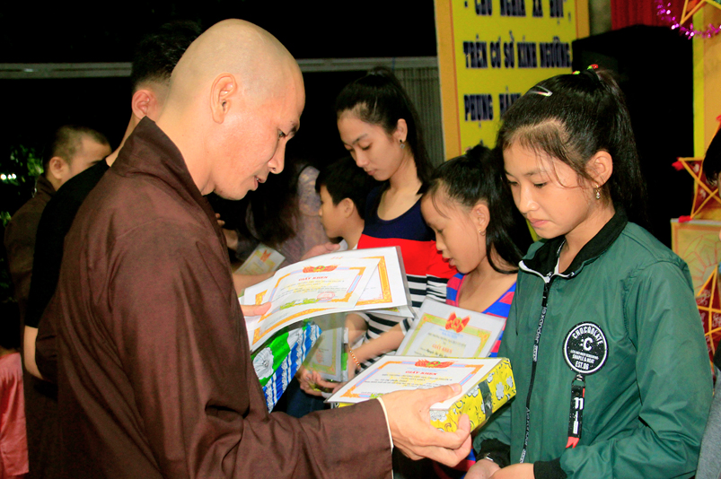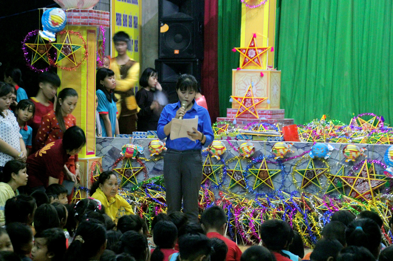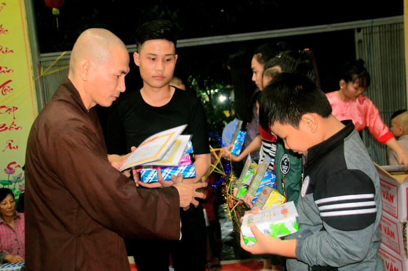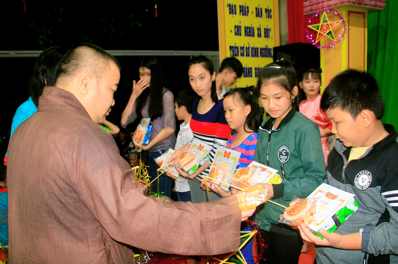 Sau khi văn nghệ, 800 phần phát quà trung thu gồm: lồng đèn, tập viết, bánh trung thu được trao tận tay đến các em.