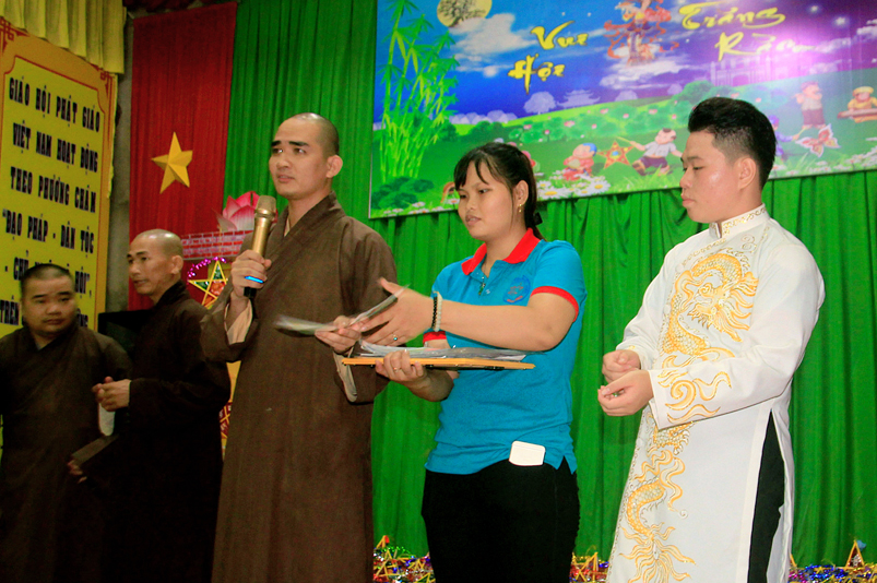 Tại đêm hội Phật tử Cẩm Ly tuyên bố lý do ”Vui Hội Trăng Rằm” năm 2018. Tiếp theo đó, Đại Đức Thích Giác Huệ phát biểu khai mạc chương trình văn nghệ chào đón các cháu thiếu nhi và có những lời chúc tốt đẹp đến những các cháu. Đại Đức Thích Giác Huệ niềm nở chào đón các em, chúc các em luôn là người con ngoan trò giỏi, sống có lợi ích cho bản thân, cho gia đình và cho xã hội”.