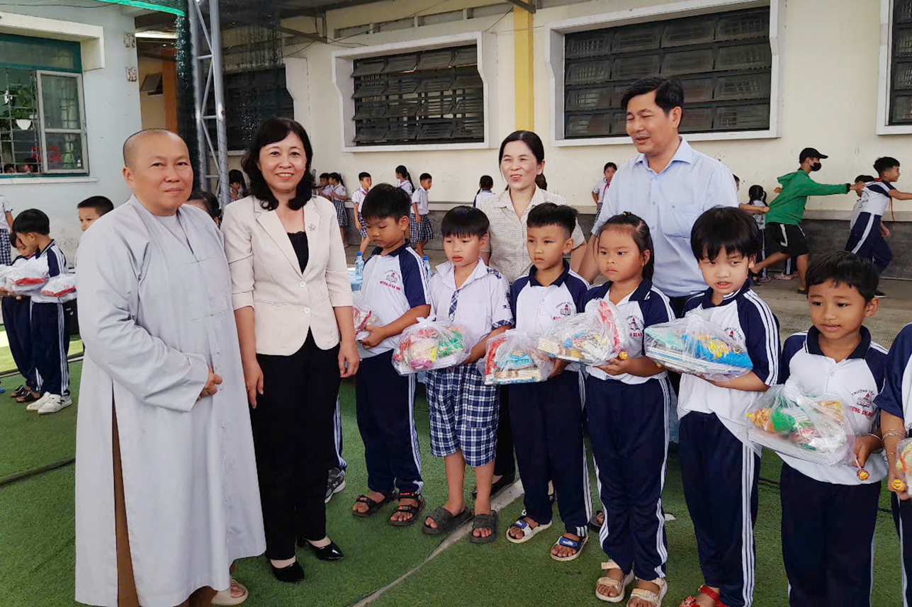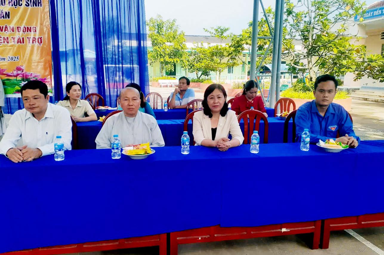 Về phía Phật giáo tại 2 điểm Trường có sự tham dự của Ni sư Thích nữ Diệu Huệ- Ủy viên thường trực Ban Trị Sự GHPGVN tỉnh Tây Ninh, Phó Ban Hoằng Pháp tỉnh, thư ký Phân Ban Ni Giới tỉnh Tây Ninh, trụ trì Chùa An Châu, đại diện cho Phật tử Diệu Thiện và gia đình Cô Hằng Bùi tài trợ cho Phật sự nầy.