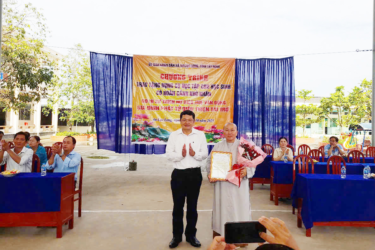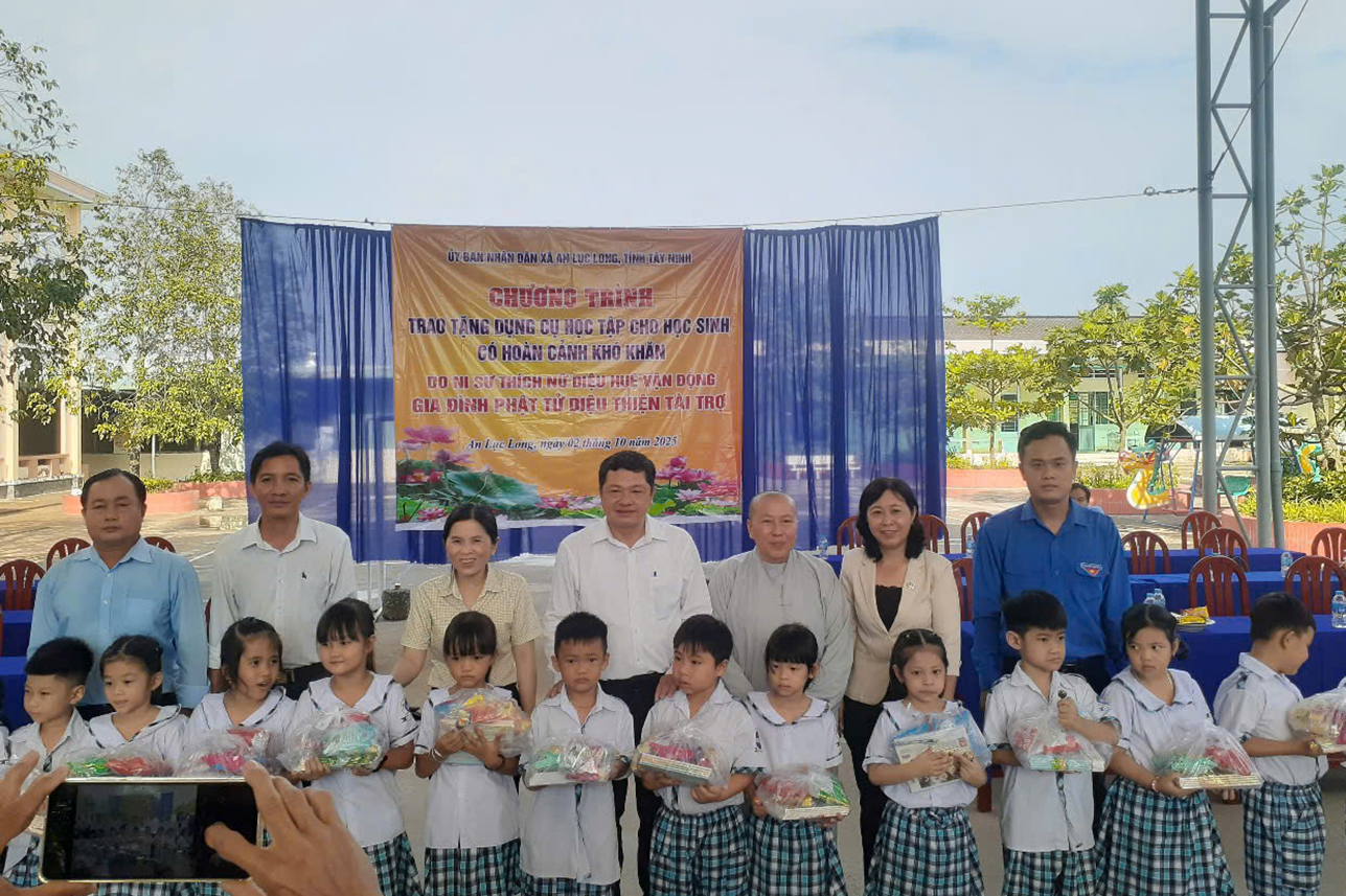 Trong không khí những tháng ngày đầu năm học và tiết trăng thu tháng 8, nhằm khích lệ các bạn học sinh có hoàn cảnh khó khăn học tập tốt, sáng ngày 02/10/2025 (nhằm ngày 11/8 Ất tỵ), tại 2 điểm trường Tiểu Học Long Trì, ấp Long Thành, xã An Lục Long và Trường Tiểu Học Dương Xuân Hội thuộc ấp Mỹ Xuân, xã An Lục Long diễn ra Chương trình trao tặng dụng cụ học tập cho 400 học sinh có hoàn cảnh khó khăn. Đây là 1 chương trình ý nghĩa với tâm nguyện mang lại niềm vui, động lực học tập, tiếp bước em đến trường.