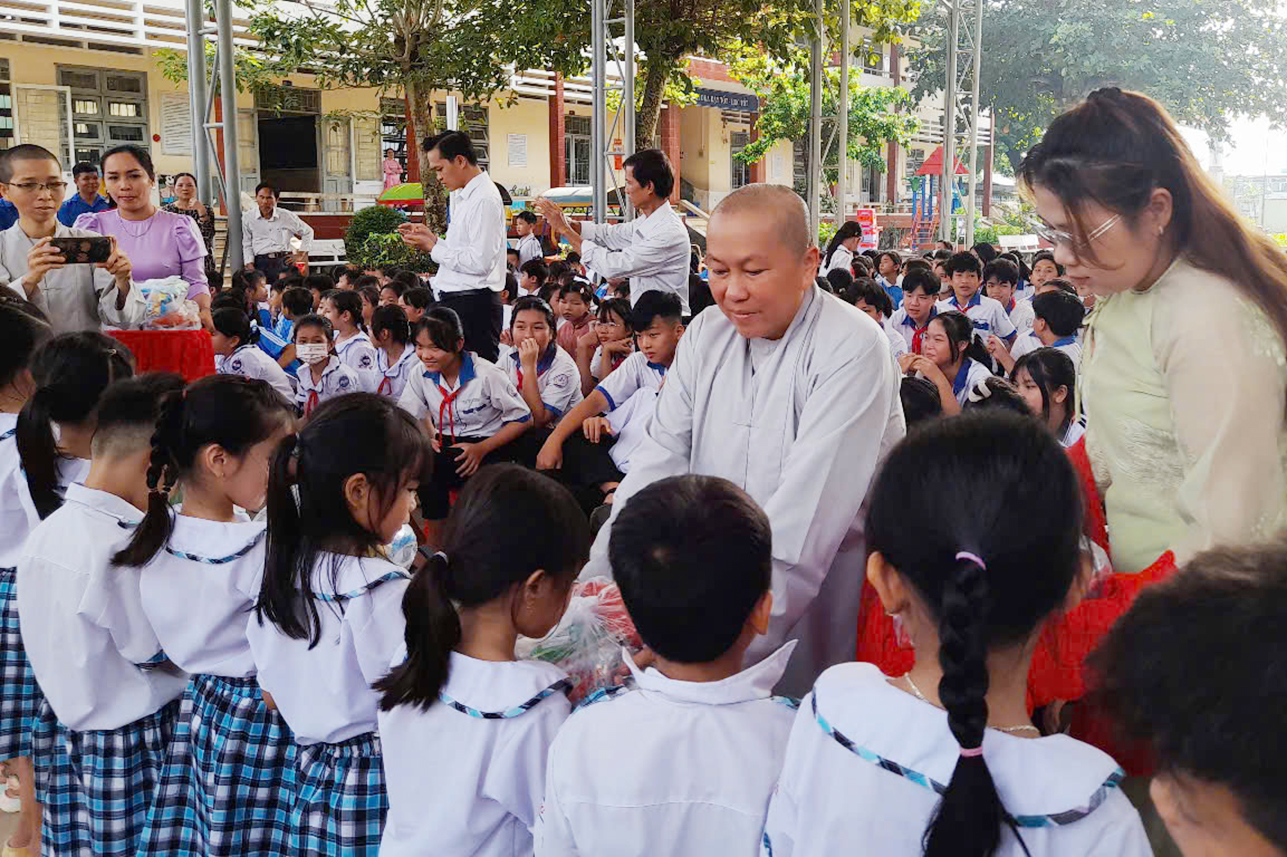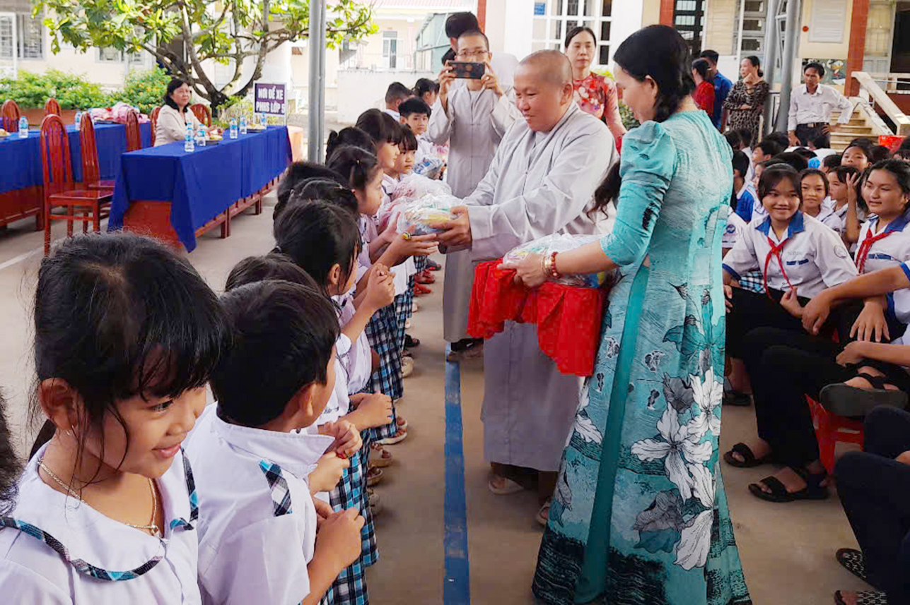 Được biết Chương trình trao tặng dụng cụ học tập cho 400 em học sinh có hoàn cảnh khó khăn lần nầy là tâm nguyện của người đệ tử Phật vì sứ mạng phụng sự Tam Bảo, phụng sự chúng sanh của hàng đệ tử xuất gia và tại gia, nhất là trong những ngày đầu năm học mới, ước mong các em học sinh sẽ trở thành những người con ngoan, trò giỏi, hữu dụng cho gia đình và xã hội mai sau như lời phát biểu của Ni sư Diệu Huệ khi gửi gắm đến các bạn trẻ, thế hệ tương lai của đất nước, qua đó Ni sư đã cảm ơn lãnh đạo địa phương đã cho phép và cảm ơn Ban Giám Hiệu đã tạo duyên cho Phật tử Diệu Thiện và Cô Hằng Bùi được lan tỏa tình thương trao tặng 400 phần quà cho các em học sinh.