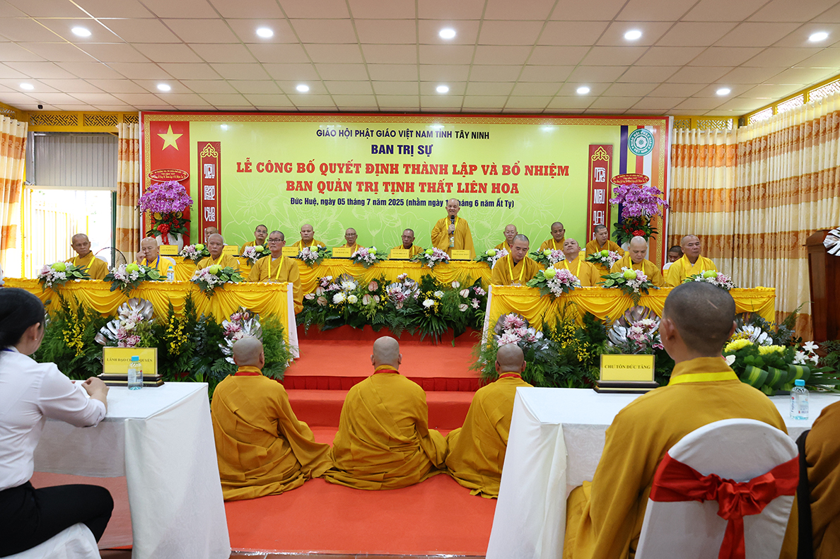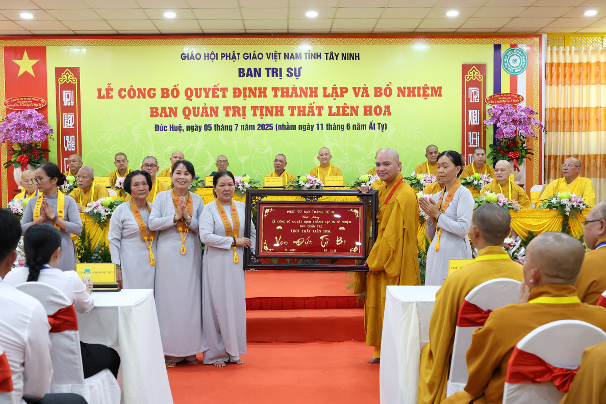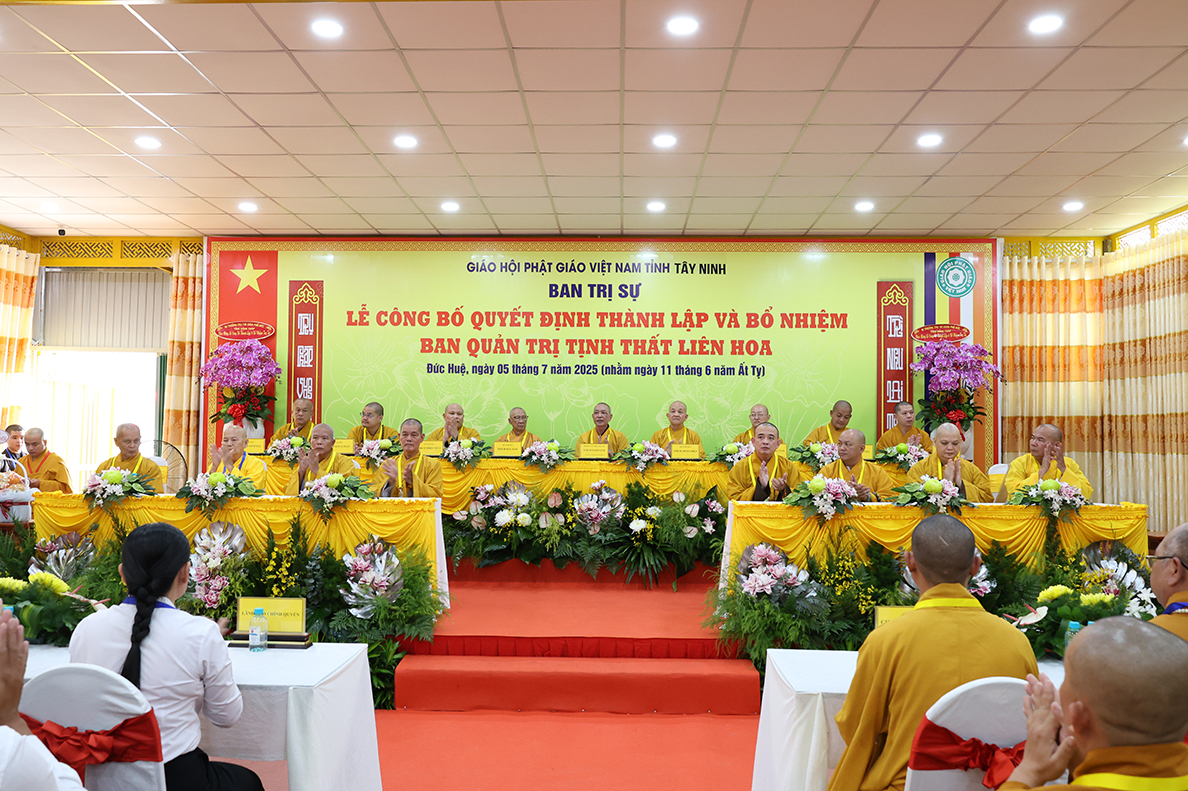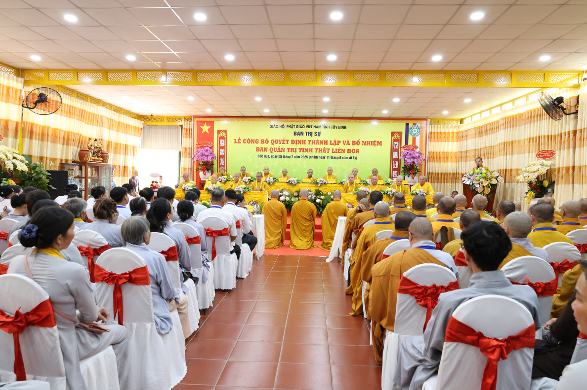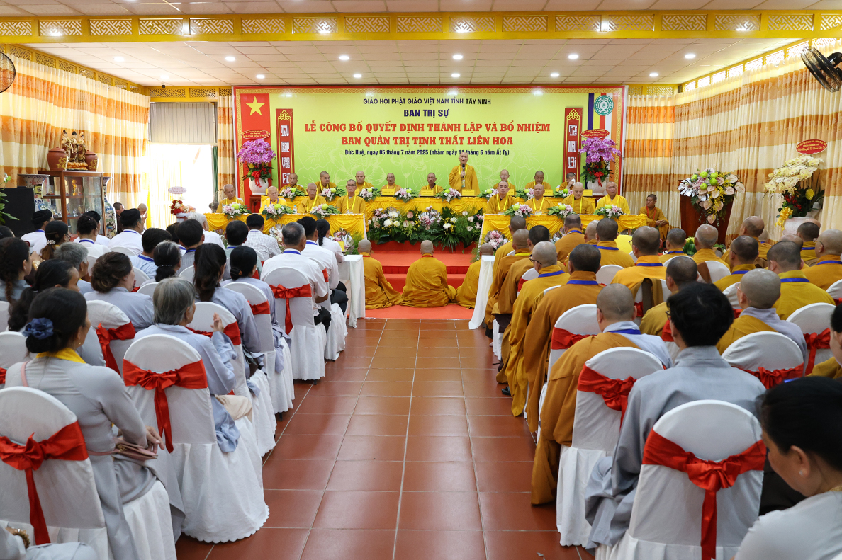 Sáng ngày 05 tháng 7 năm 2025 (nhằm ngày 11 tháng 6 năm Ất Tỵ), được sự cho phép của lãnh đạo chính quyền các cấp, BTS GHPGVN tỉnh Tây Ninh long trọng tổ chức Lễ Công Bố Quyết Định Thành Lập Và Bổ Nhiệm Ban Quản Trị Tịnh thất Liên Hoa tại xã Đức Huệ, tỉnh Tây Ninh.