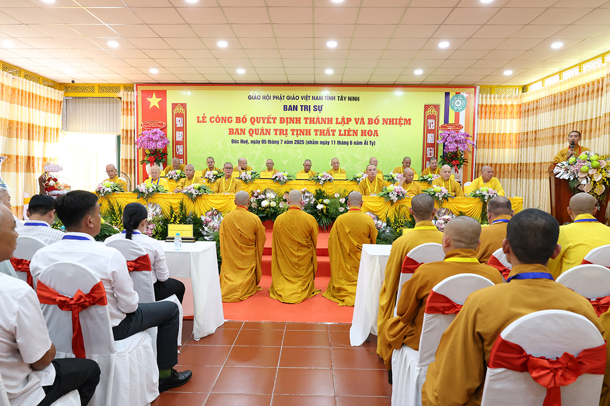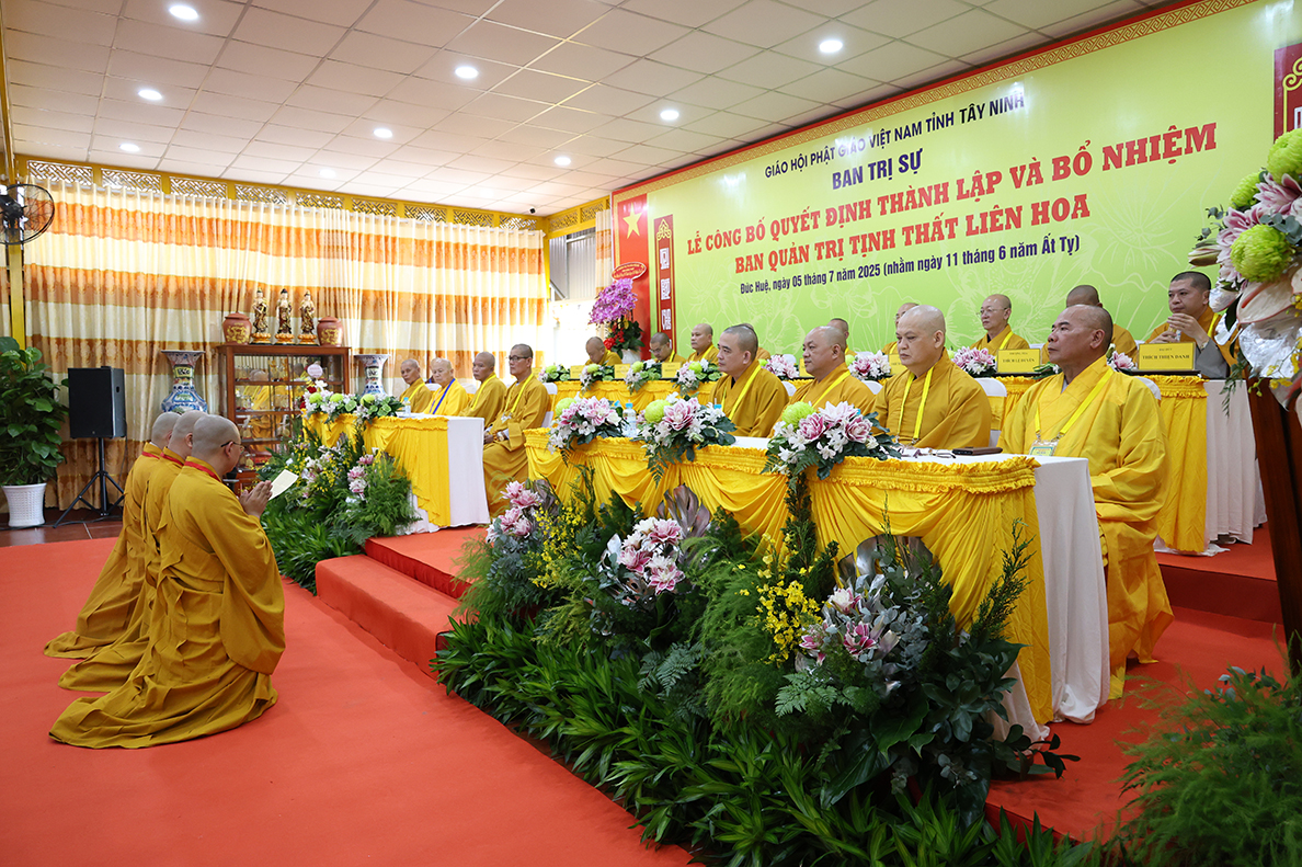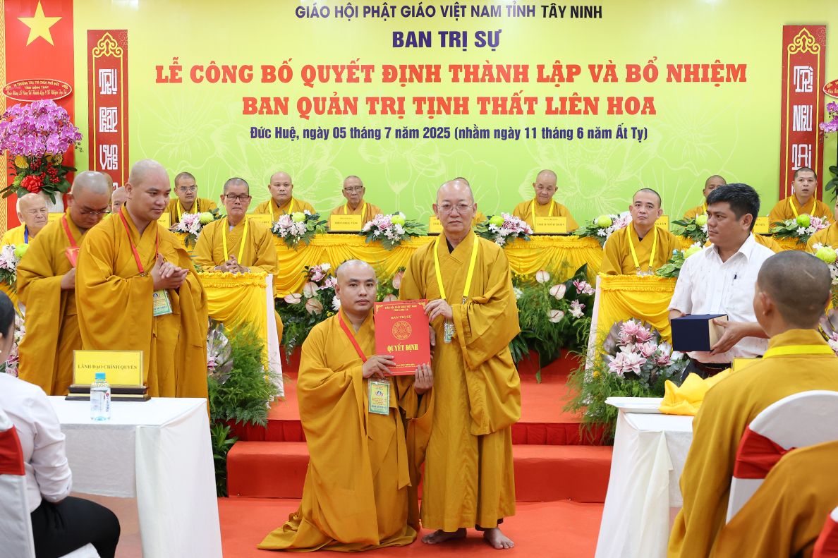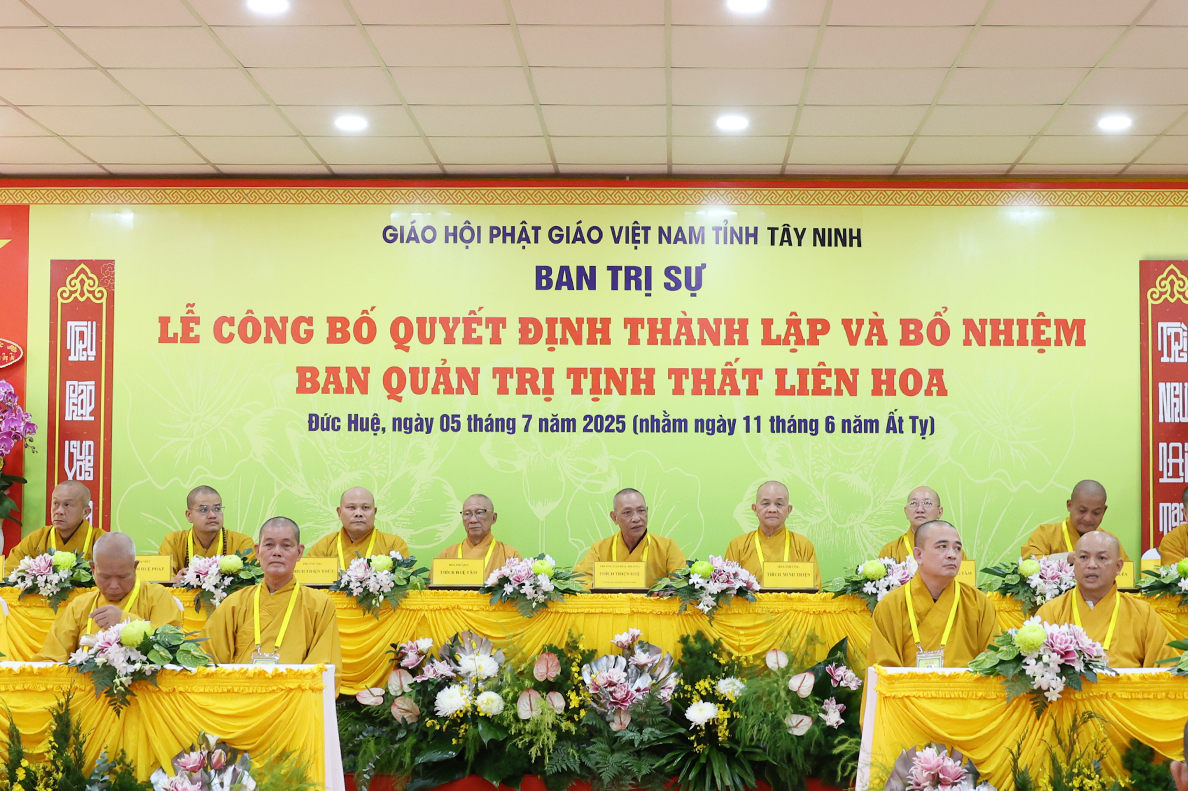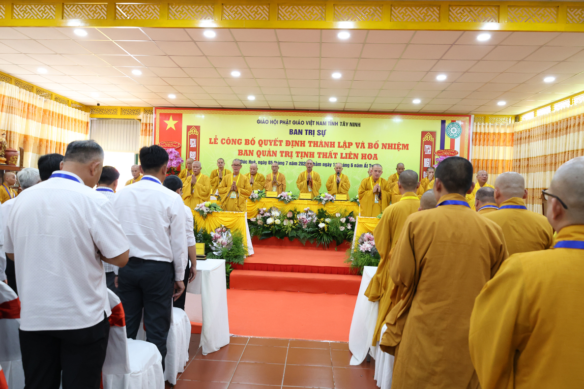 Sáng ngày 05 tháng 7 năm 2025 (nhằm ngày 11 tháng 6 năm Ất Tỵ), được sự cho phép của lãnh đạo chính quyền các cấp, BTS GHPGVN tỉnh Tây Ninh long trọng tổ chức Lễ Công Bố Quyết Định Thành Lập Và Bổ Nhiệm Ban Quản Trị Tịnh thất Liên Hoa tại xã Đức Huệ, tỉnh Tây Ninh.