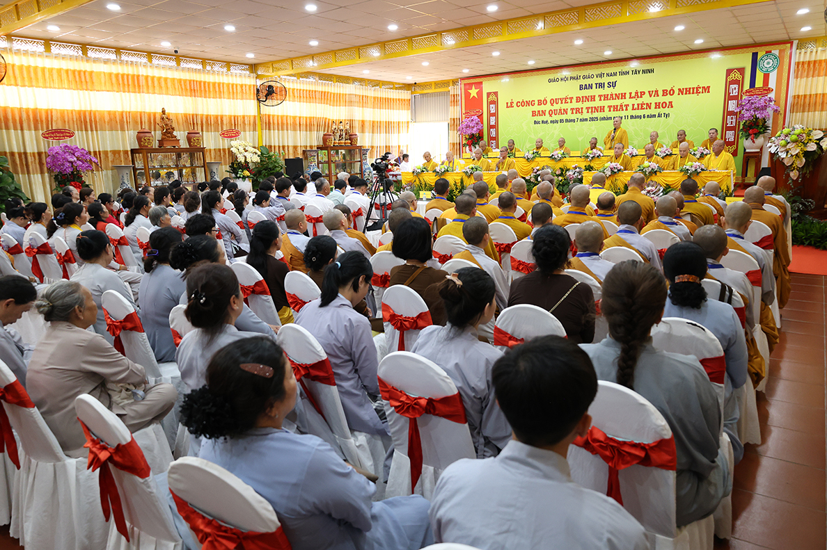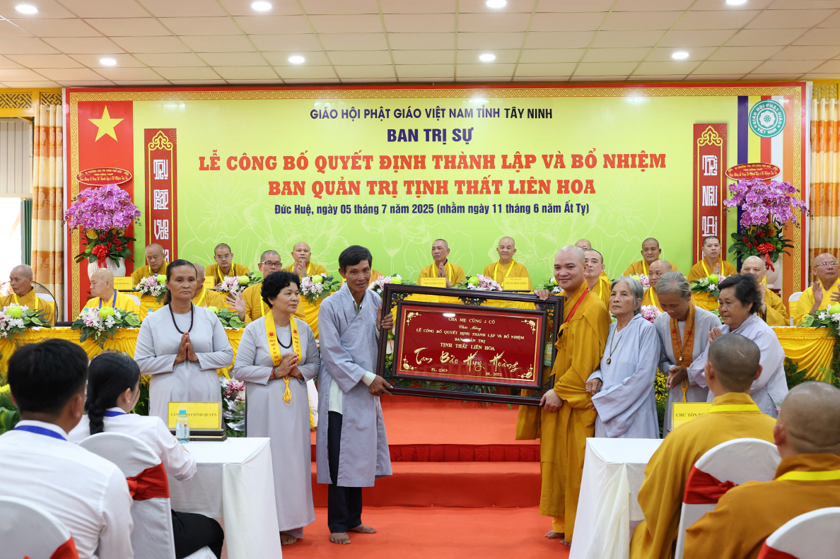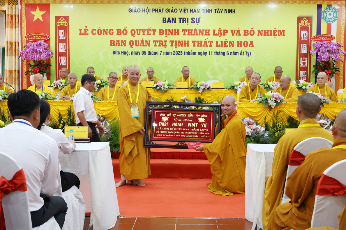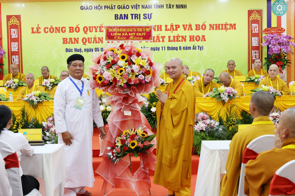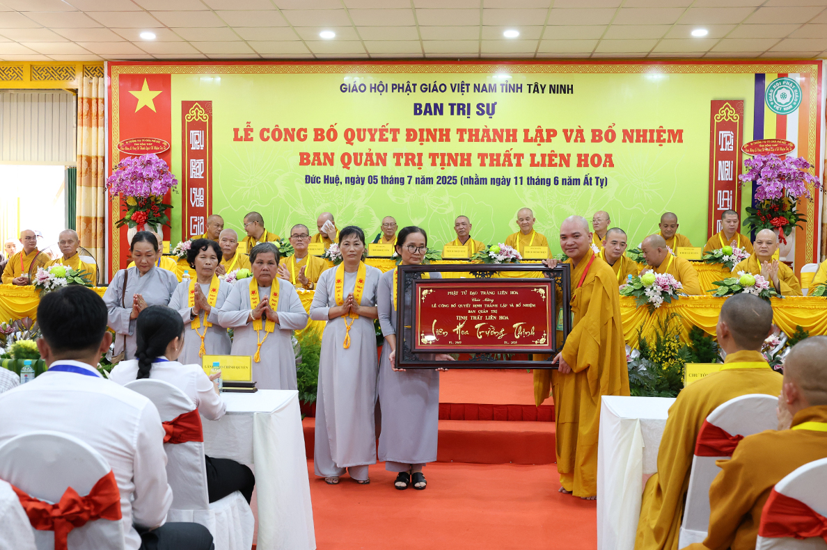 Sáng ngày 05 tháng 7 năm 2025 (nhằm ngày 11 tháng 6 năm Ất Tỵ), được sự cho phép của lãnh đạo chính quyền các cấp, BTS GHPGVN tỉnh Tây Ninh long trọng tổ chức Lễ Công Bố Quyết Định Thành Lập Và Bổ Nhiệm Ban Quản Trị Tịnh thất Liên Hoa tại xã Đức Huệ, tỉnh Tây Ninh.